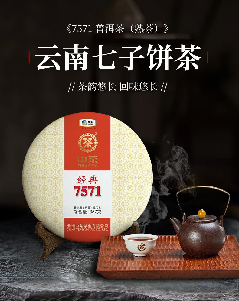 中粮-中茶唛号茶经典普洱茶熟茶 2021年经典7571唛号茶357克中茶唛号茶经典/干仓直发
