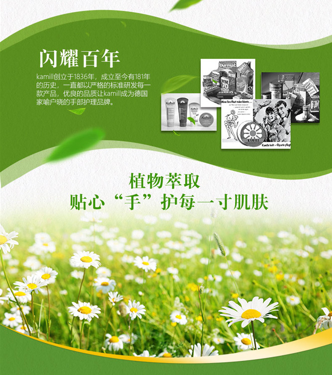 诞生于1836年的kamill康蜜尔,是德国家喻户晓的百年老牌! 说起洋甘菊产品,大家会先想起有着白色小雏菊图案的贺*清。但其实,在德国市占率更高的并不是贺*清,而是Kamill~
