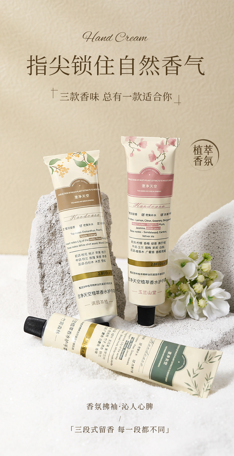 【秋冬必备;福利3件套!!!】澄净天空植萃香水护手霜,温柔如初春的拥抱,在指尖轻轻绽放。烟酰胺护手霜,唤醒肌肤沉睡的湿润力量。清爽保湿补水男女适用,让你的双手如天使般柔嫩,一触即发!