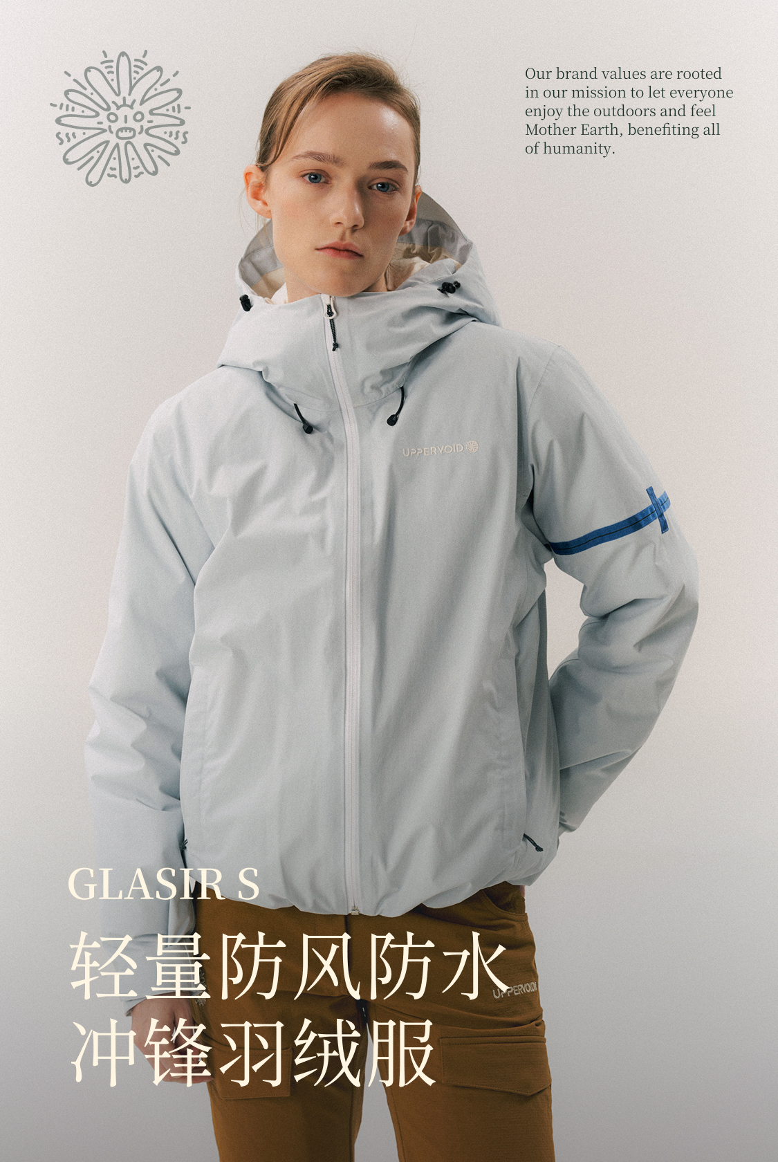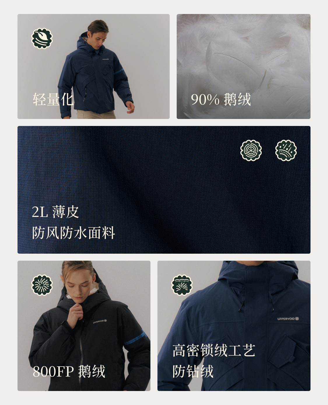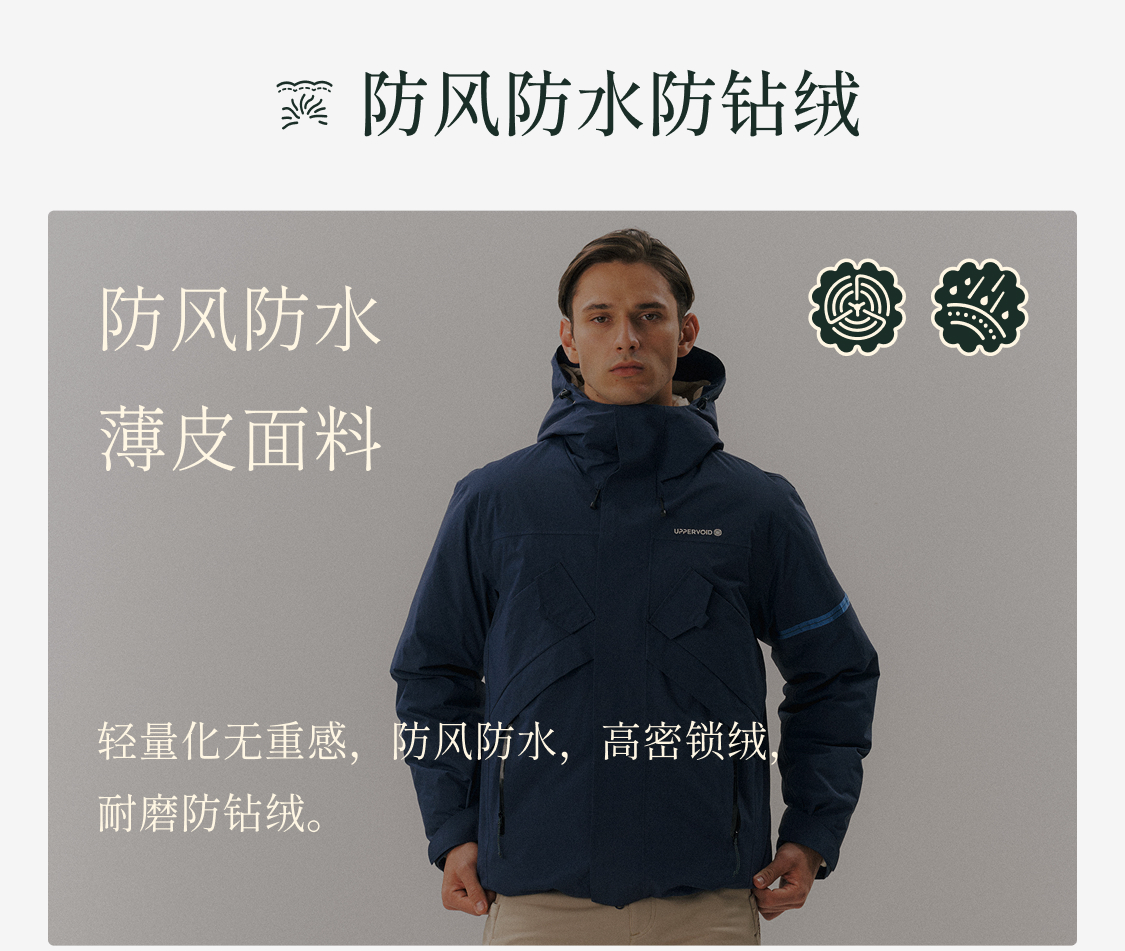 冲锋羽绒服防水防风保暖鹅绒面包服外套冬新款UPPERVOID二普纬度