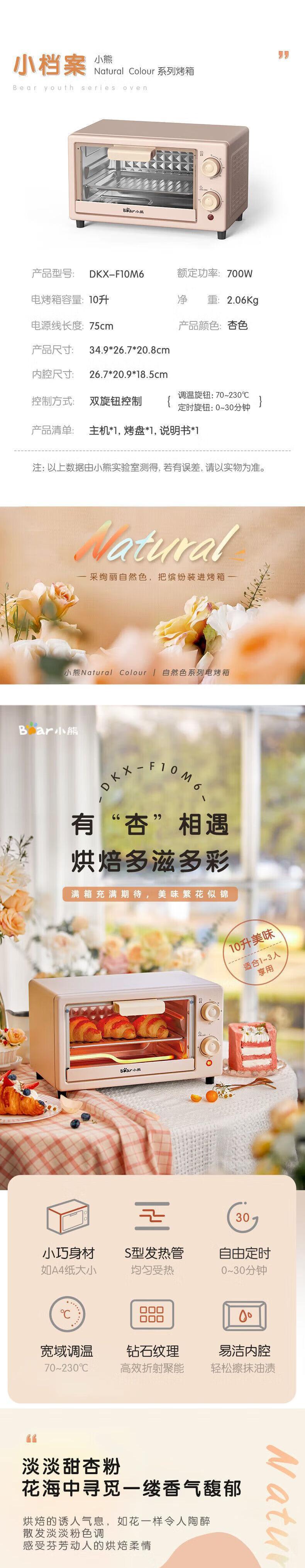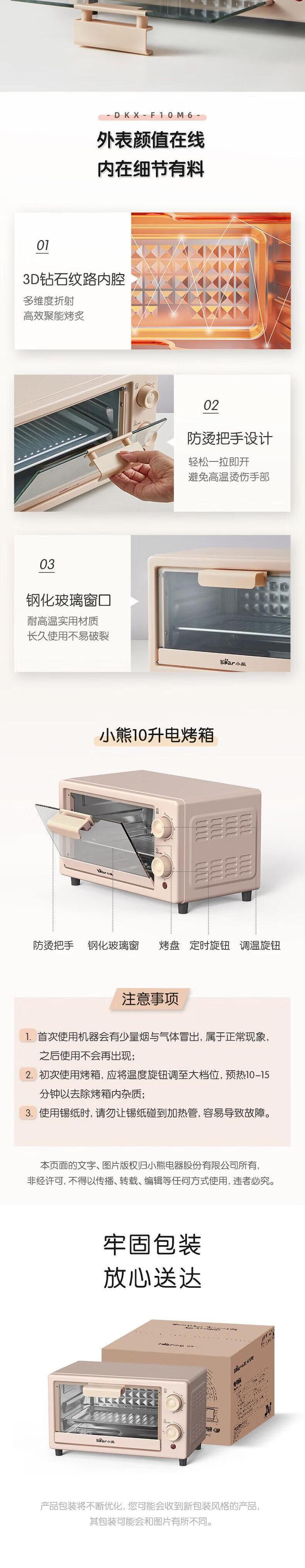 【自营】小熊(Bear)迷你电烤箱10L DKX-F10M6双层烤位石英管速热小身材烘焙早餐易用