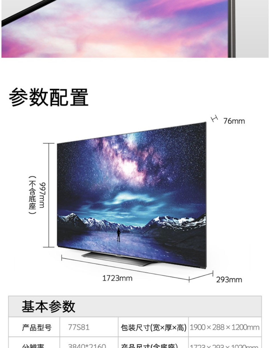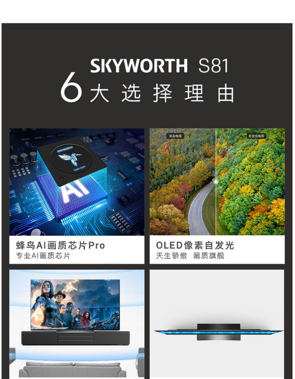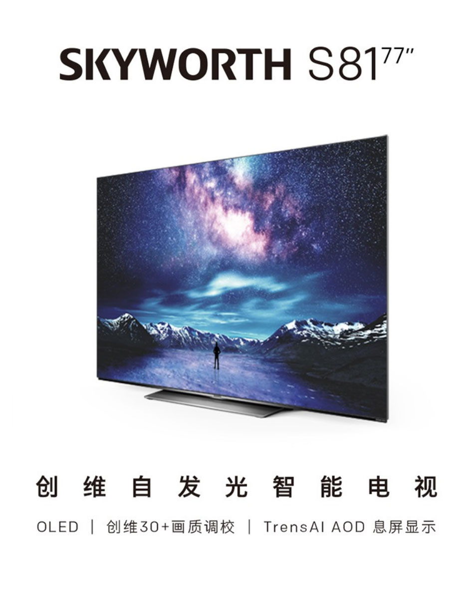 创维(Skyworth)77英寸77S81 4K超清 免遥控声控 护眼超薄OLED智慧全面屏电视机 旗舰OLED智能电视