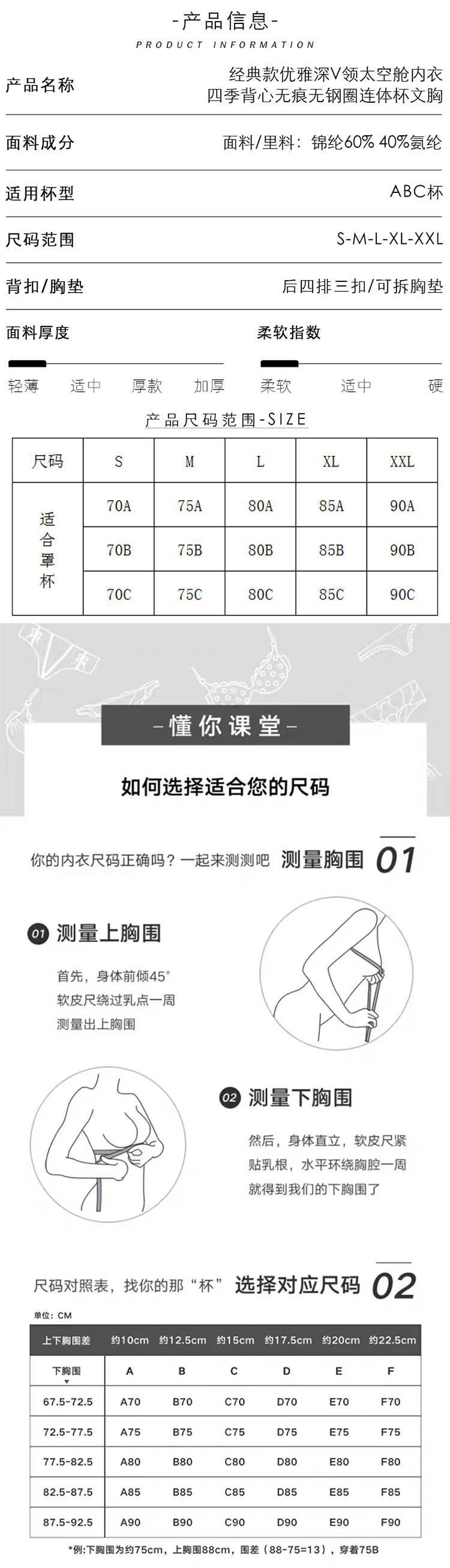 【109号】女士经典性感深V太空舱无痕无钢圈内衣文胸
