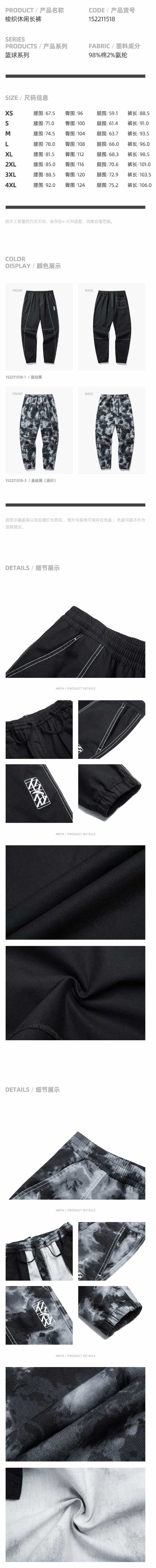 安踏要疯系列2022春男子运动裤Z势狂响印花裤子152211518-1