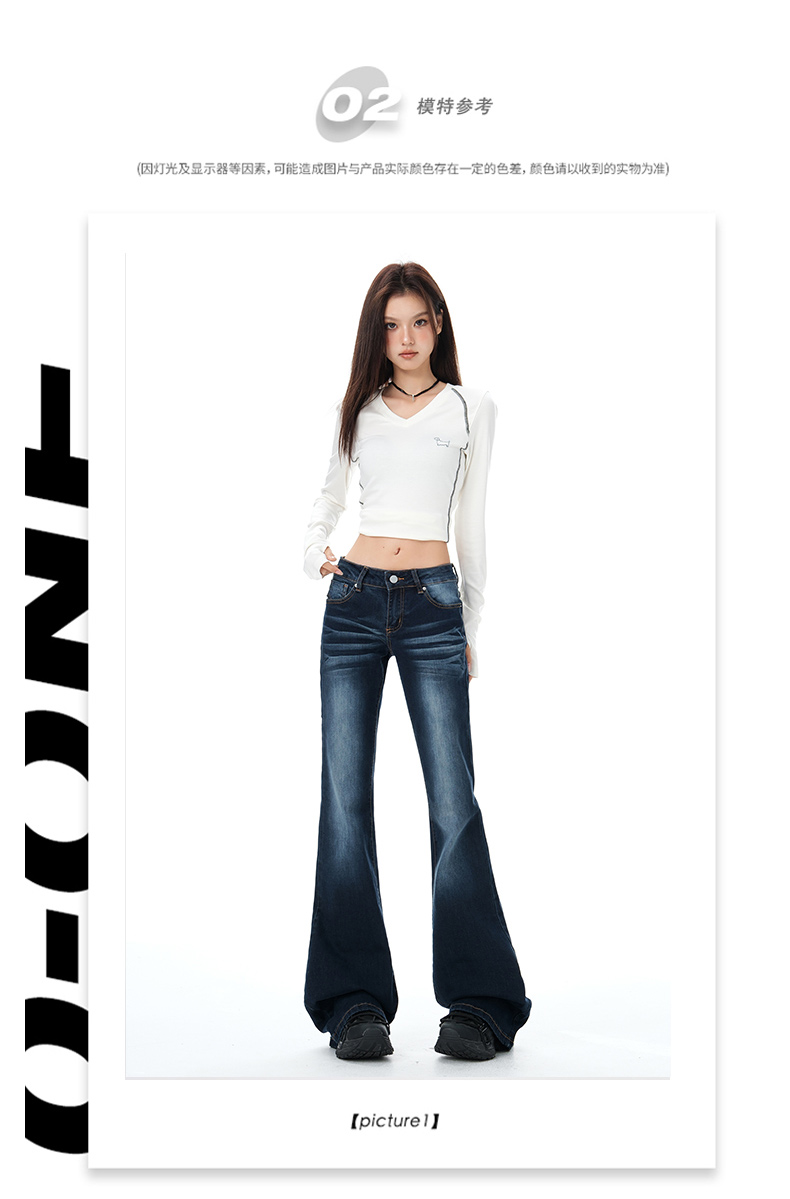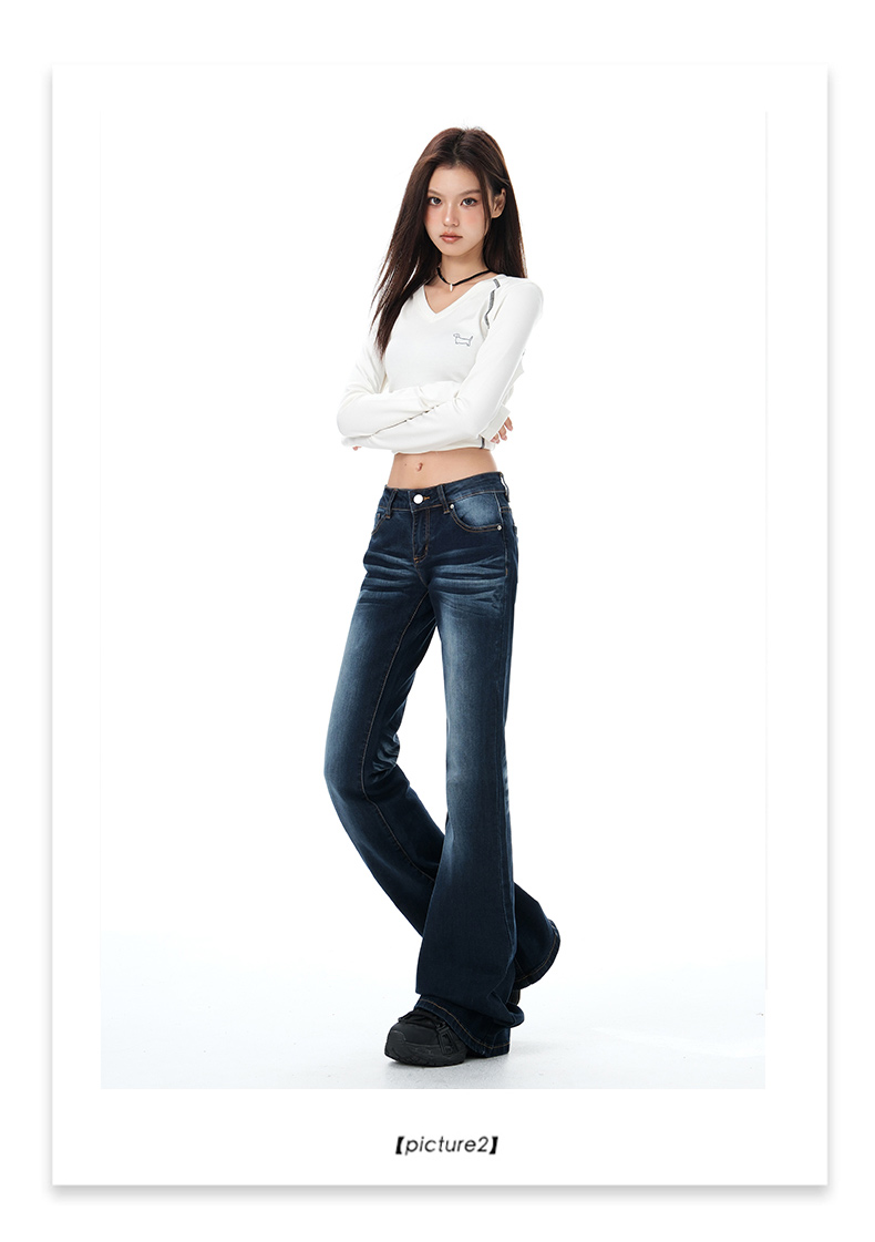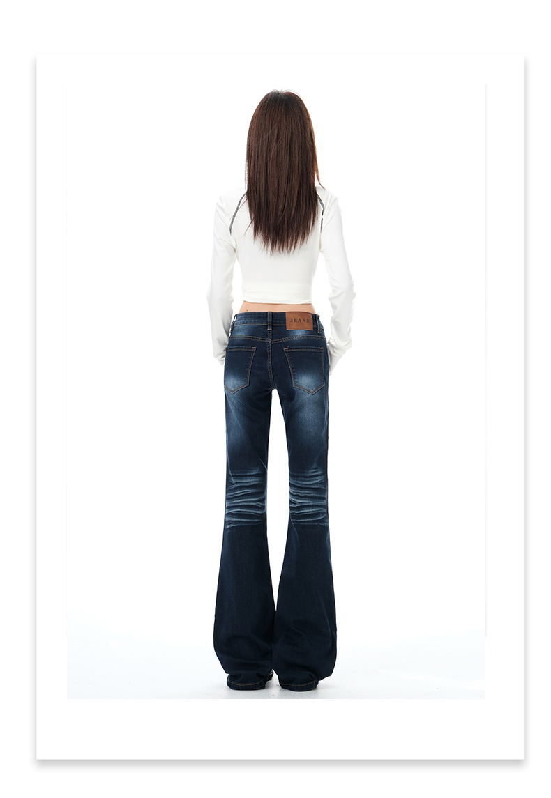 【加绒加厚】罗蒙秋冬款加绒女士牛仔裤微喇裤怀旧美式风显瘦百搭长裤
