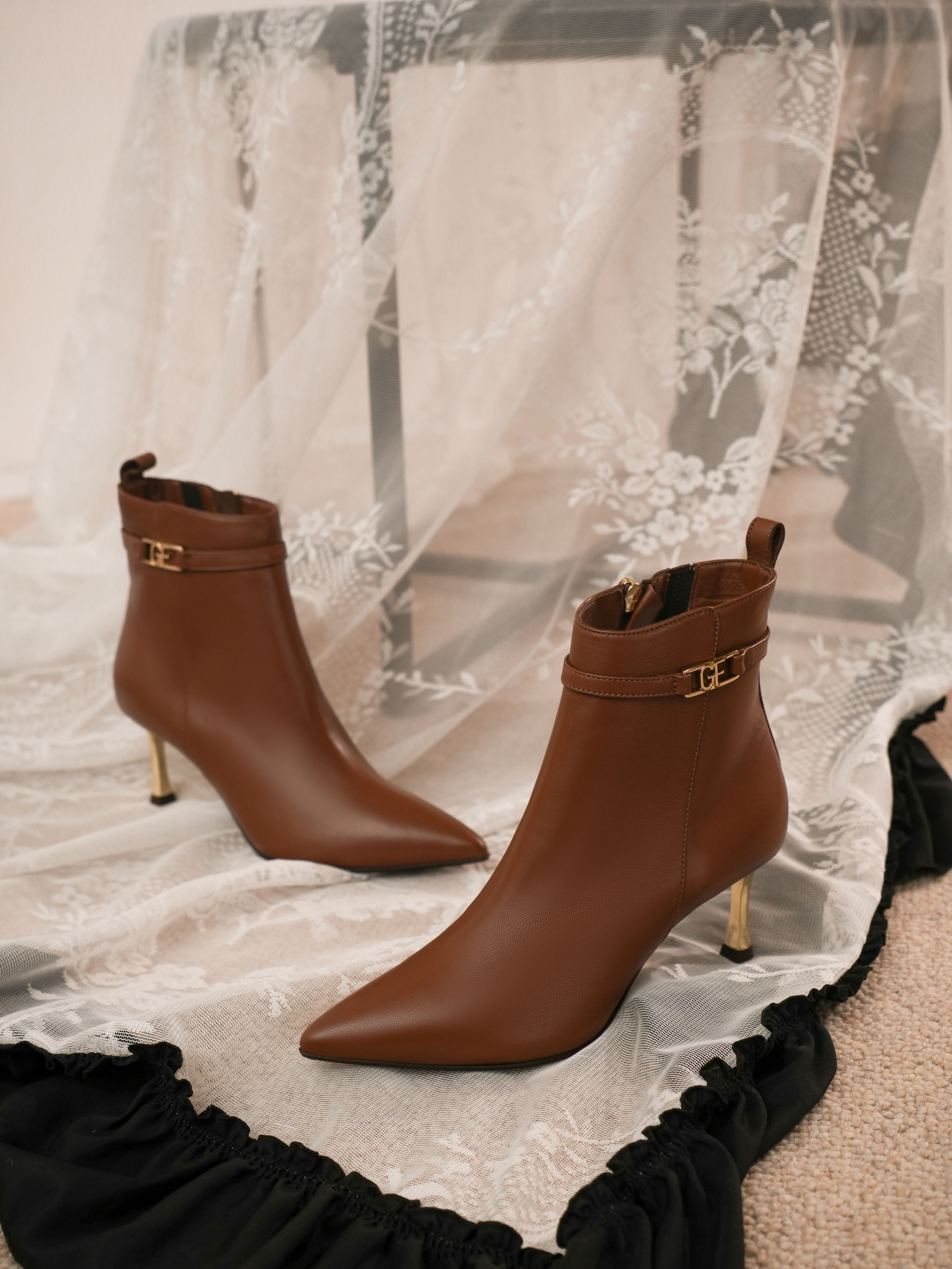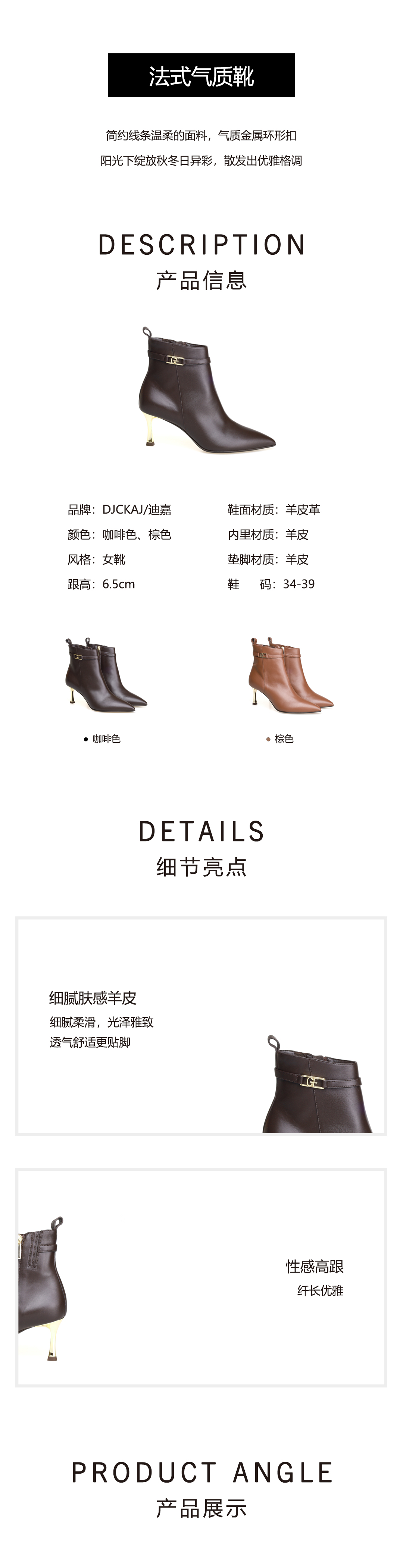 豪麟名鞋进口迪嘉女鞋短靴羊皮革W25309棕色