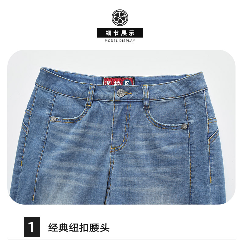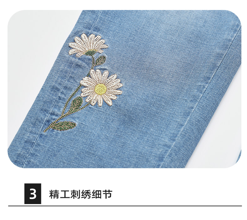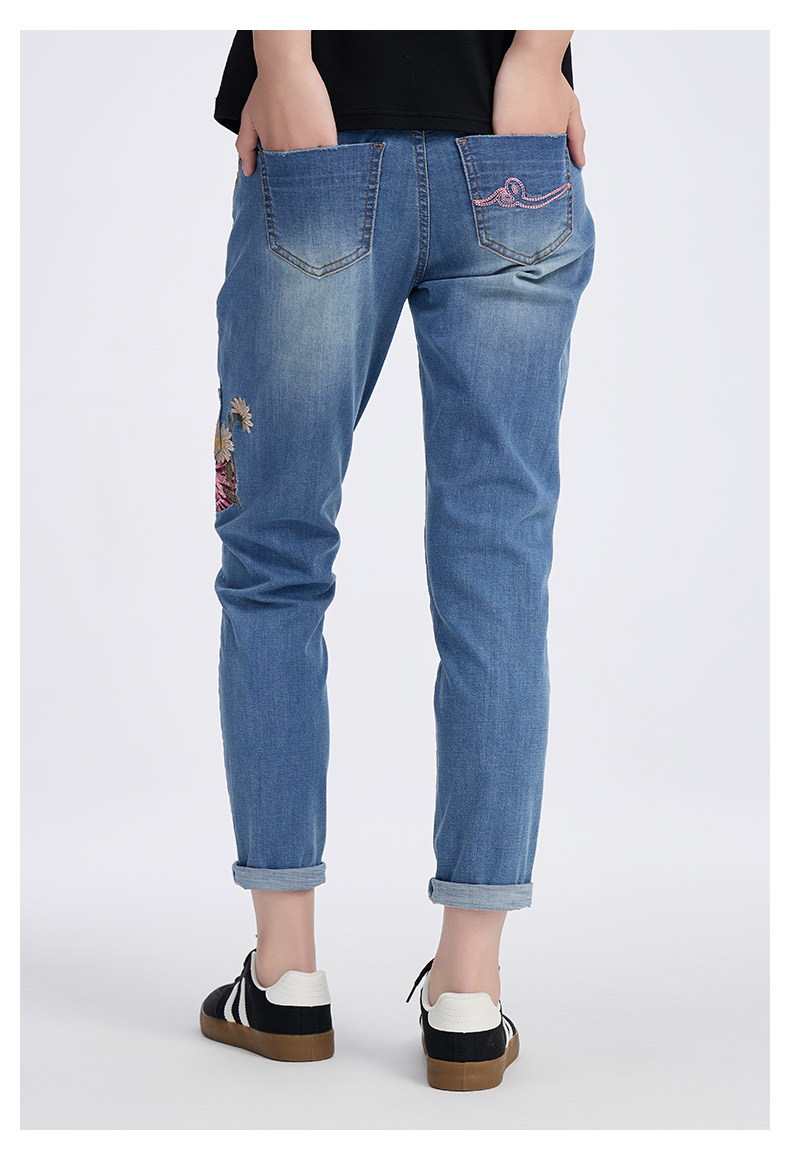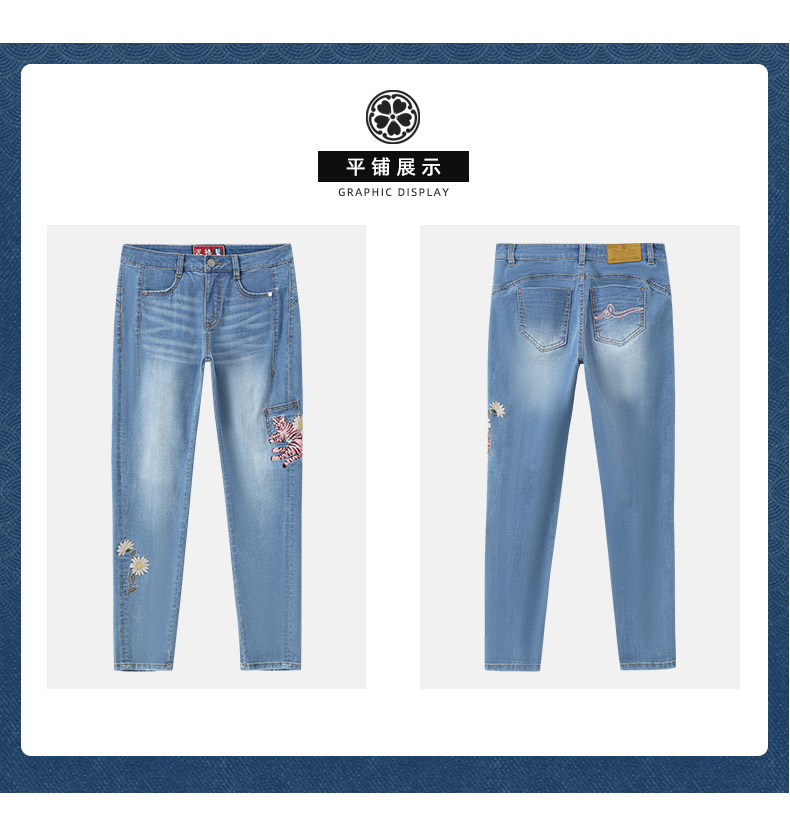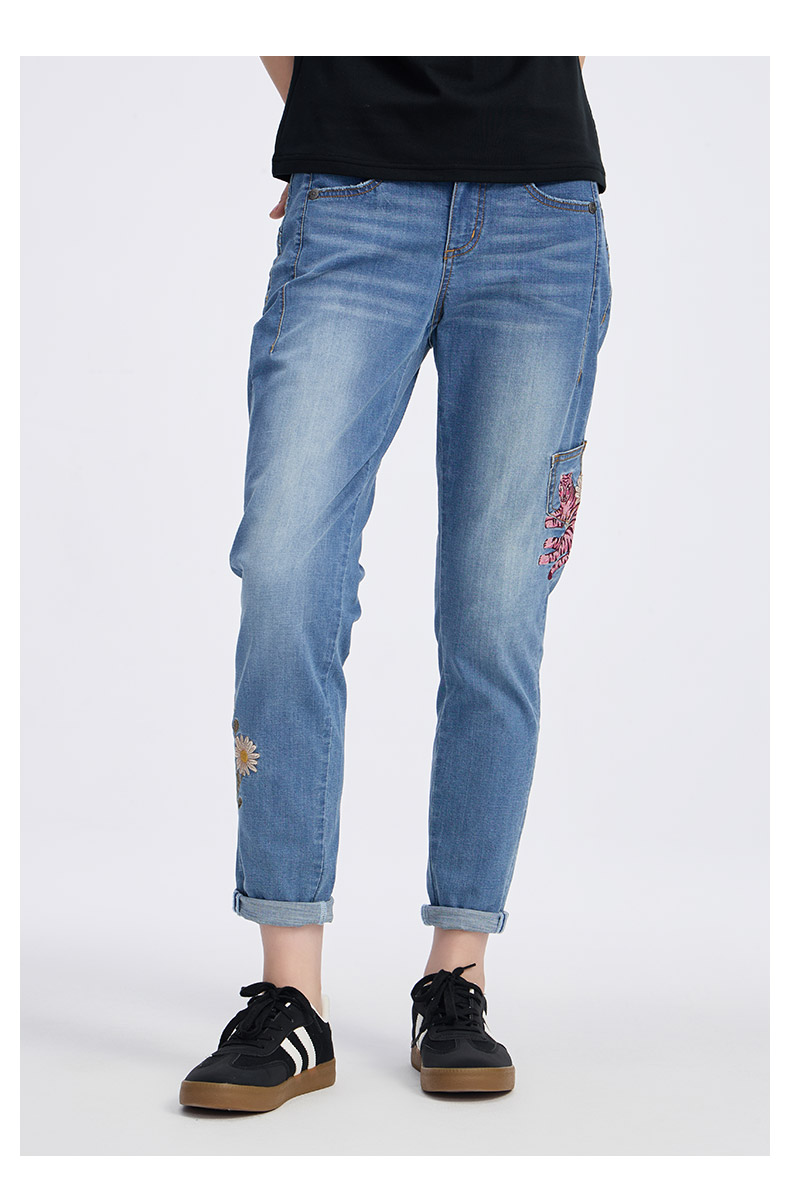 ONIARAI/鬼洗25春夏新品泥棒蓝女款粉红虎绣花牛仔男友裤 25N3406