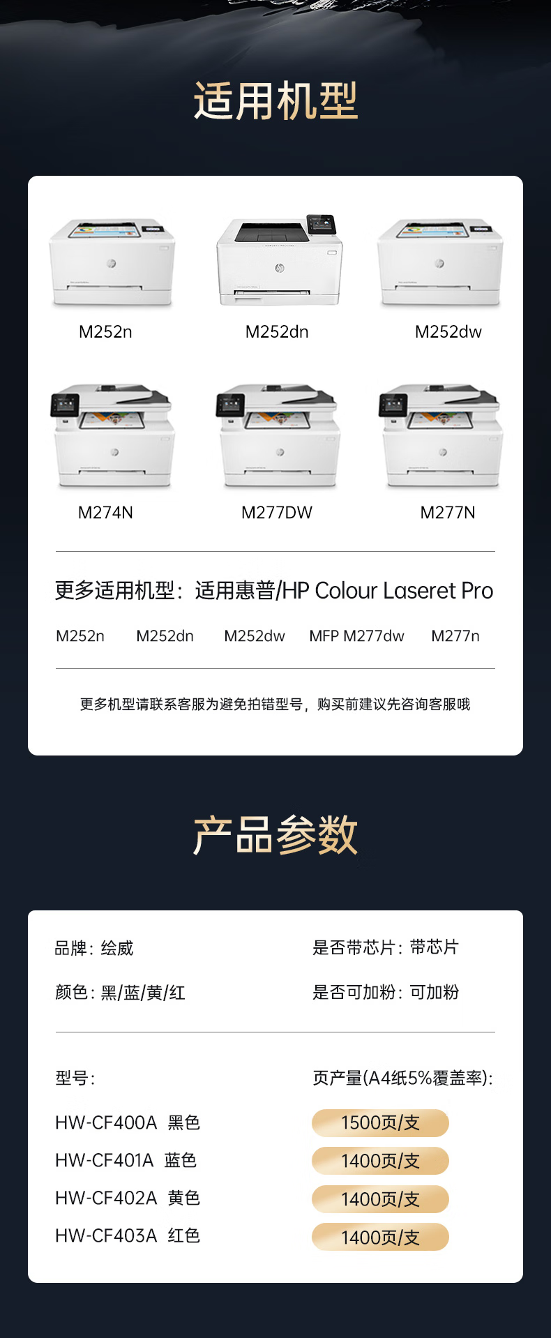 绘威臻享版适用惠普m277dw m252dw打印机硒鼓M252N M252dn M274N M277DW M277N墨盒CF400A/201A四色硒鼓套装