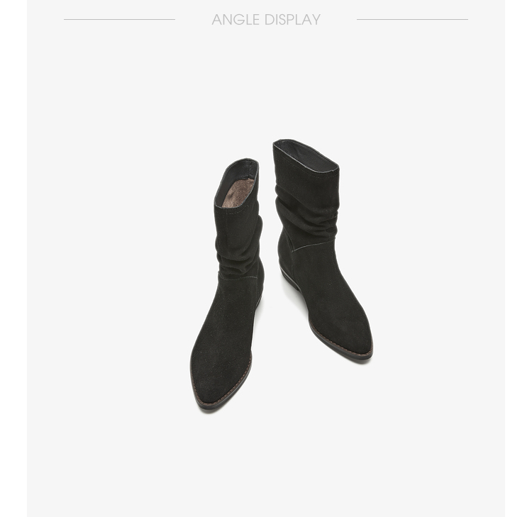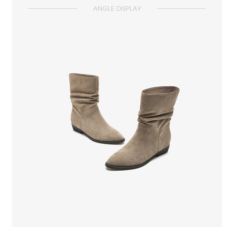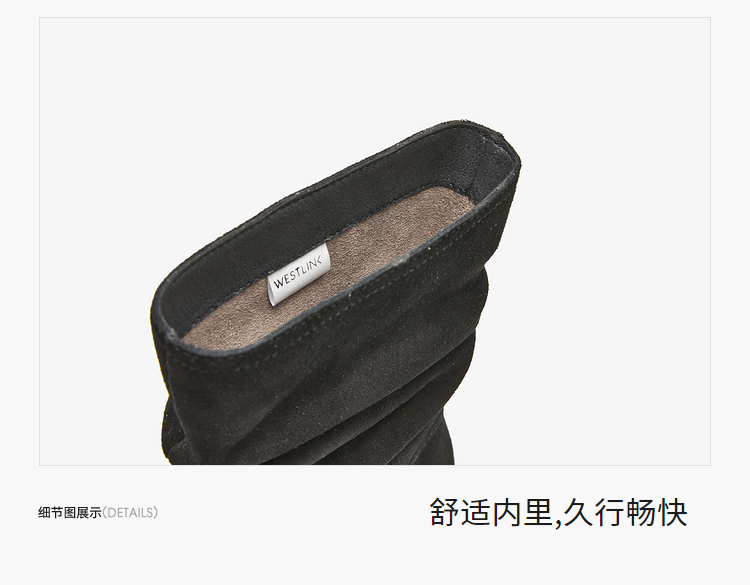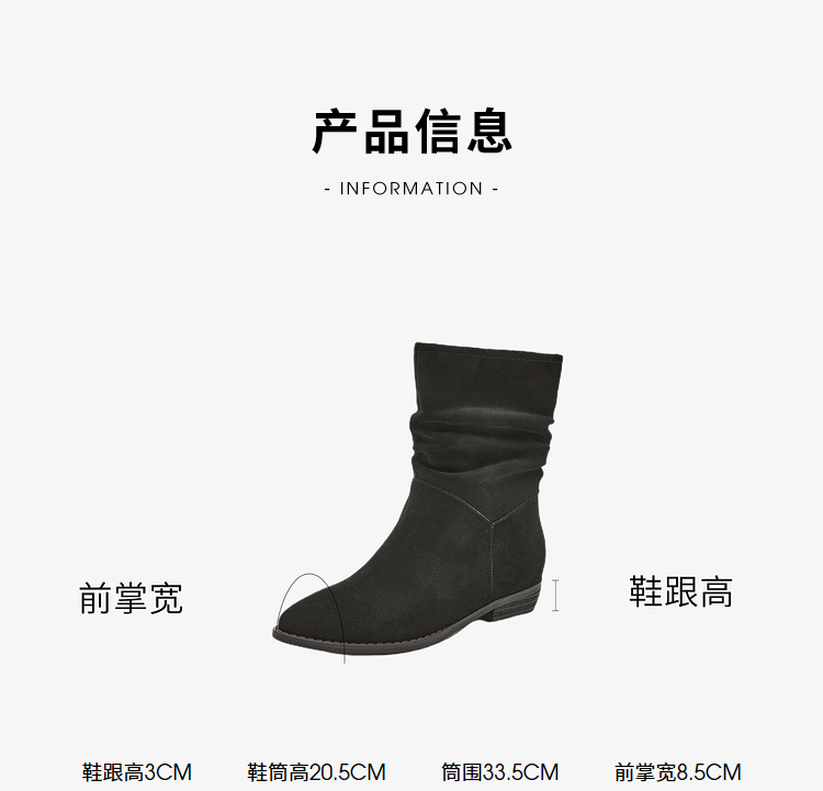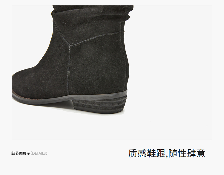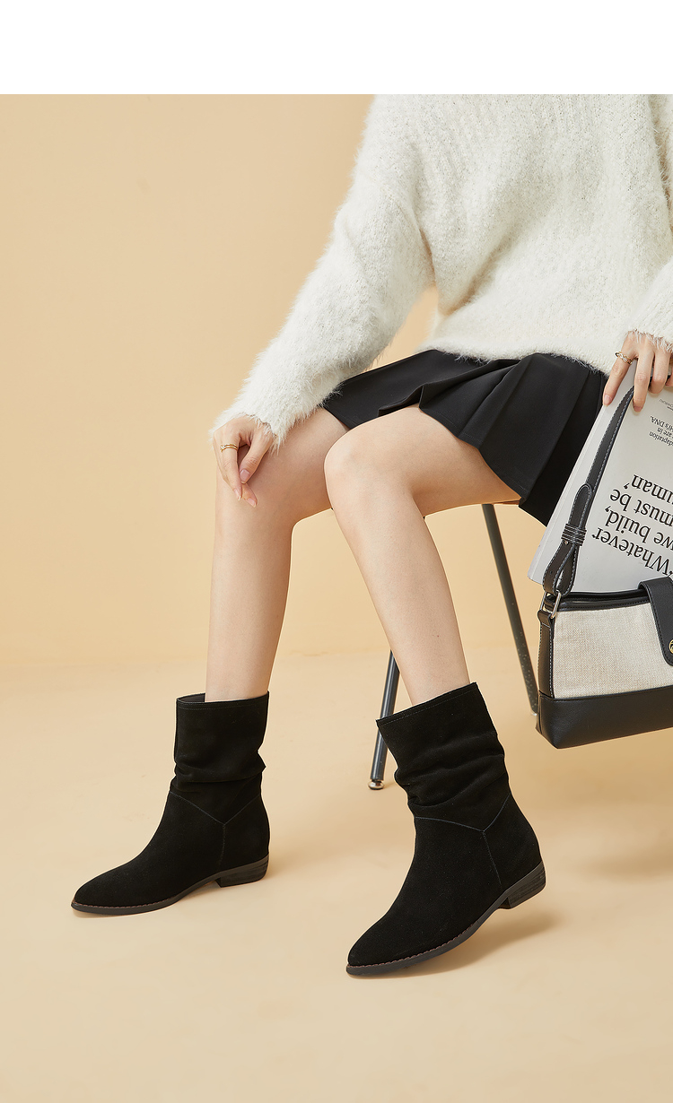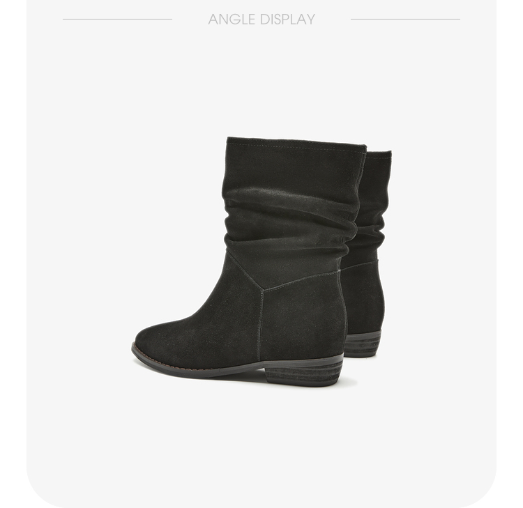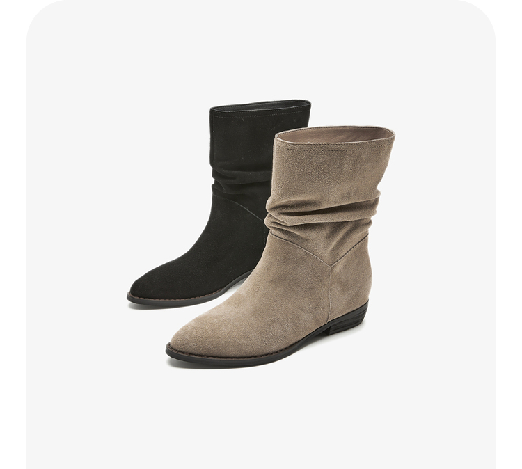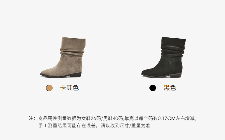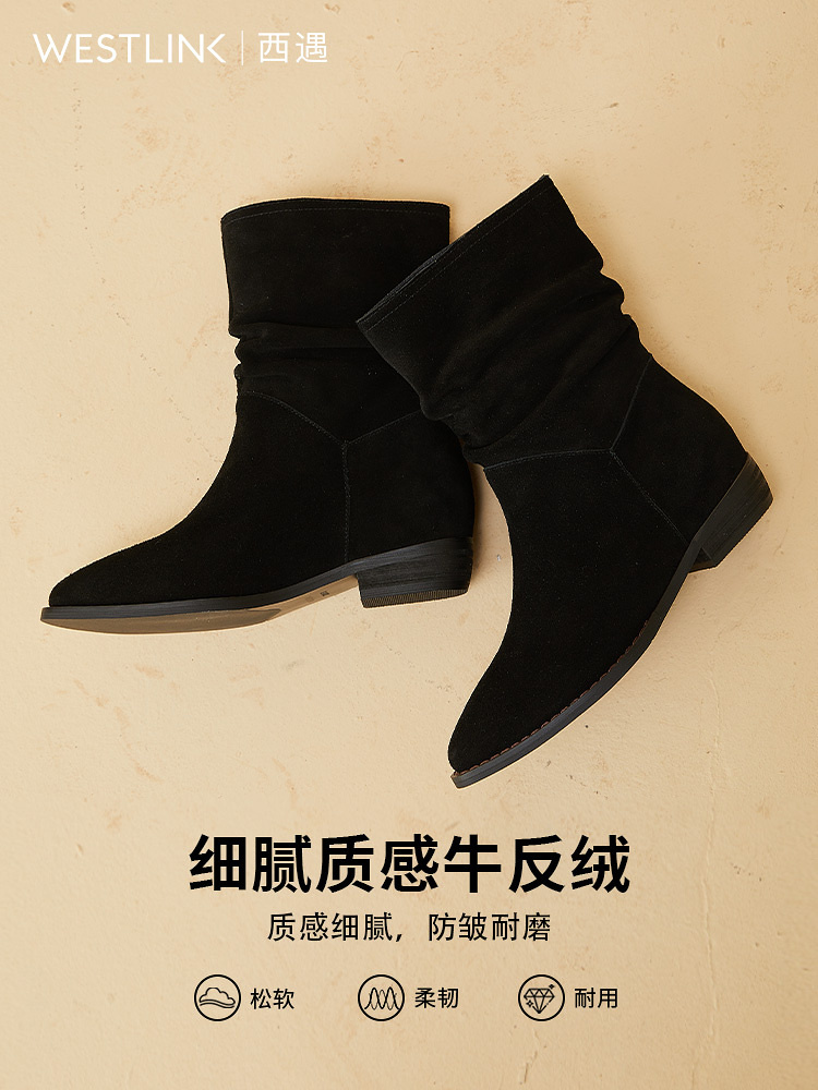 西遇堆堆靴女新款秋冬欧美复古中筒西部牛仔靴中跟尖头短靴子D2033957