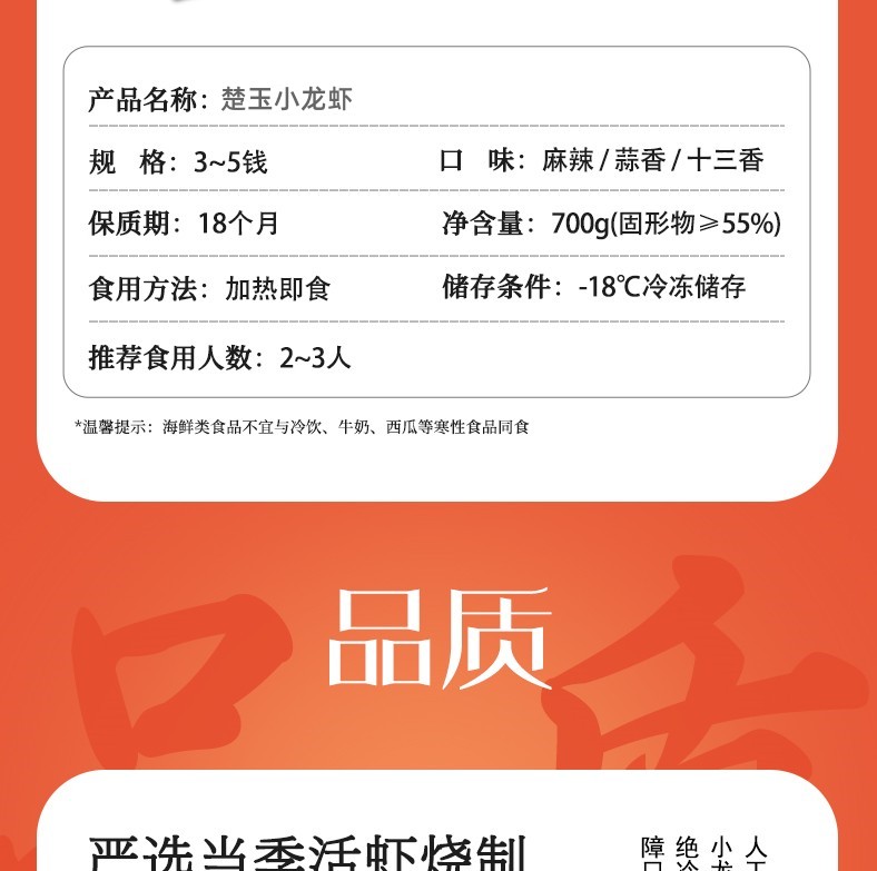 楚玉麻辣小龙虾(中号)750g*3盒【XPTX】