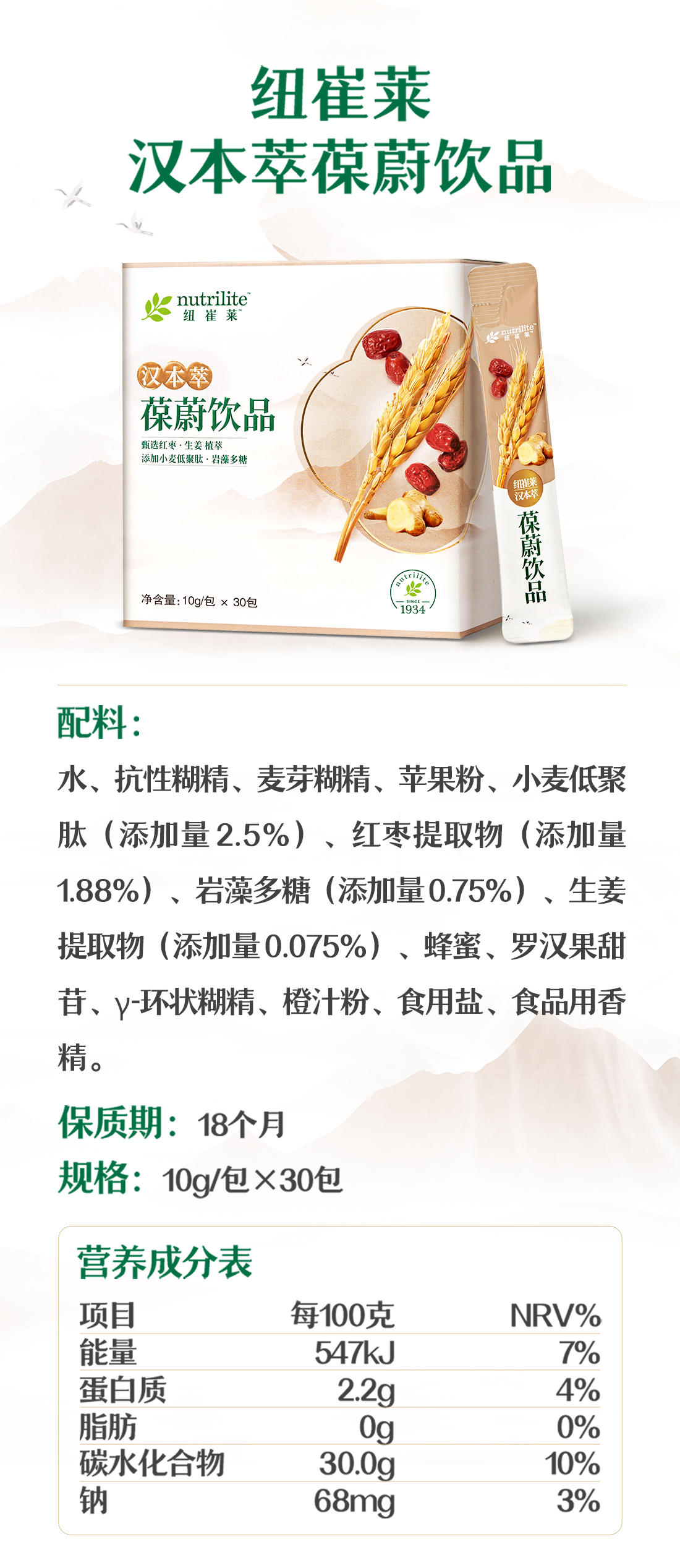 安利纽崔莱汉本萃葆蔚饮品30条装
