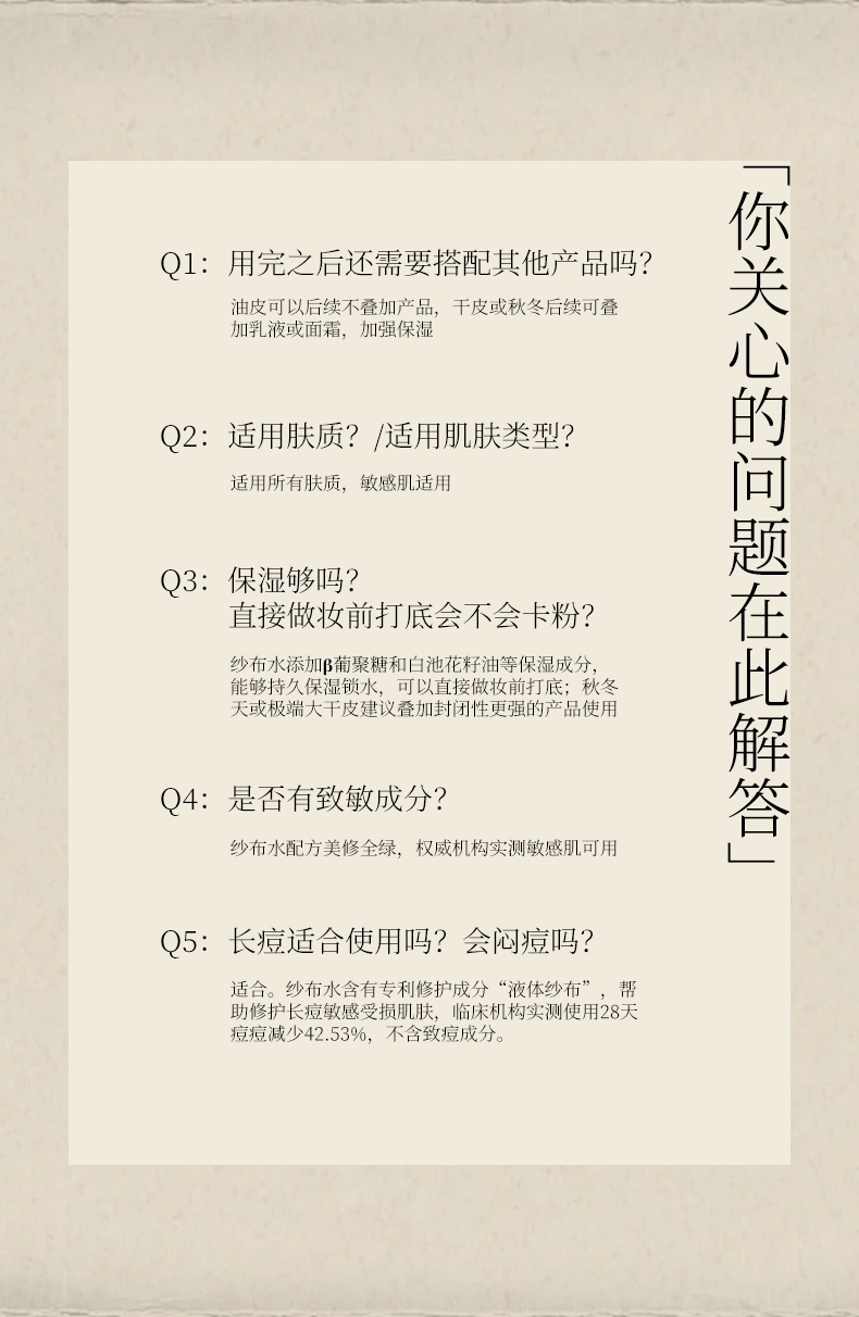 无妨皮肤修复乳感水 敏感肌可用 柔润水感纱布水