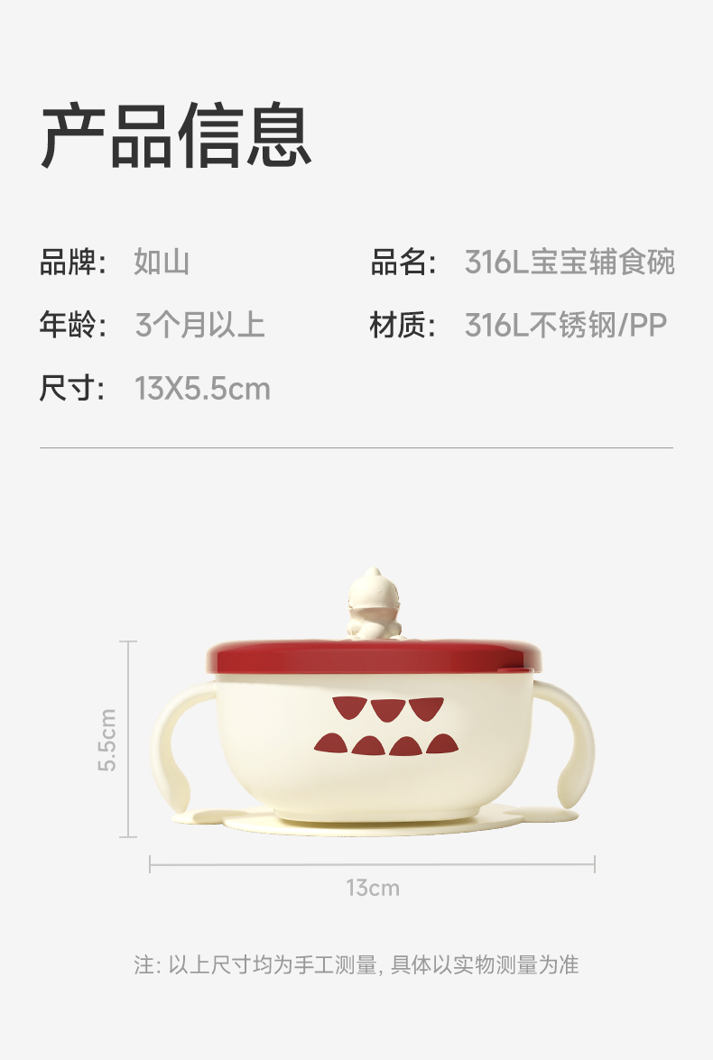 如山宝宝小恐龙辅食碗婴儿专用喝汤碗儿童吃饭碗外出餐具不锈钢碗