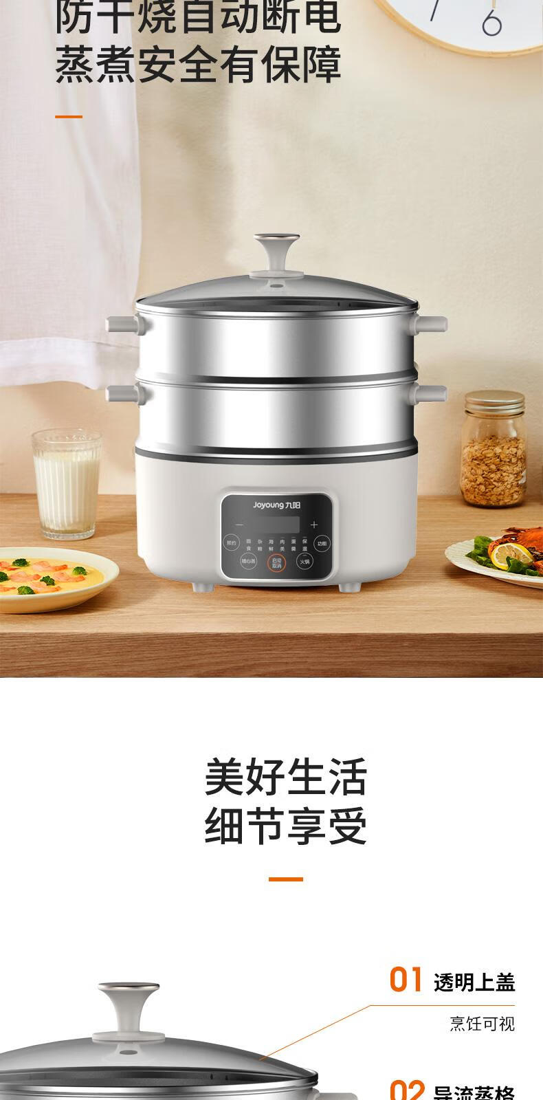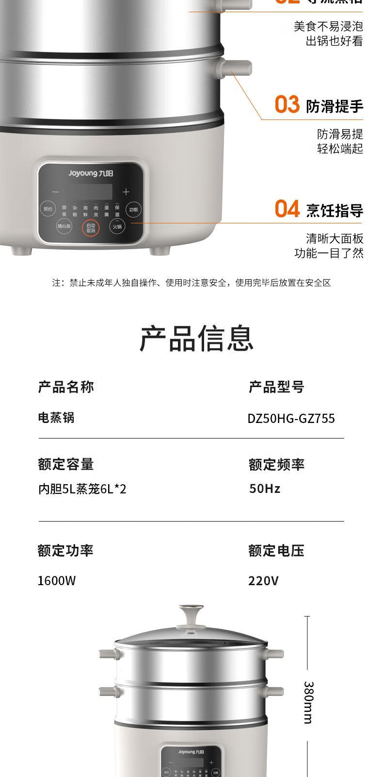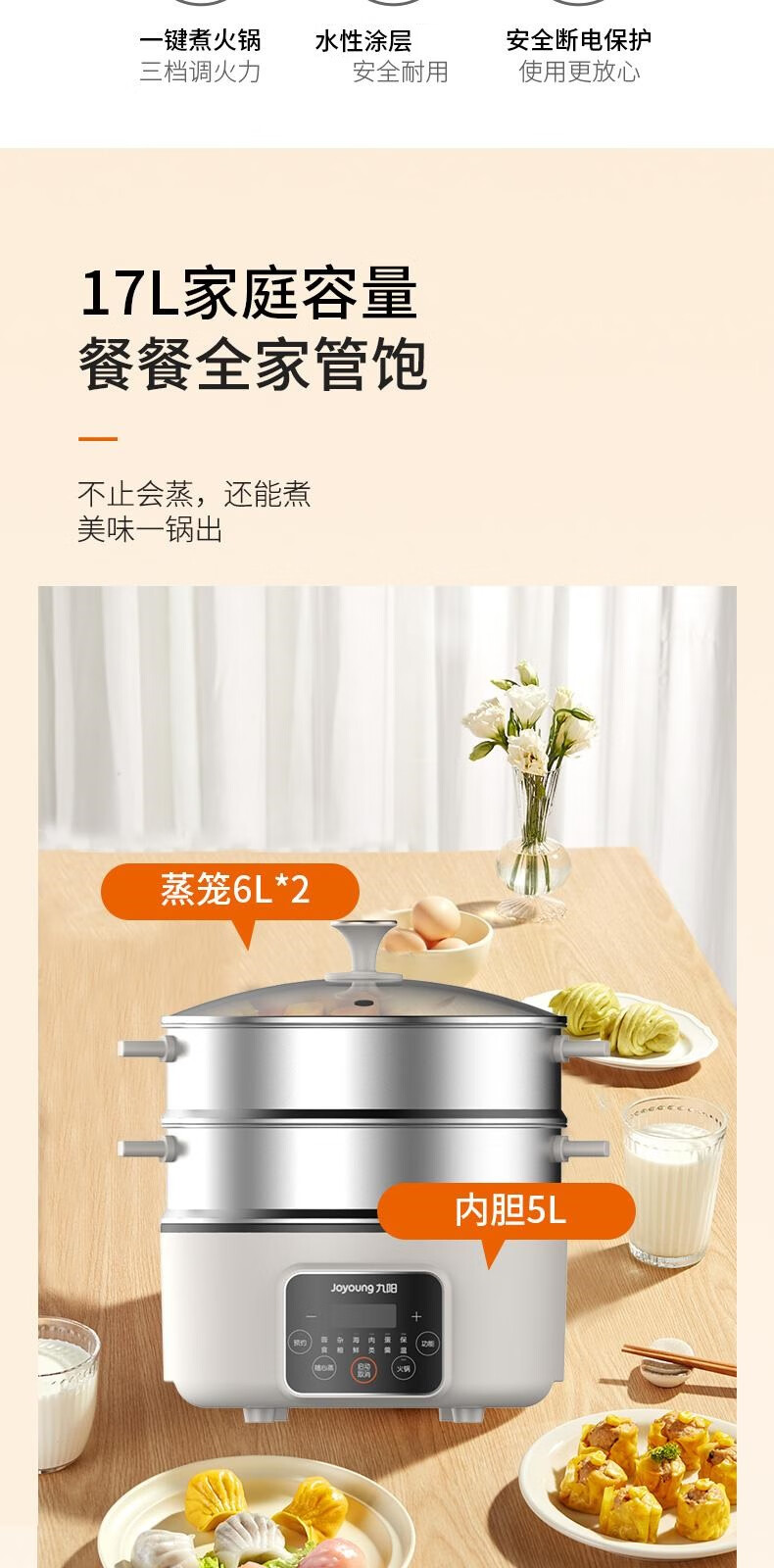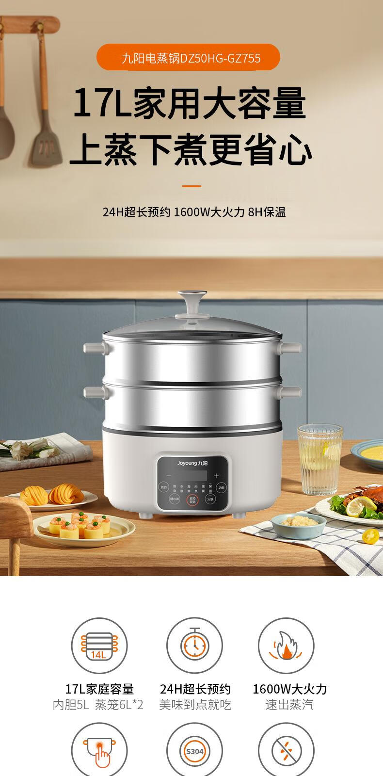 九阳(Joyoung) 电蒸锅DZ50HG-GZ755多功能家用电热锅电火锅多档火力调节配带蒸笼
