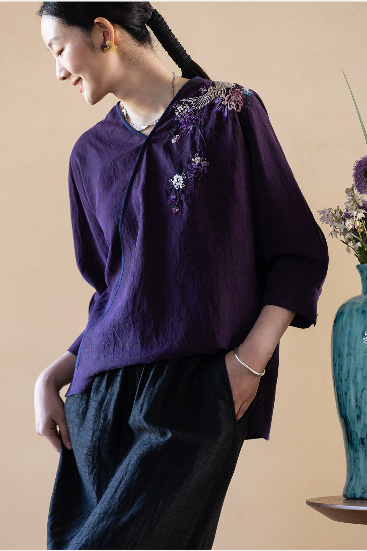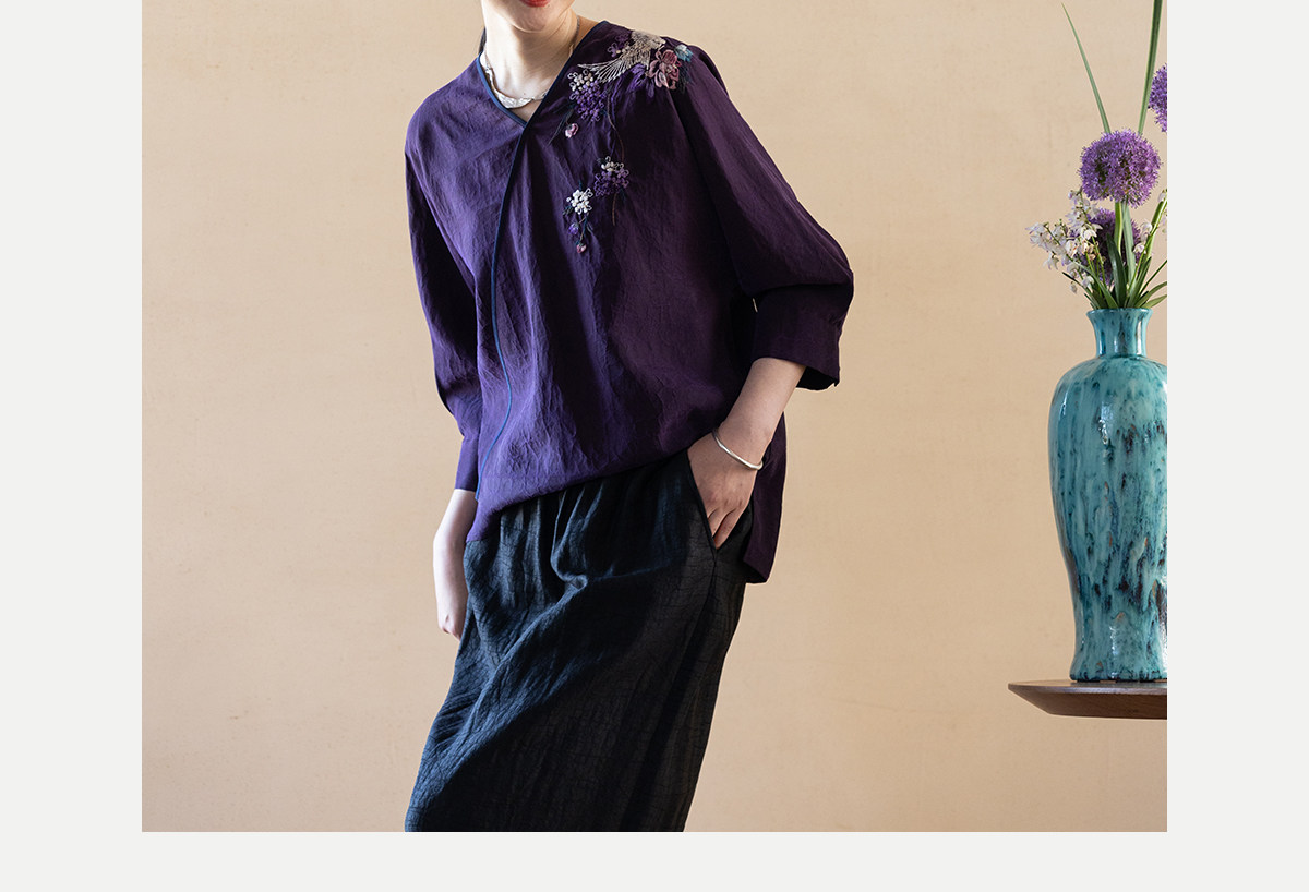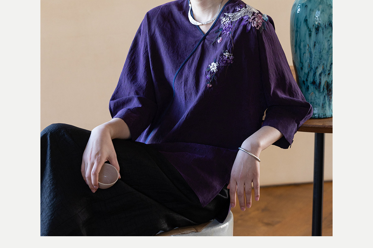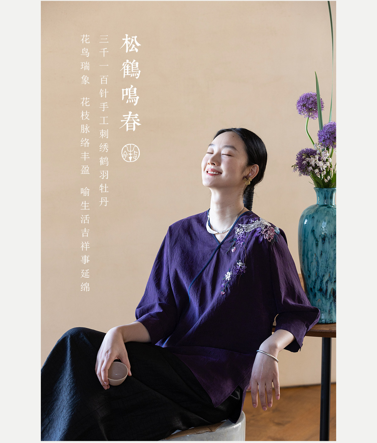 牧衣游原创 22姆米重磅手工刺绣龟裂纹香云纱小衫禅意复古 云然