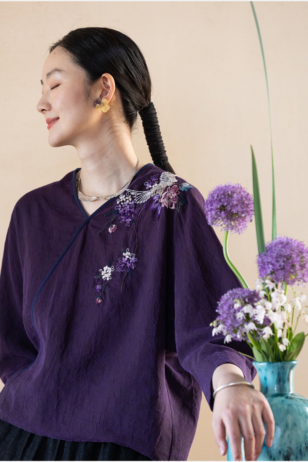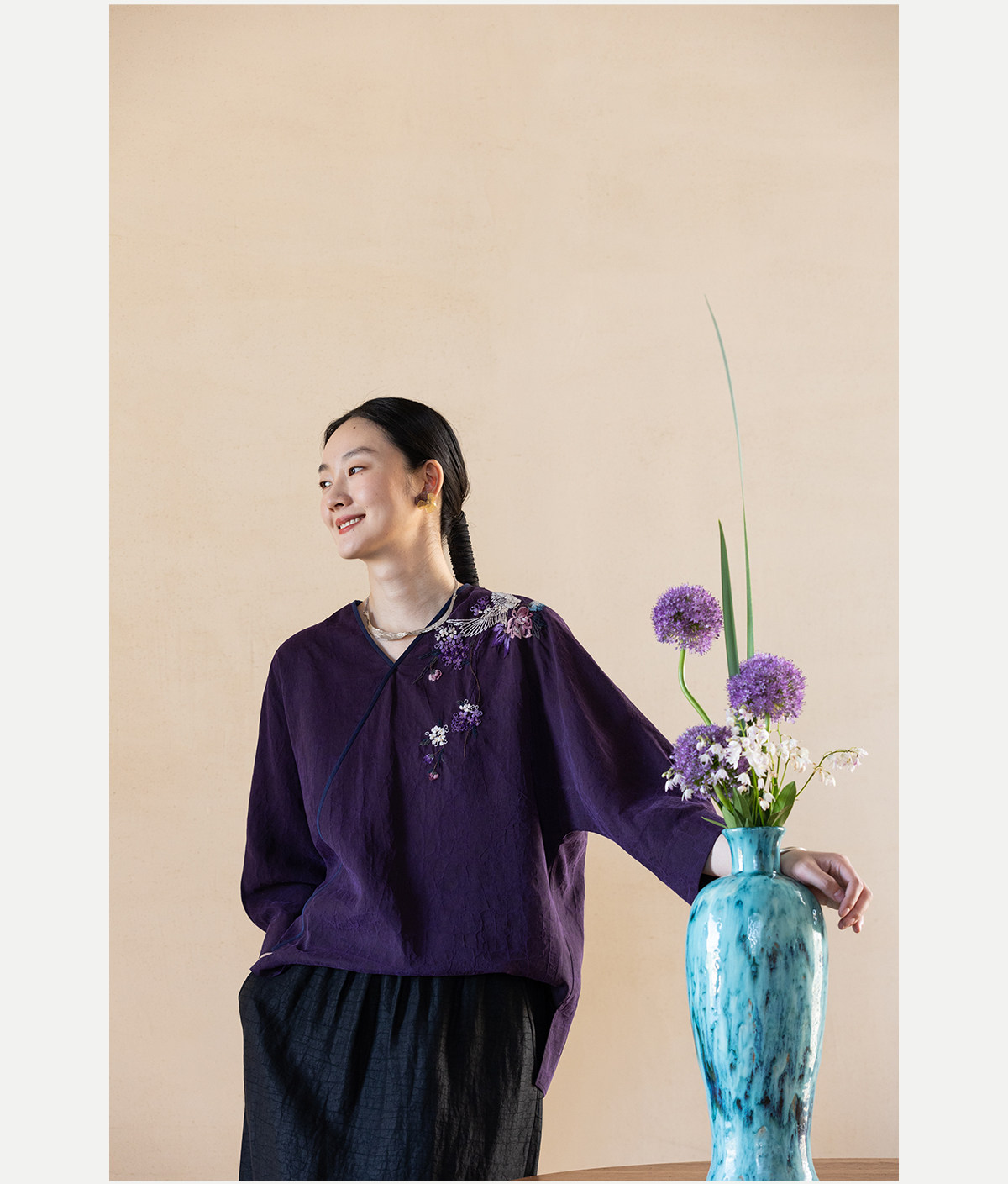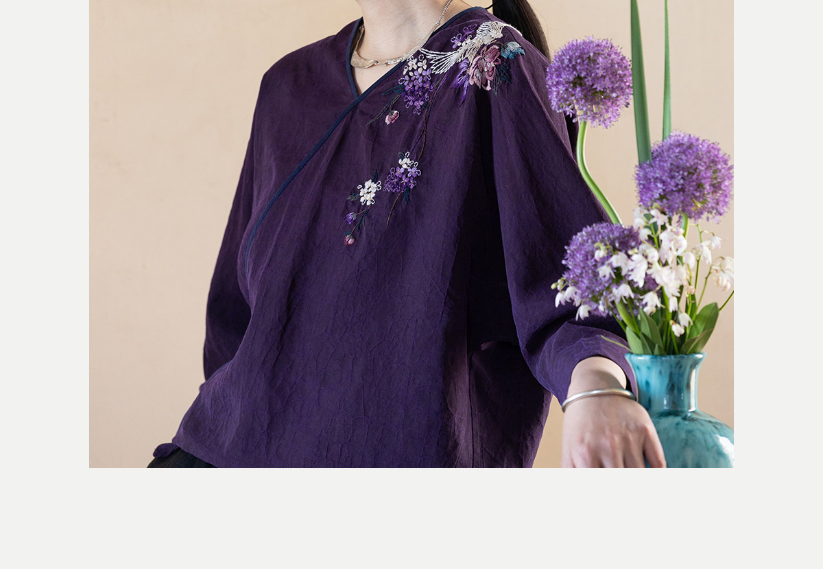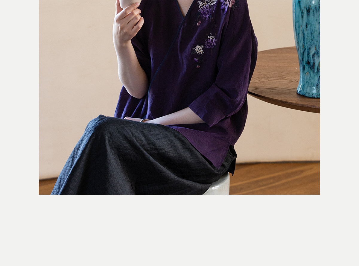 牧衣游原创 22姆米重磅手工刺绣龟裂纹香云纱小衫禅意复古 云然