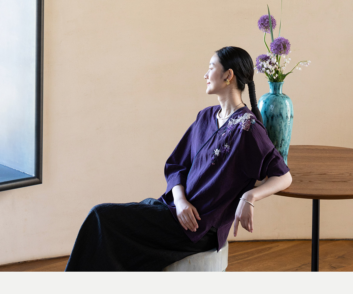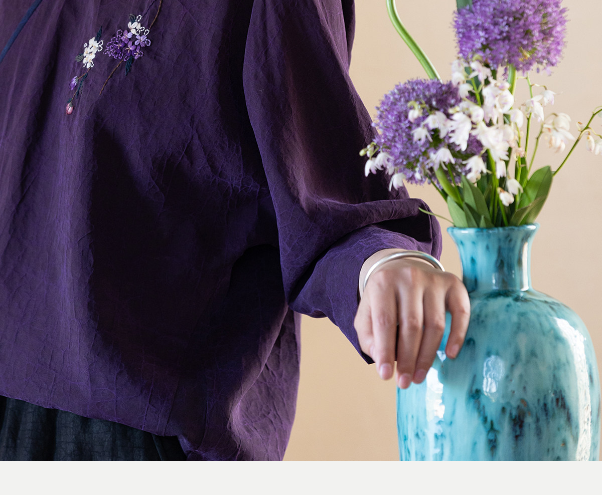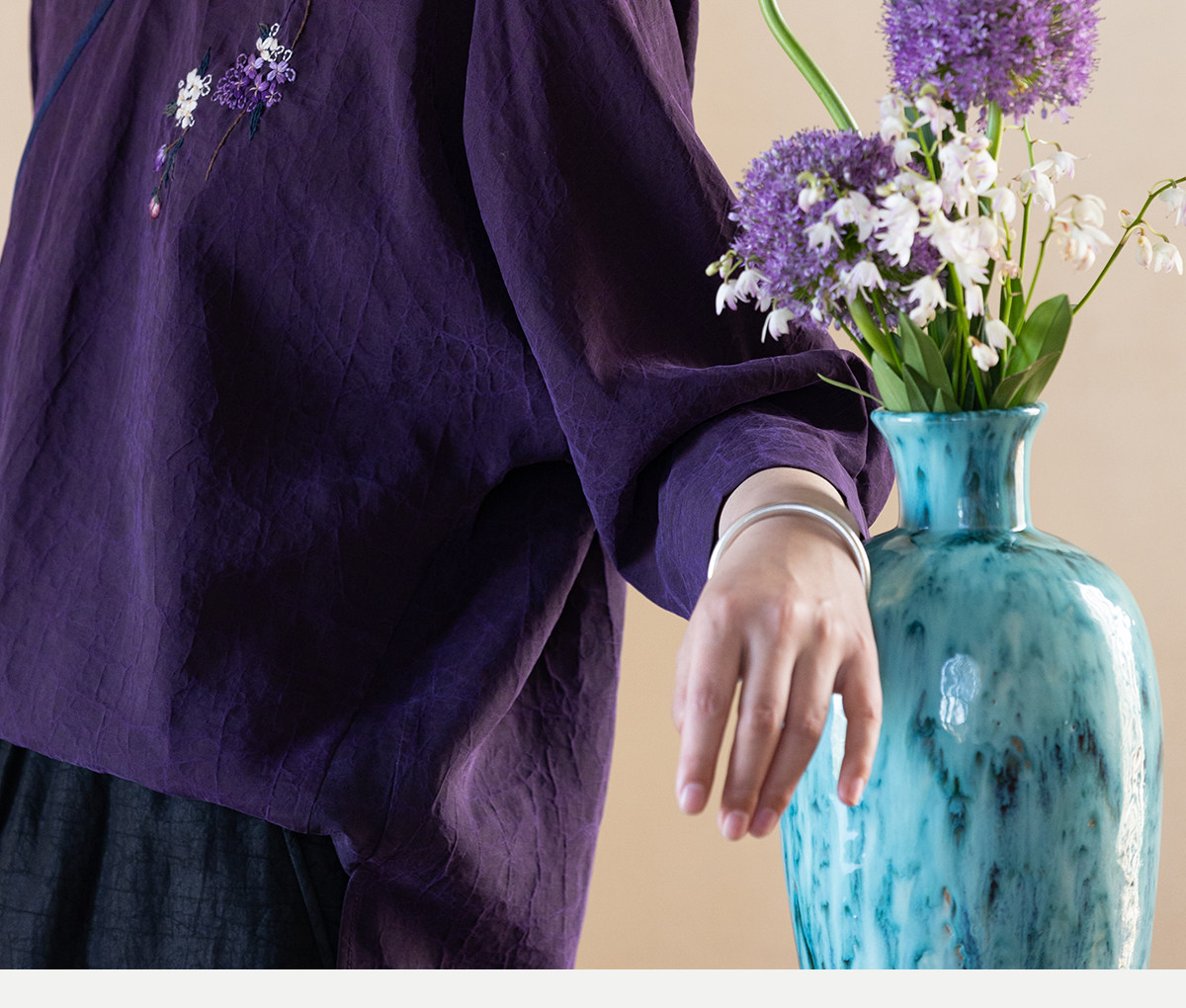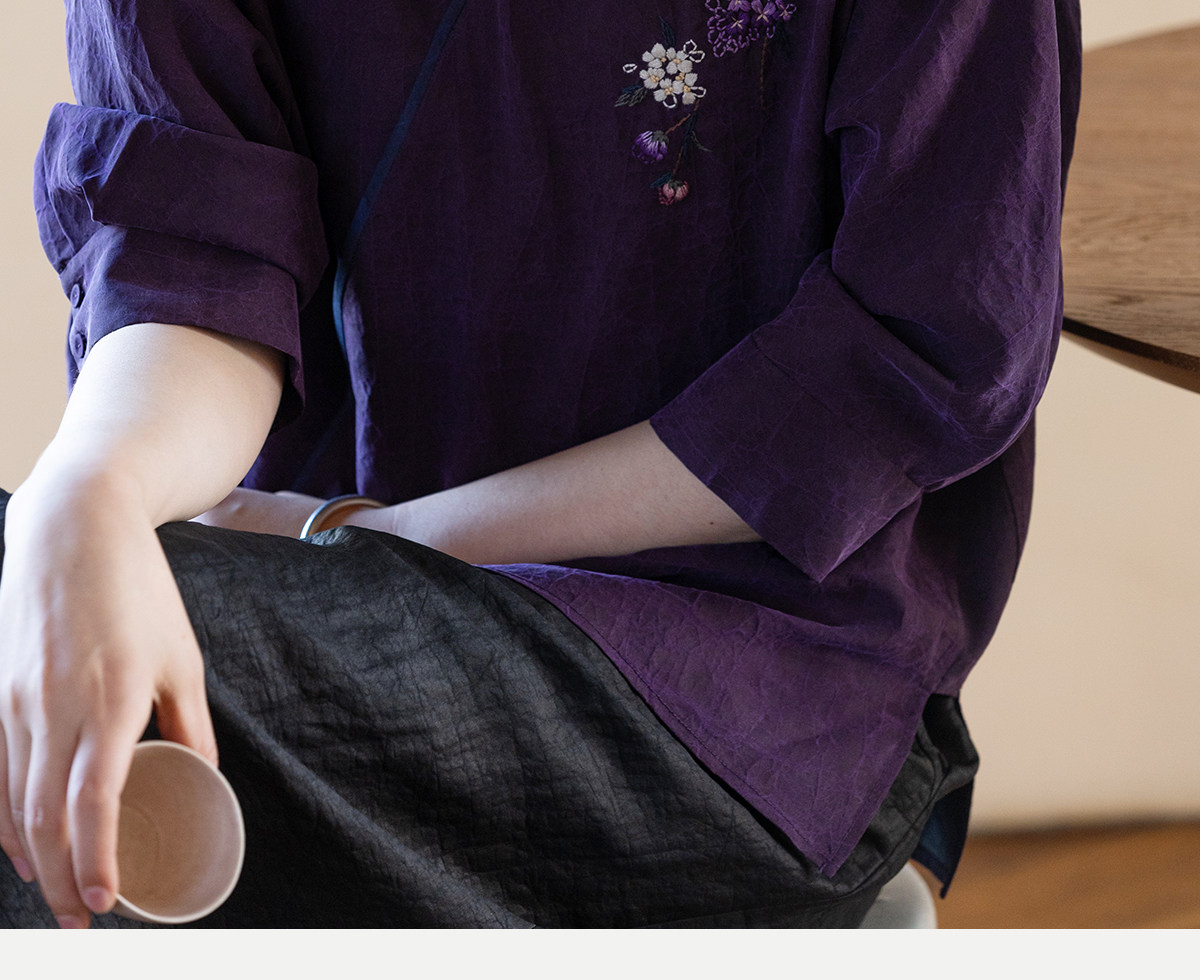 牧衣游原创 22姆米重磅手工刺绣龟裂纹香云纱小衫禅意复古 云然