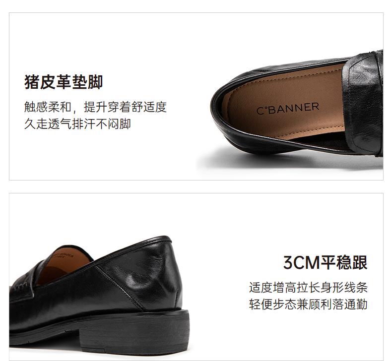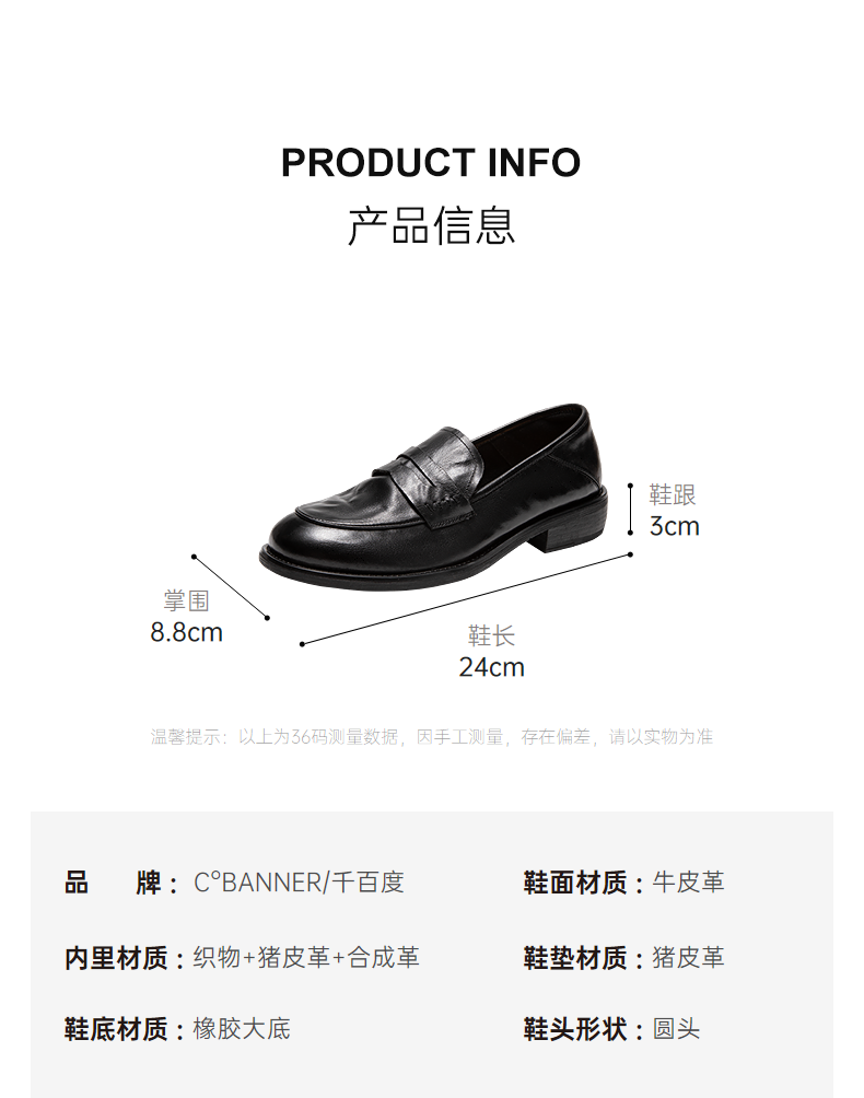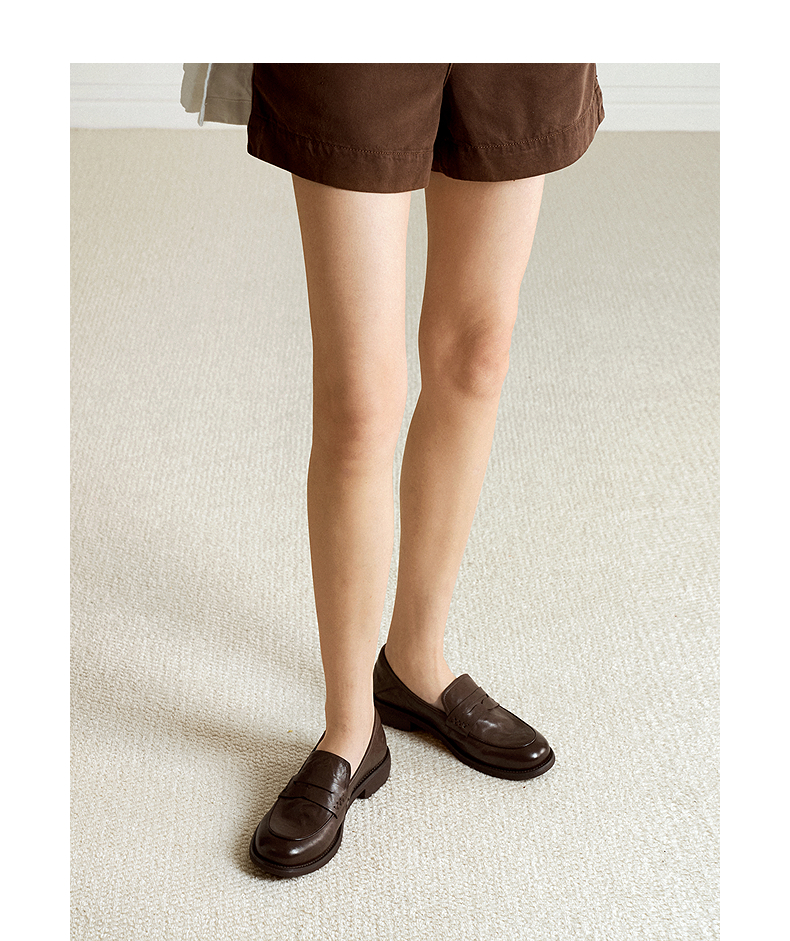 千百度手抓皮低跟乐福鞋女英伦风小皮鞋通勤深口单鞋A25456159