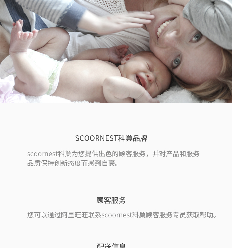 - Scoornest始终秉承给每一位宝宝送去科学的、关心的、创新的成长体验,通过提供商品和服务,使顾客形成守护、发展、巩固这种弥足珍贵的亲情的爱。