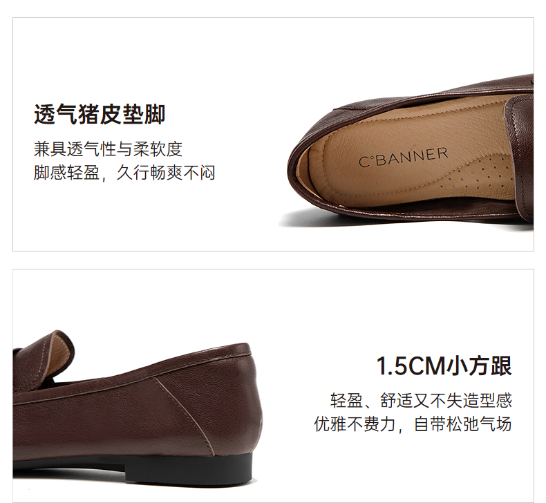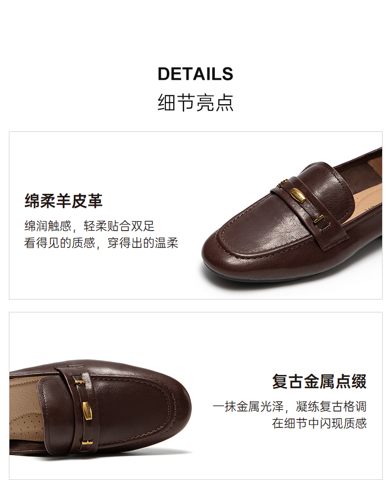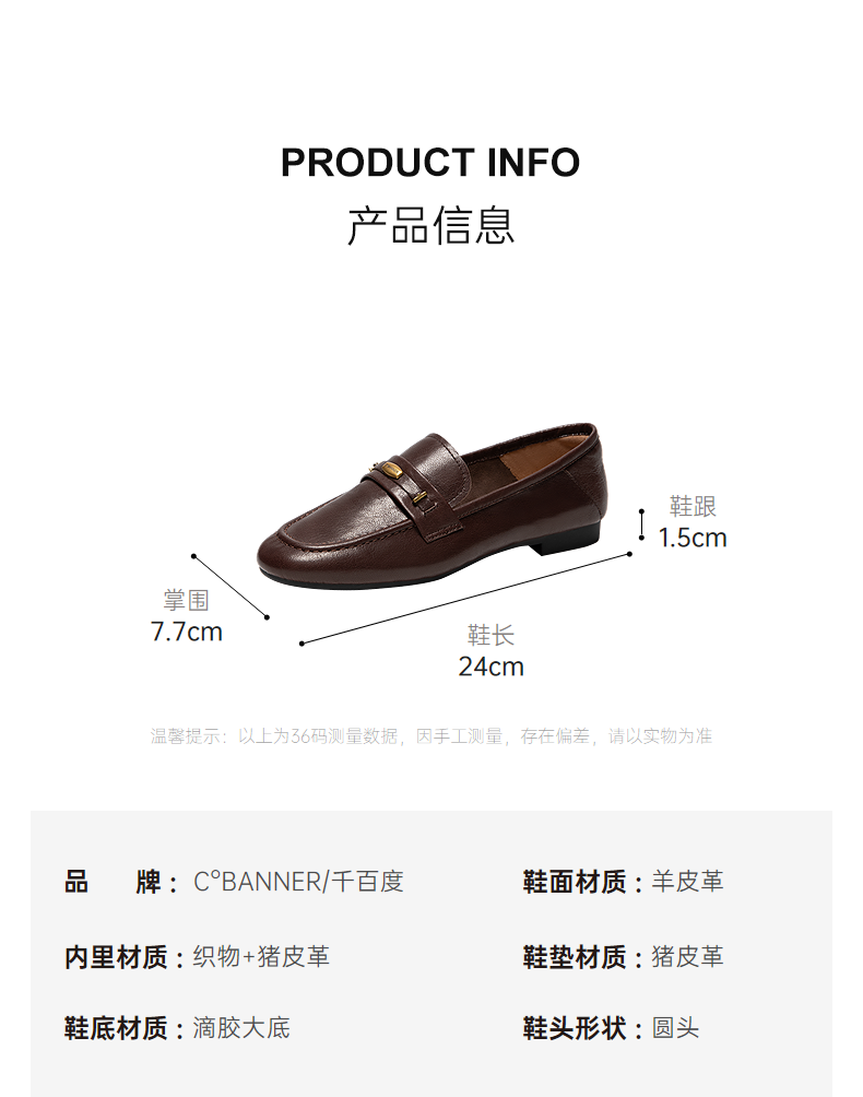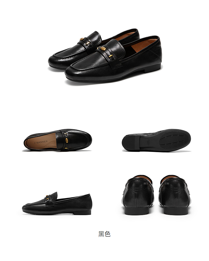 千百度低跟羊皮乐福鞋女通勤正装小皮鞋单鞋A25489725