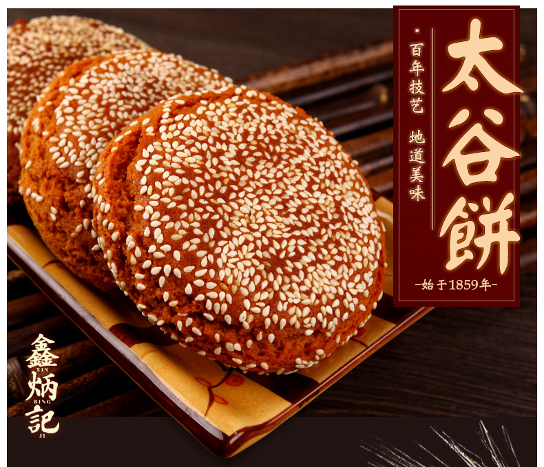 鑫炳记始于1859年,历经五代传承,传承百年工艺,从选取原料到烘烤出炉,都严格遵守祖传古方,让百年太谷饼焕发新的魅力。