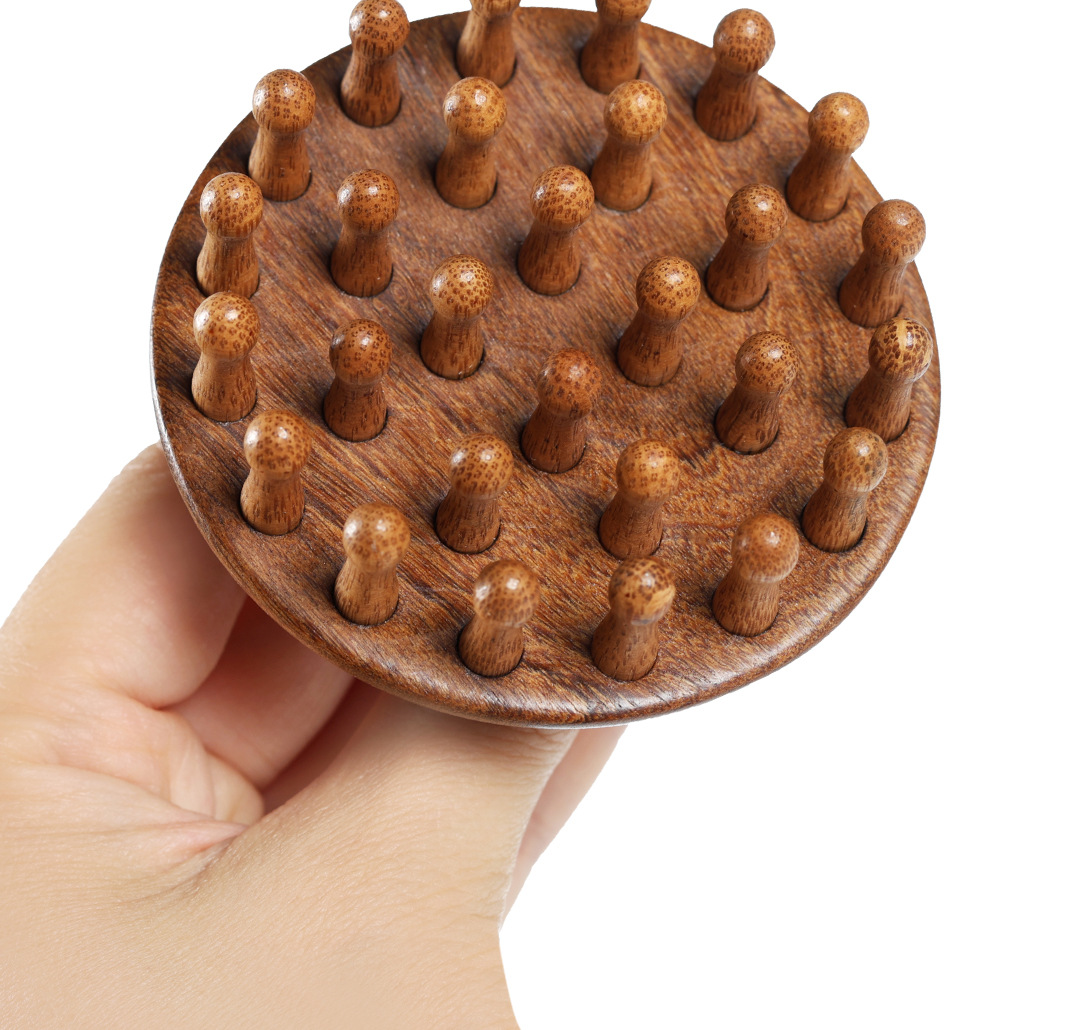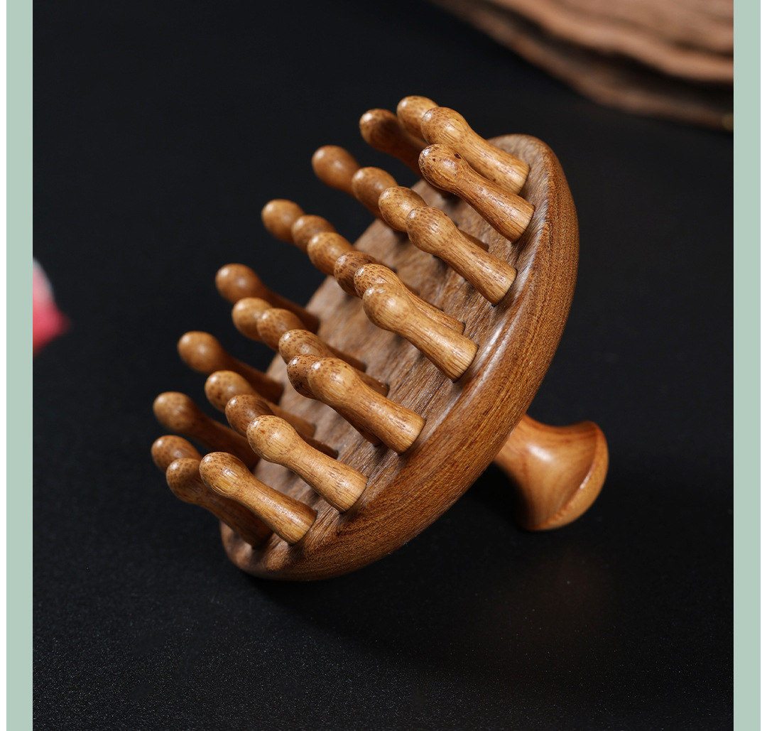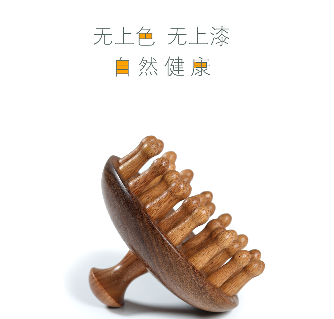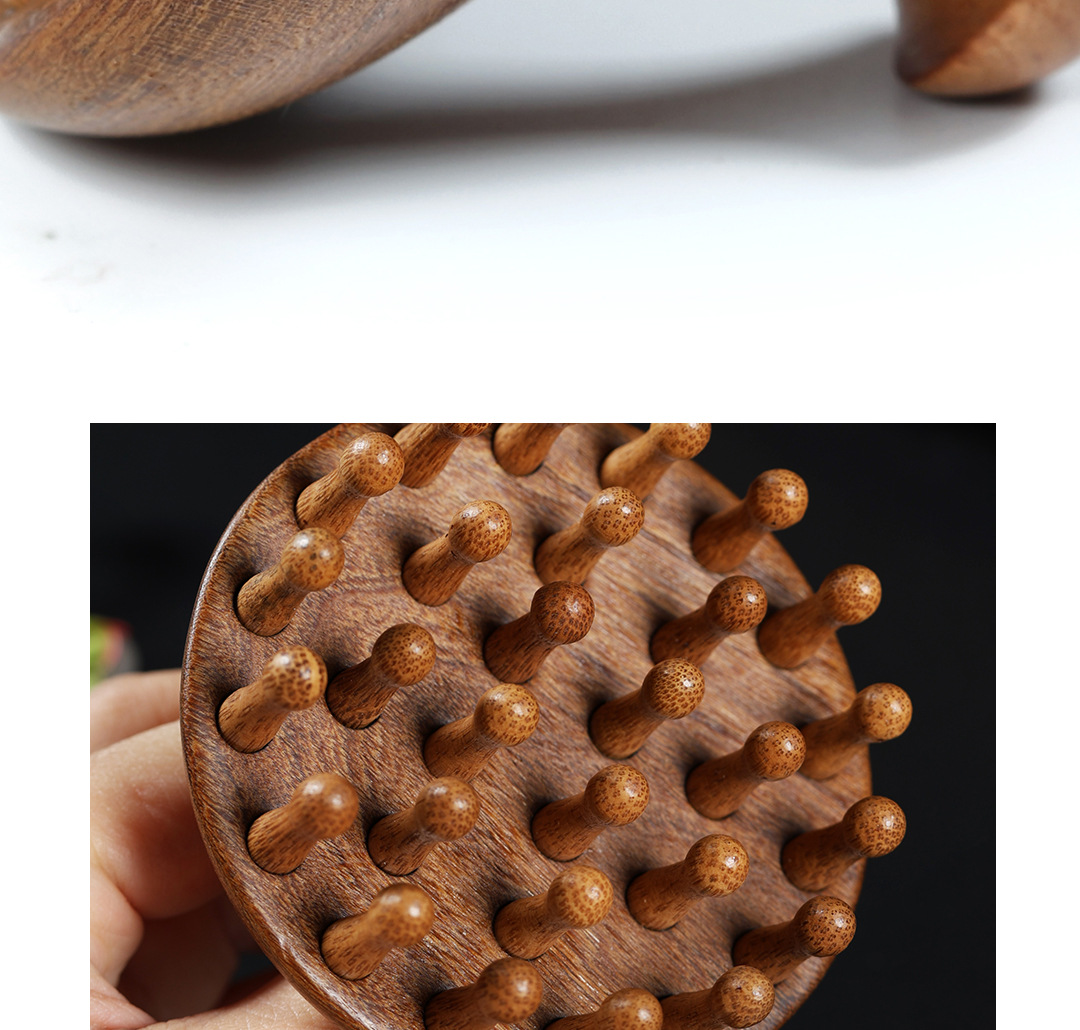 【金丝檀木按摩梳 一梳多用】金丝檀木壶盖钉钉梳 按摩梳头部经络梳养发 保健梳粗齿檀香木梳圆梳