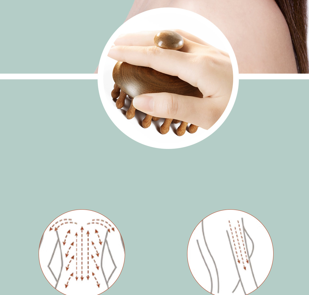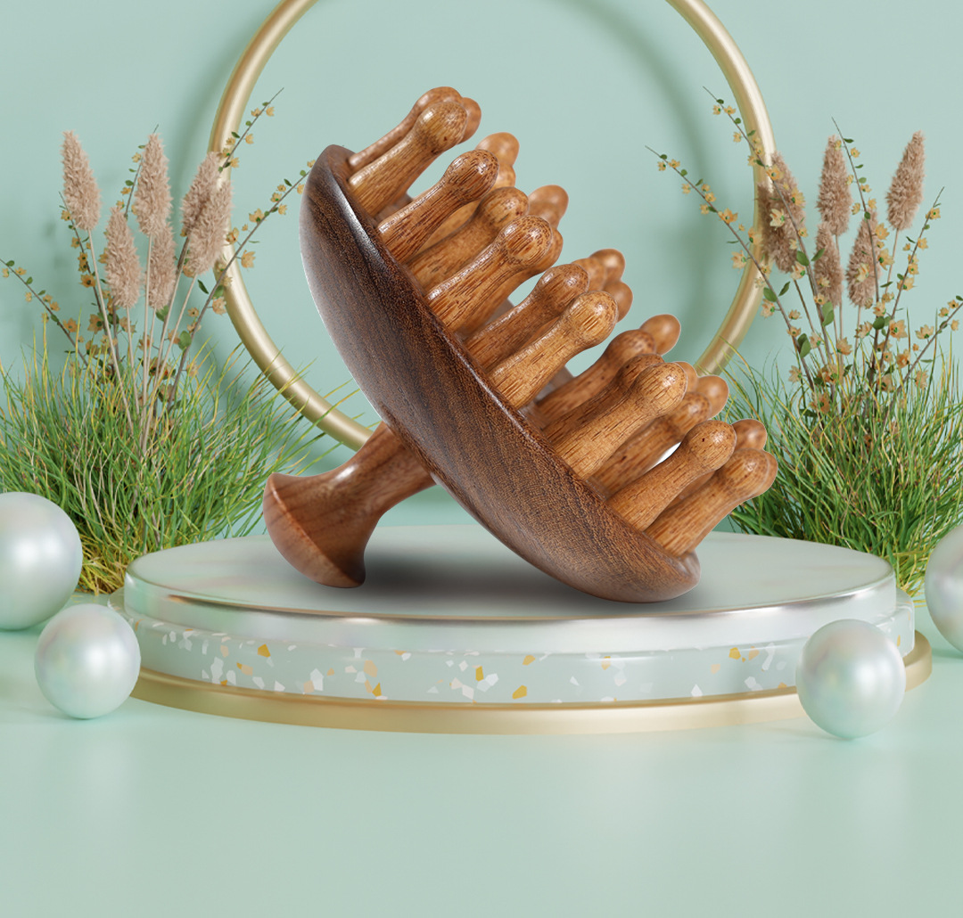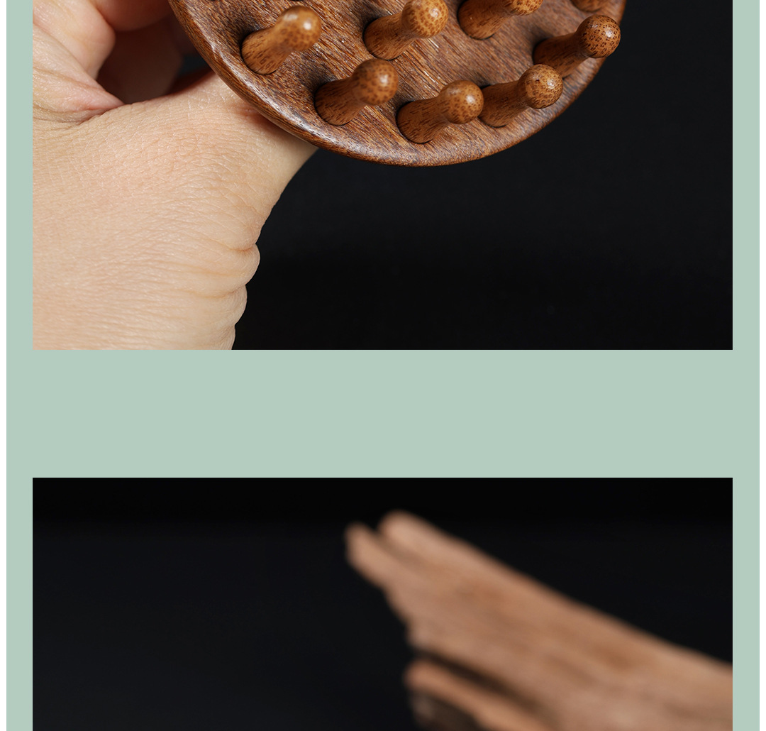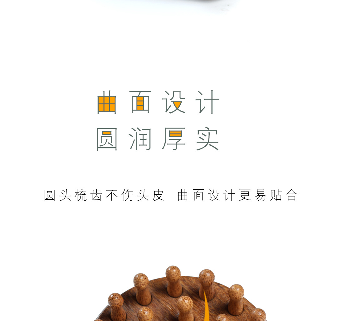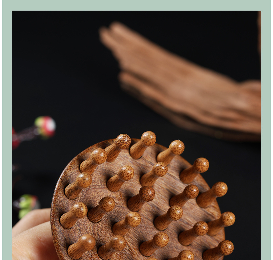【金丝檀木按摩梳 一梳多用】金丝檀木壶盖钉钉梳 按摩梳头部经络梳养发 保健梳粗齿檀香木梳圆梳