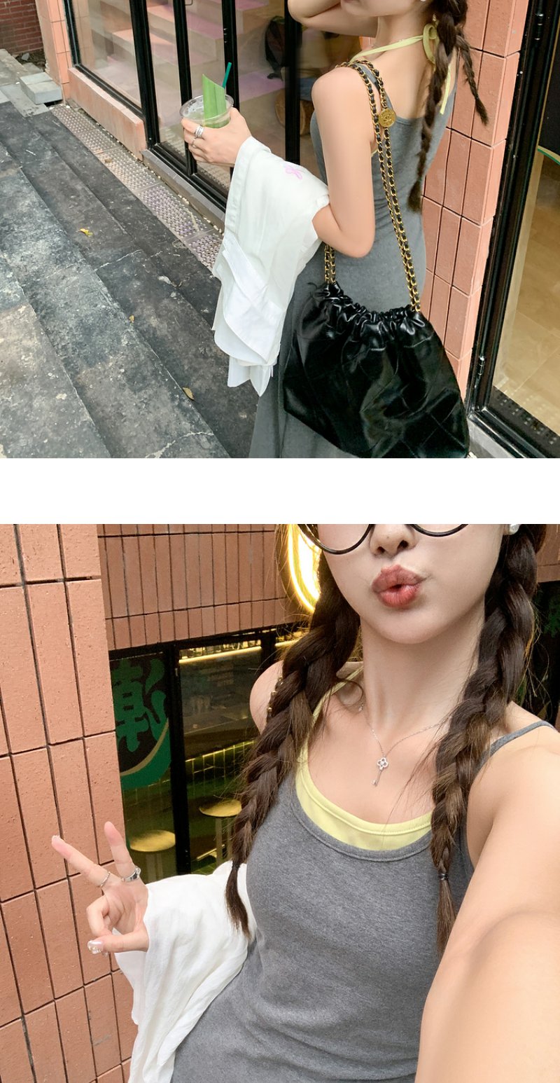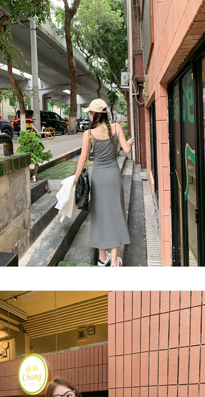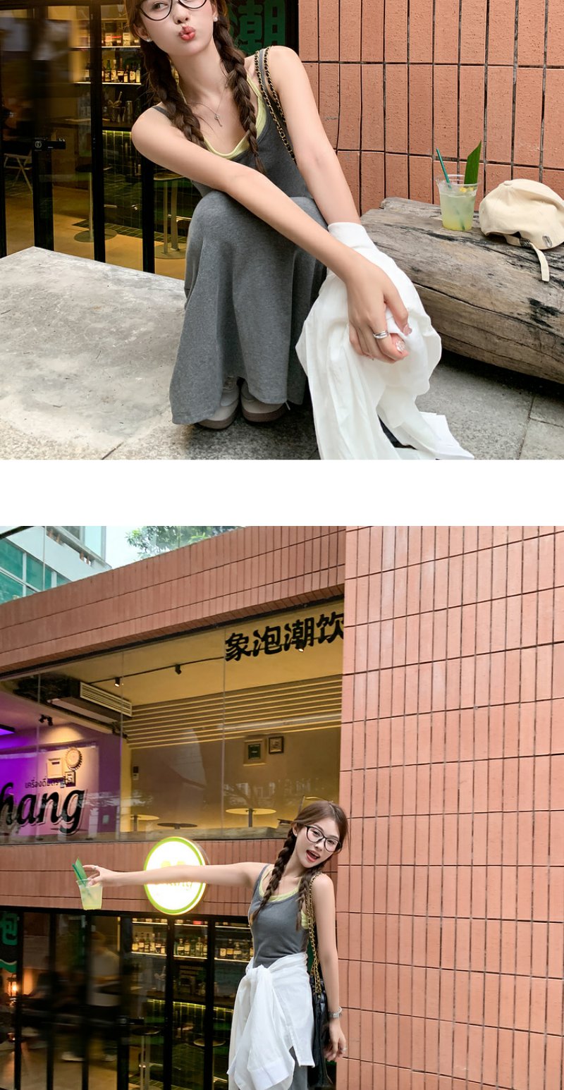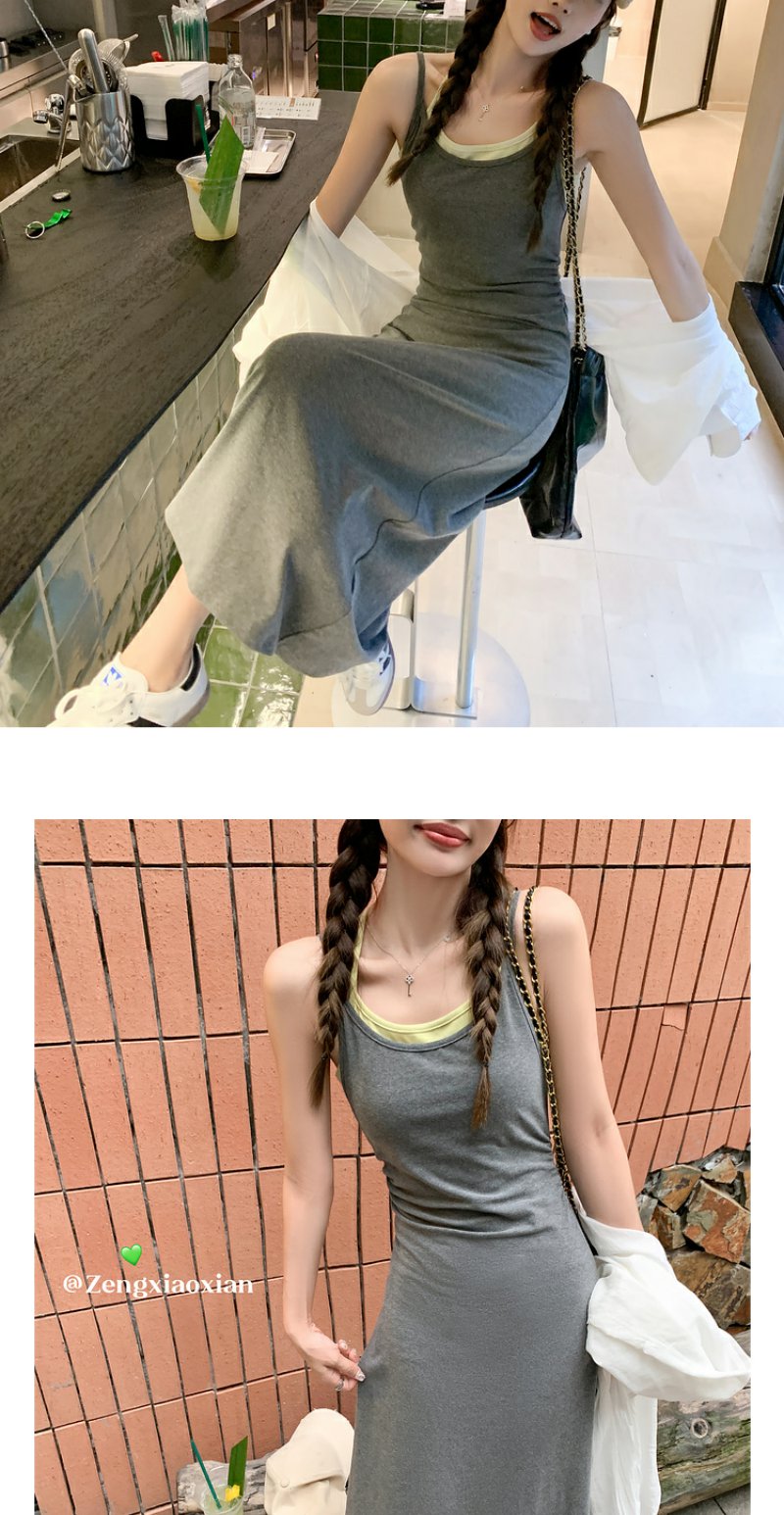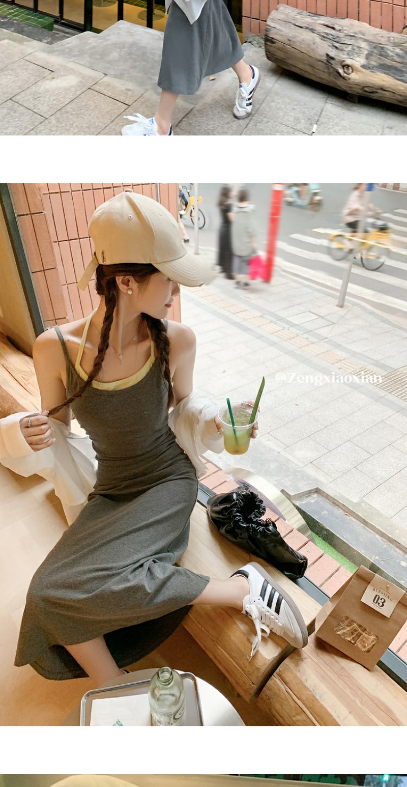 <曾小咸推荐>【月光冷萃】灰色假两件吊带裙