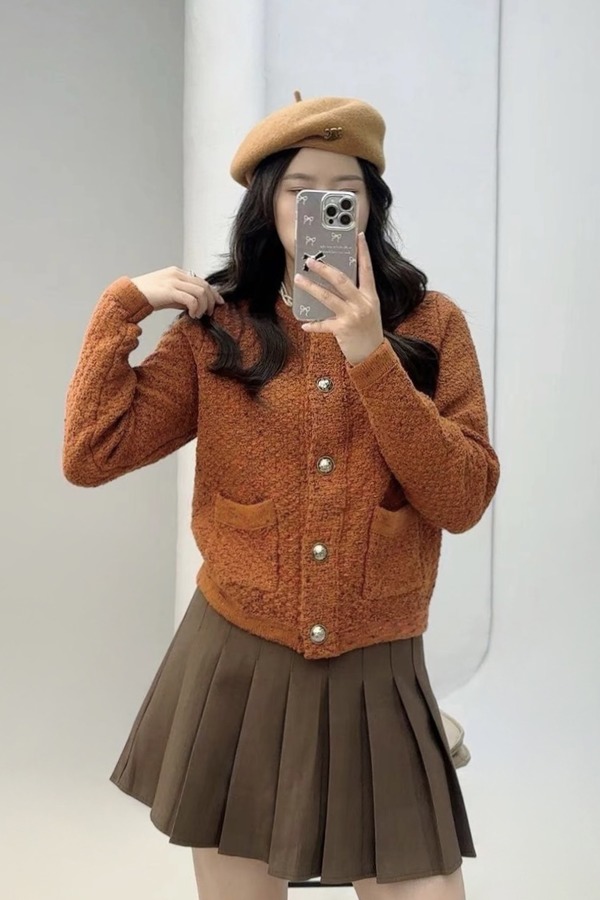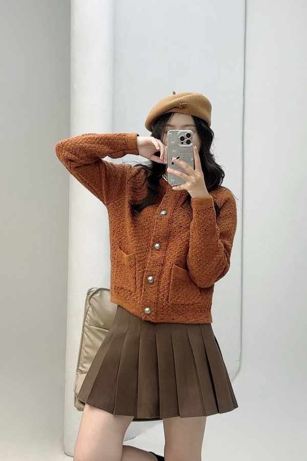 amadella 高级感棕色小香风开衫外套 21828