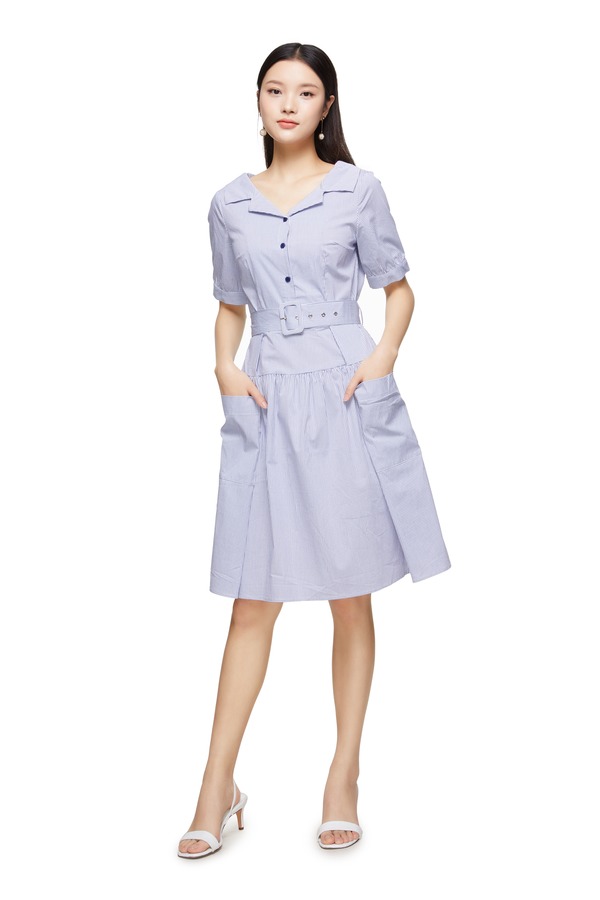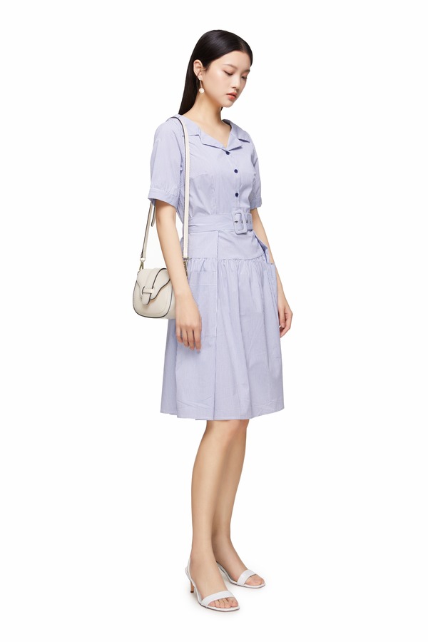 SIEGO 对称口袋格纹连衣裙 8953