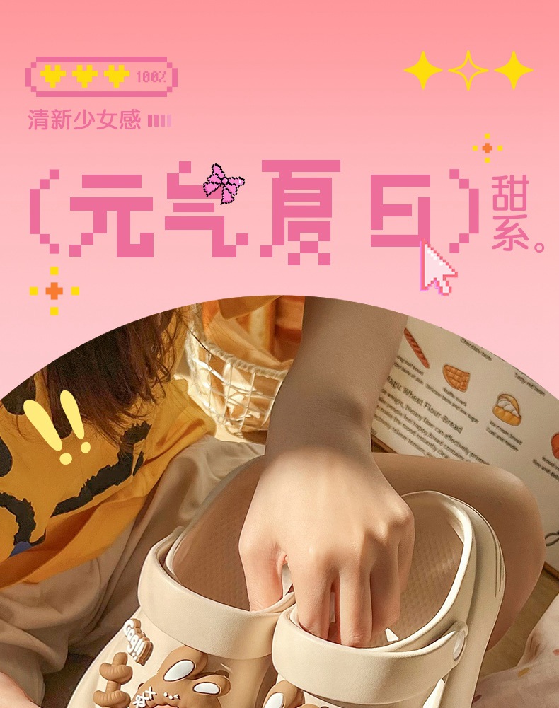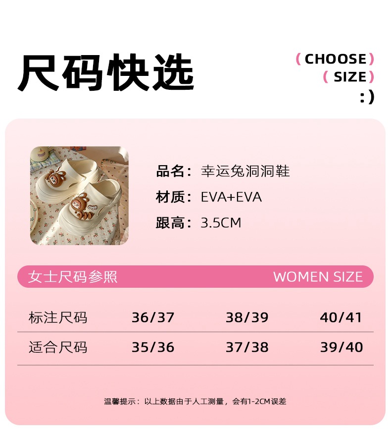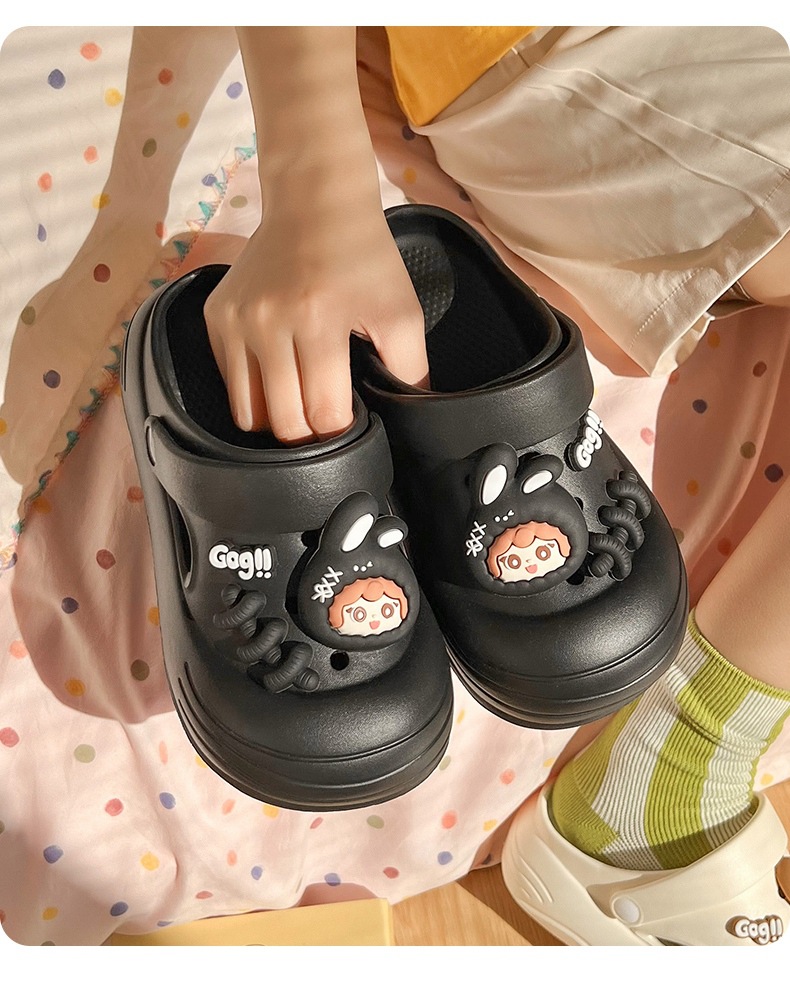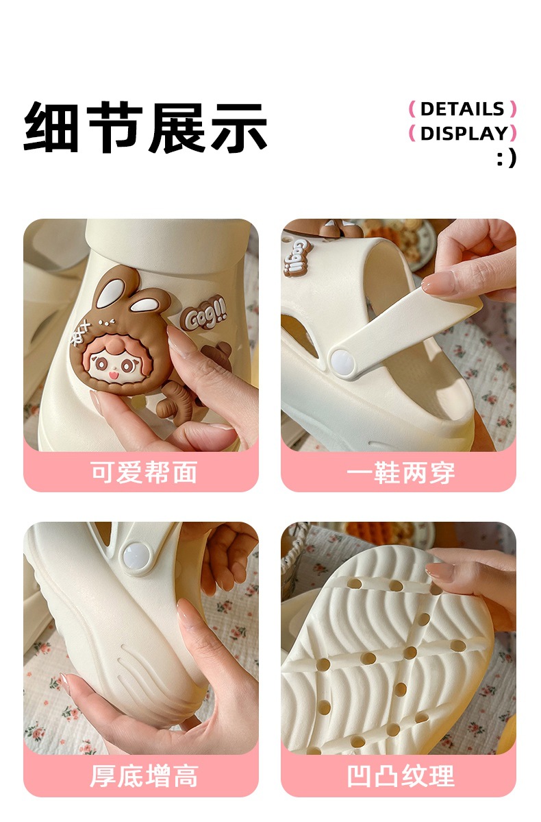 春夏新品卡通可爱幸运兔女款居家外穿厚底洞洞鞋舒适包头【WG25231】