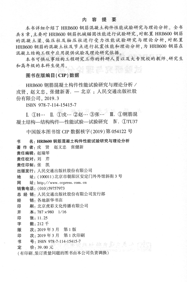 书名:HRB600钢筋混凝土构件性能试验研究与理论分析