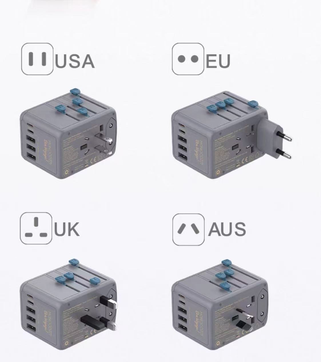 来自香港的品牌MONOCOZZI Bon Voyage 35W 旅行转接器——您的強大旅游伙伴!两个 USB-C 端口,三个USB 端口和一個通用插座,兼容超过 150 个国家,只需按压滑动即可轻松切换插头,让您跨越国界也能随時保持联接!