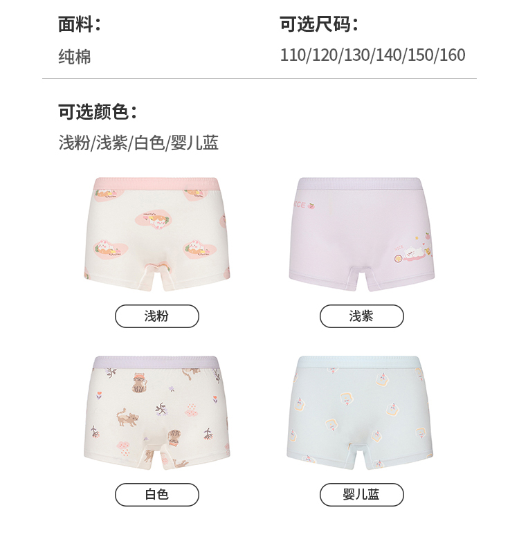 都市丽人平角女童内裤纯棉舒肤棉平角裤JKH501