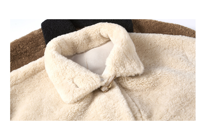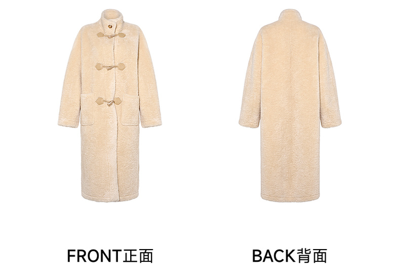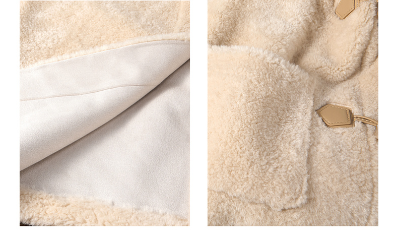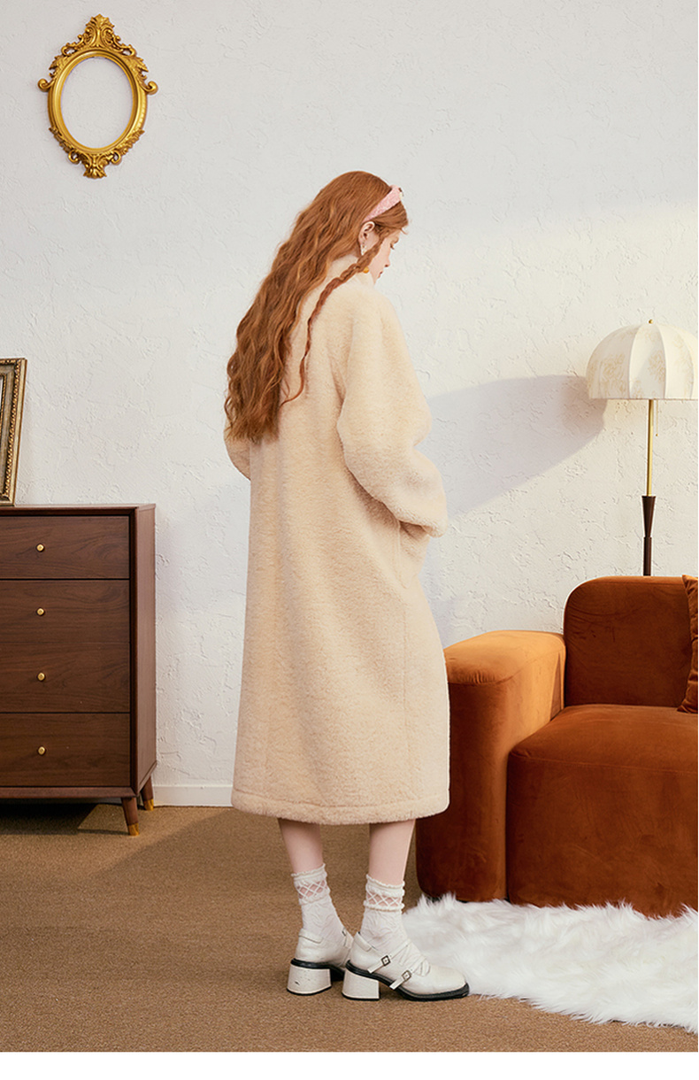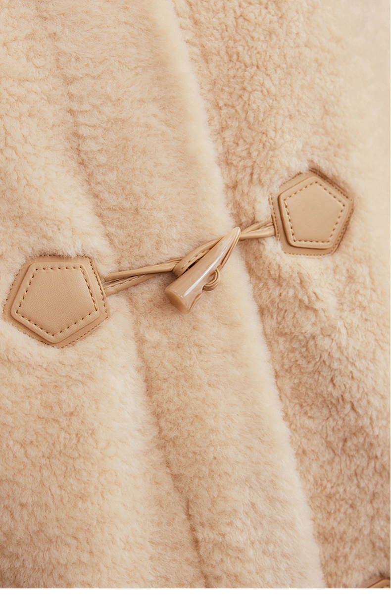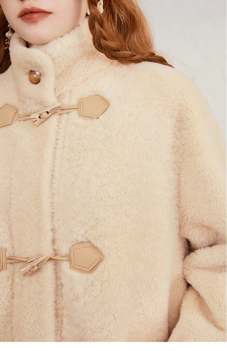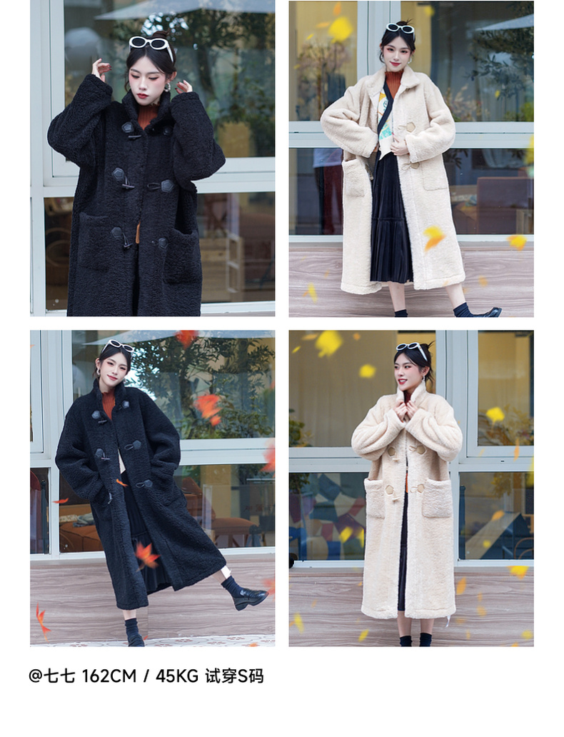 两三事 慕斯假日 2024冬季新款休闲牛角扣羊羔绒外套女中长款