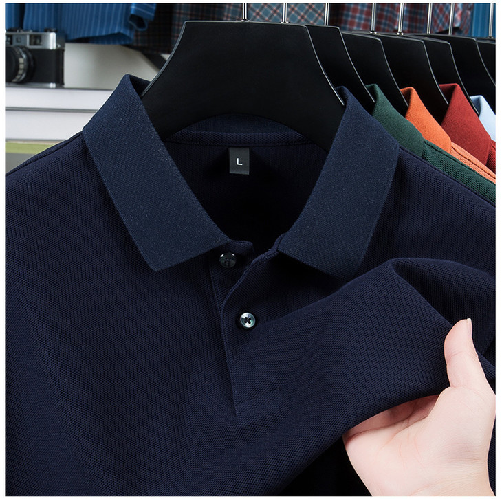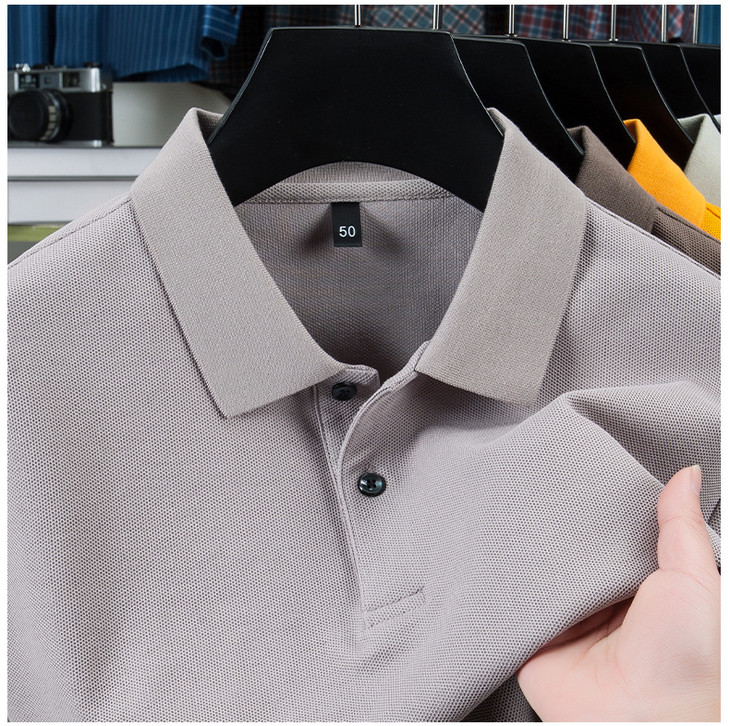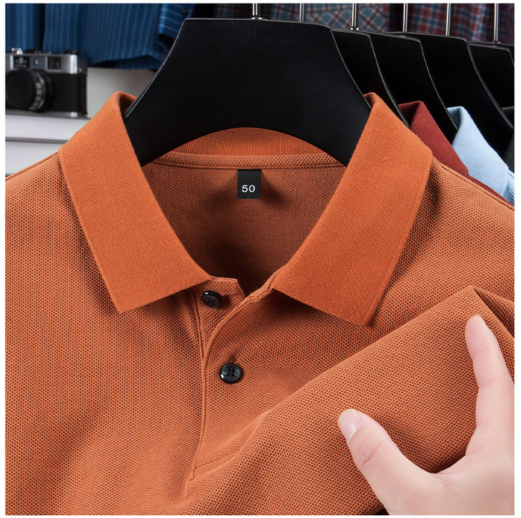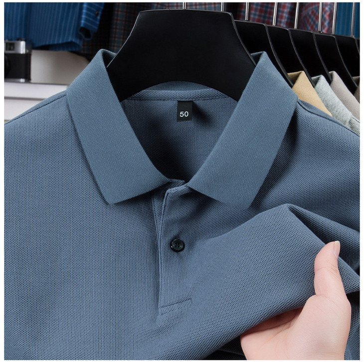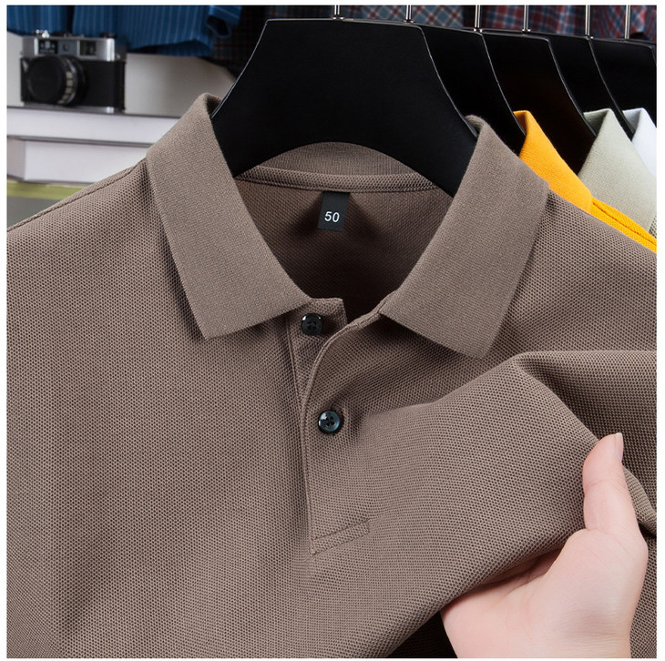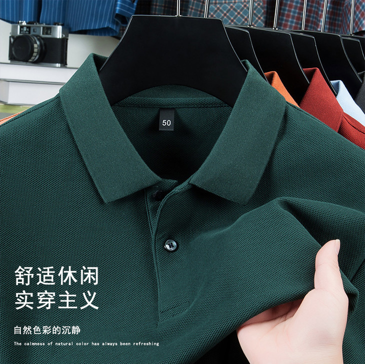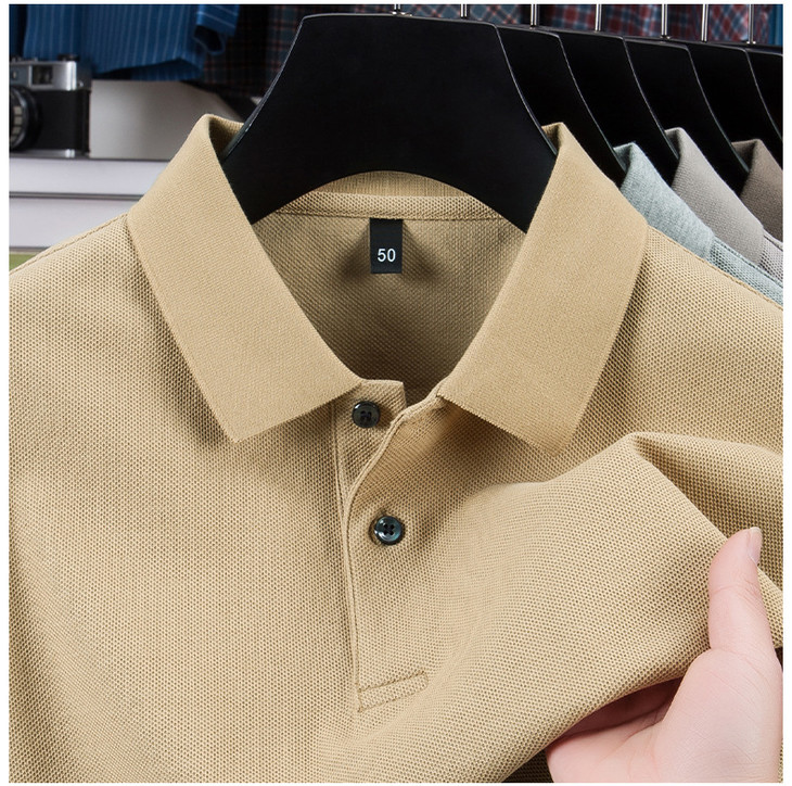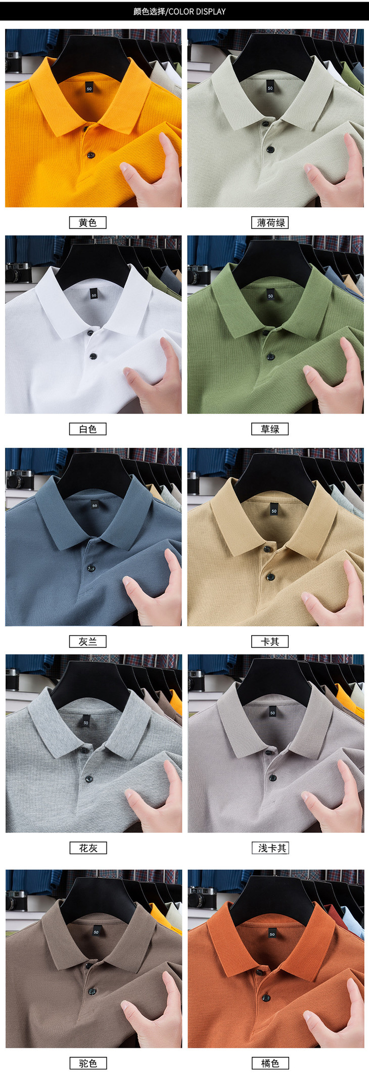 2025夏季新款纯棉T恤短袖男商务休闲翻领纯色丝光棉男士t恤批