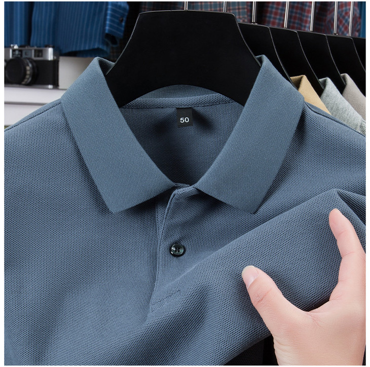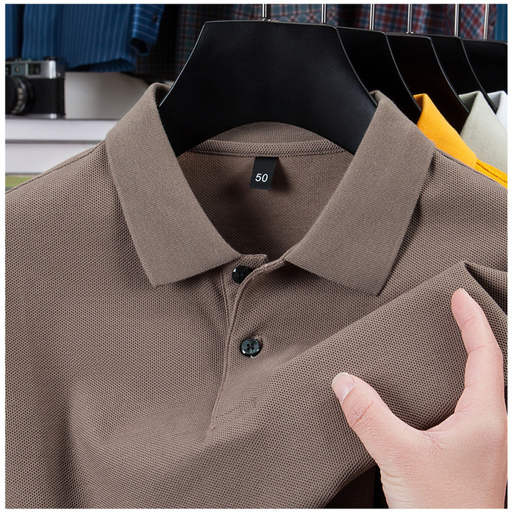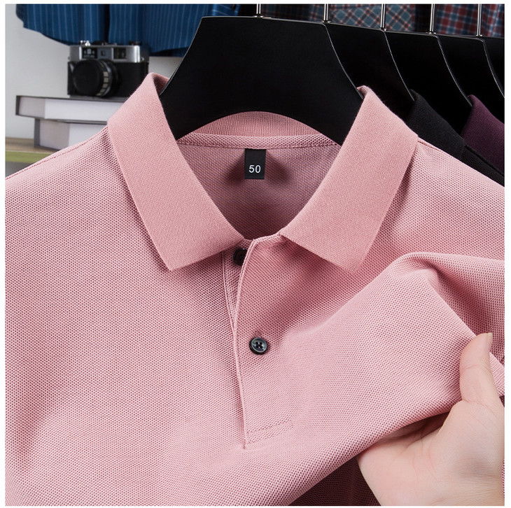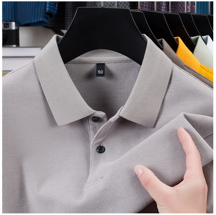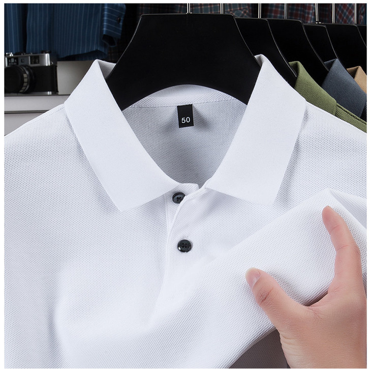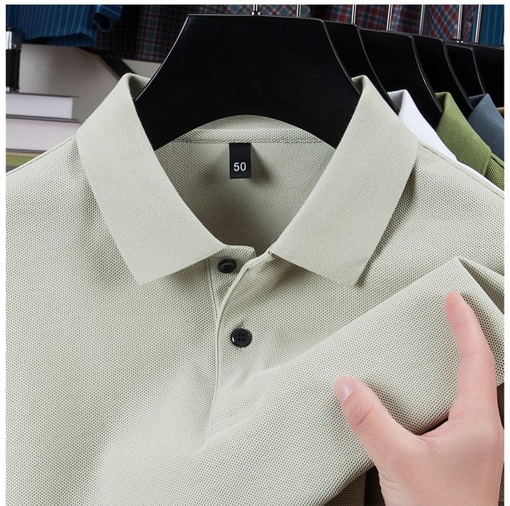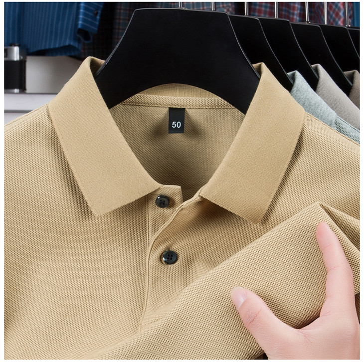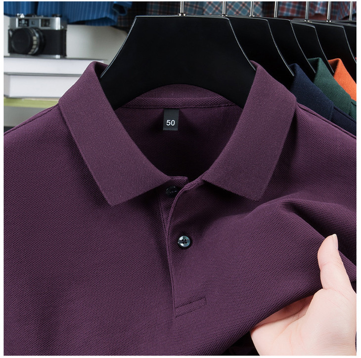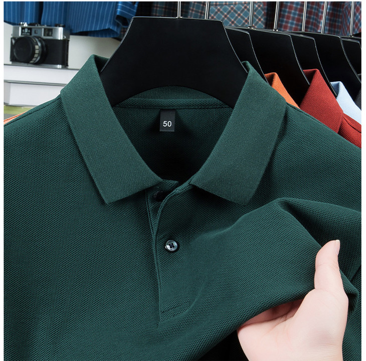 2025夏季新款纯棉T恤短袖男商务休闲翻领纯色丝光棉男士t恤批