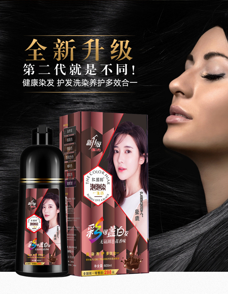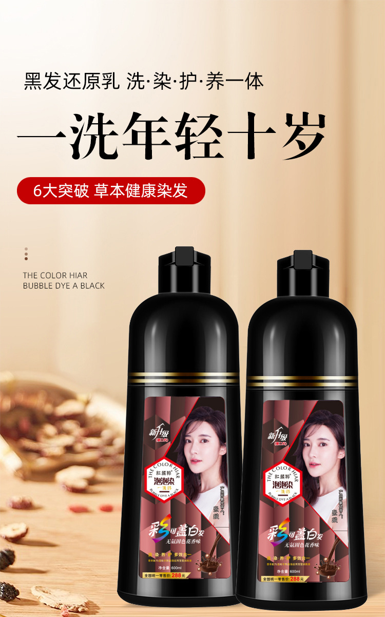 一支黑洗发露 洗发=染发 不沾头皮 草本提取人参芝麻一梳黑