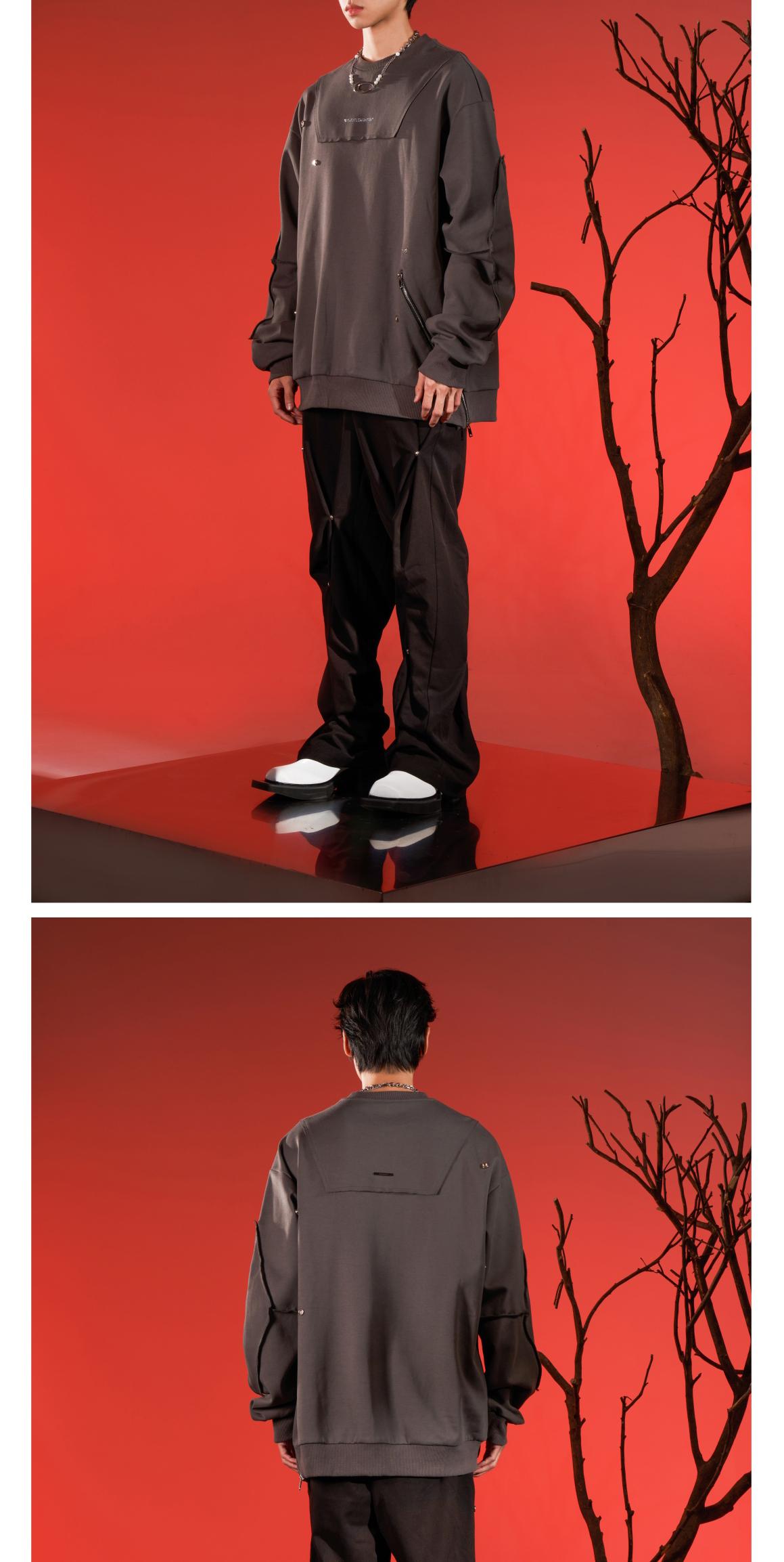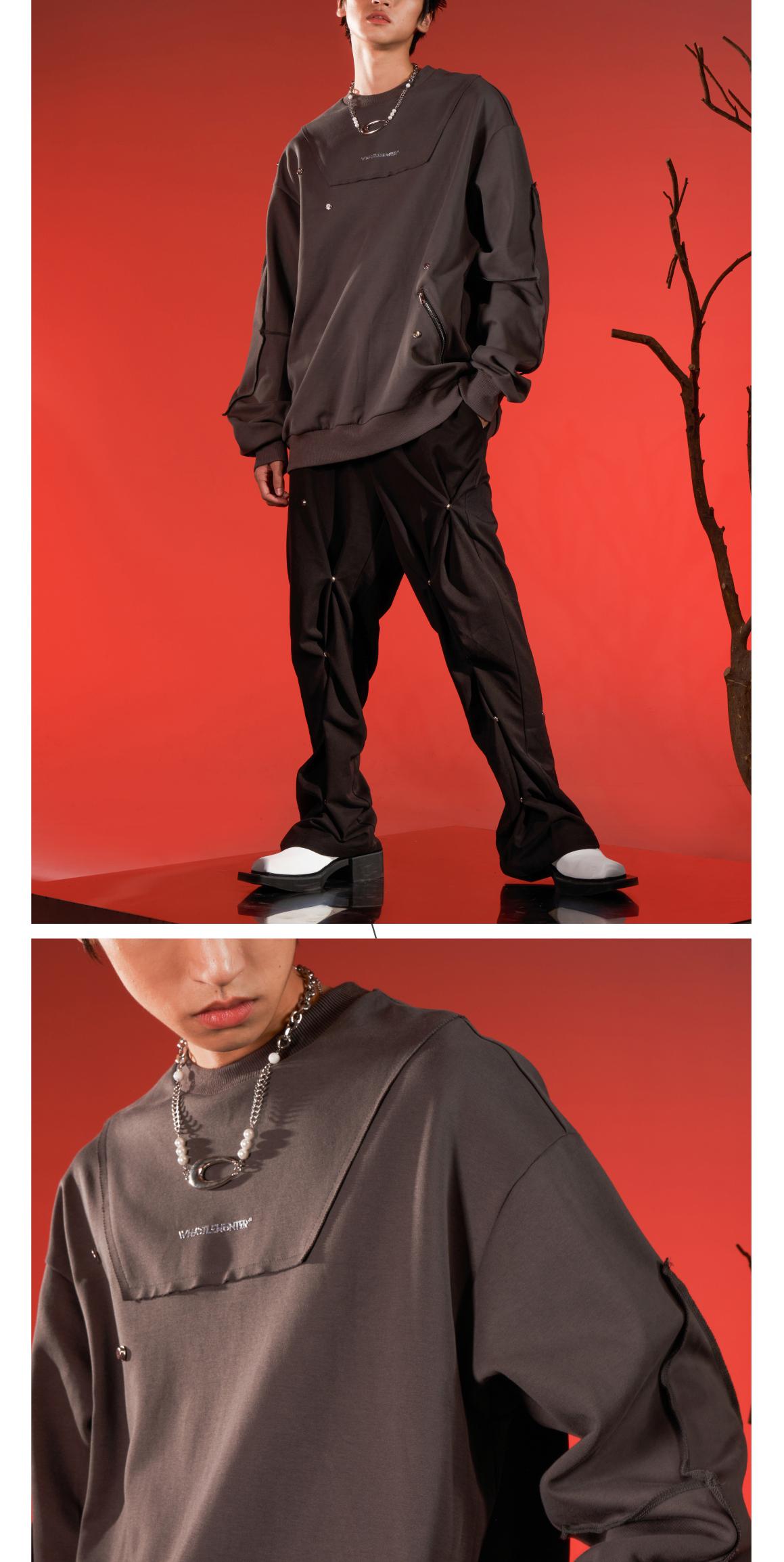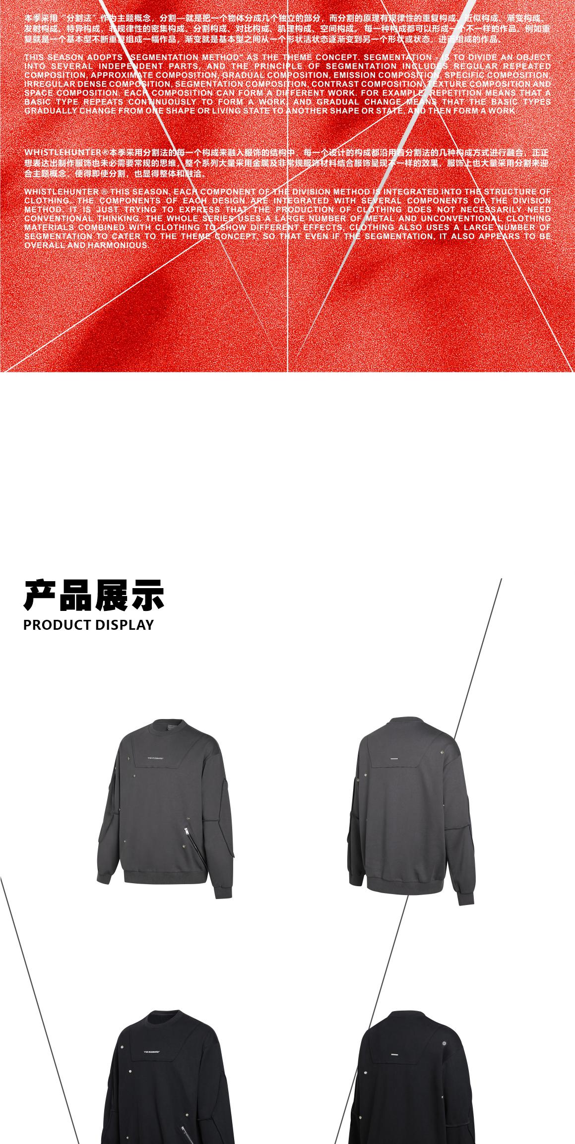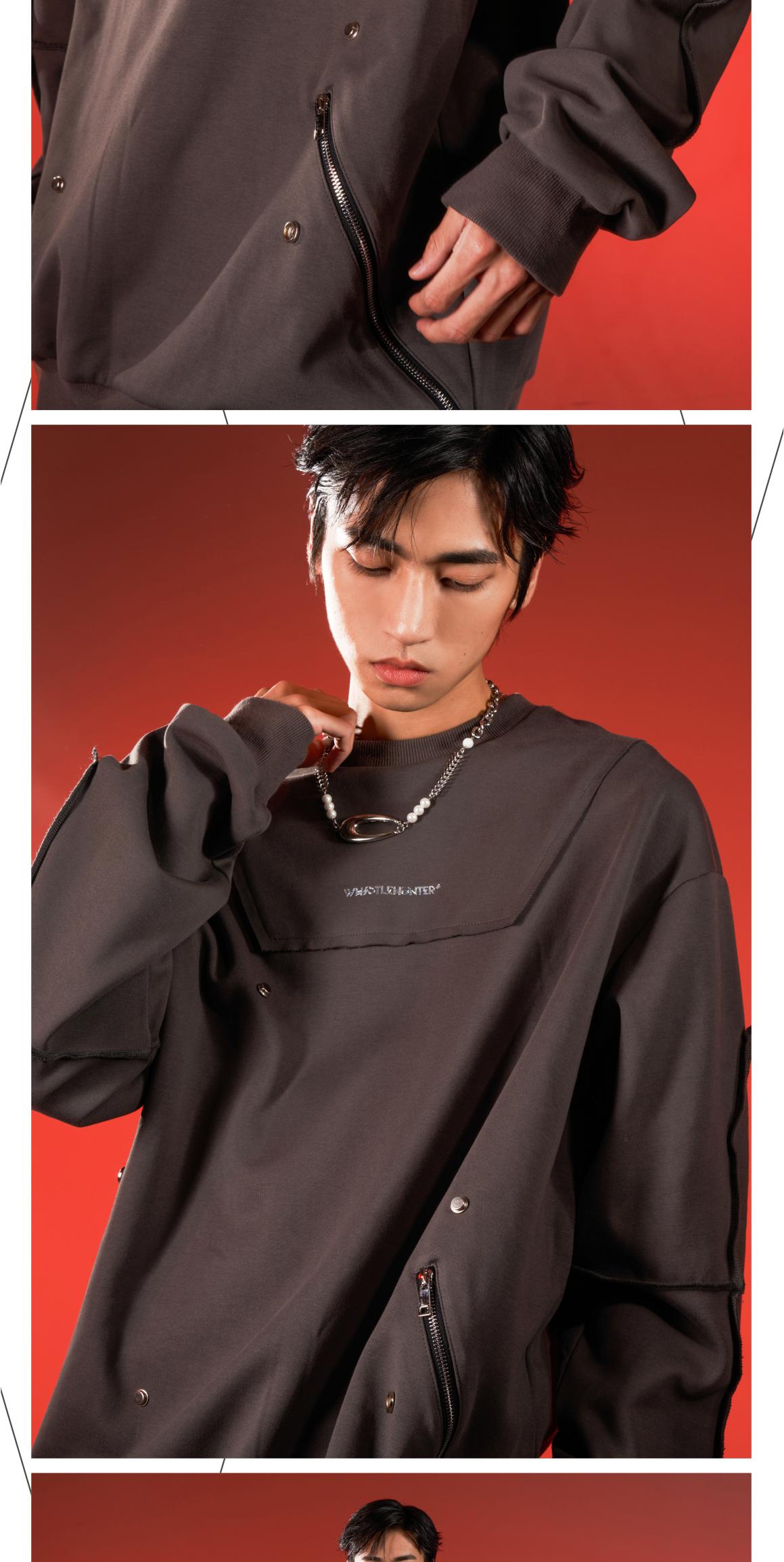 WHISTLEHUNTER(WSTHT)两色情侣压花卫衣 四合扣多玩趣味宽松卫衣