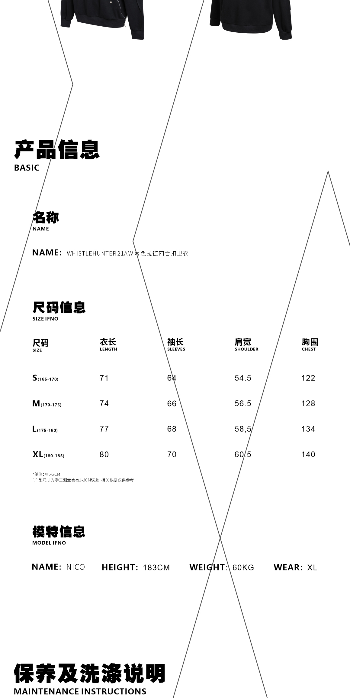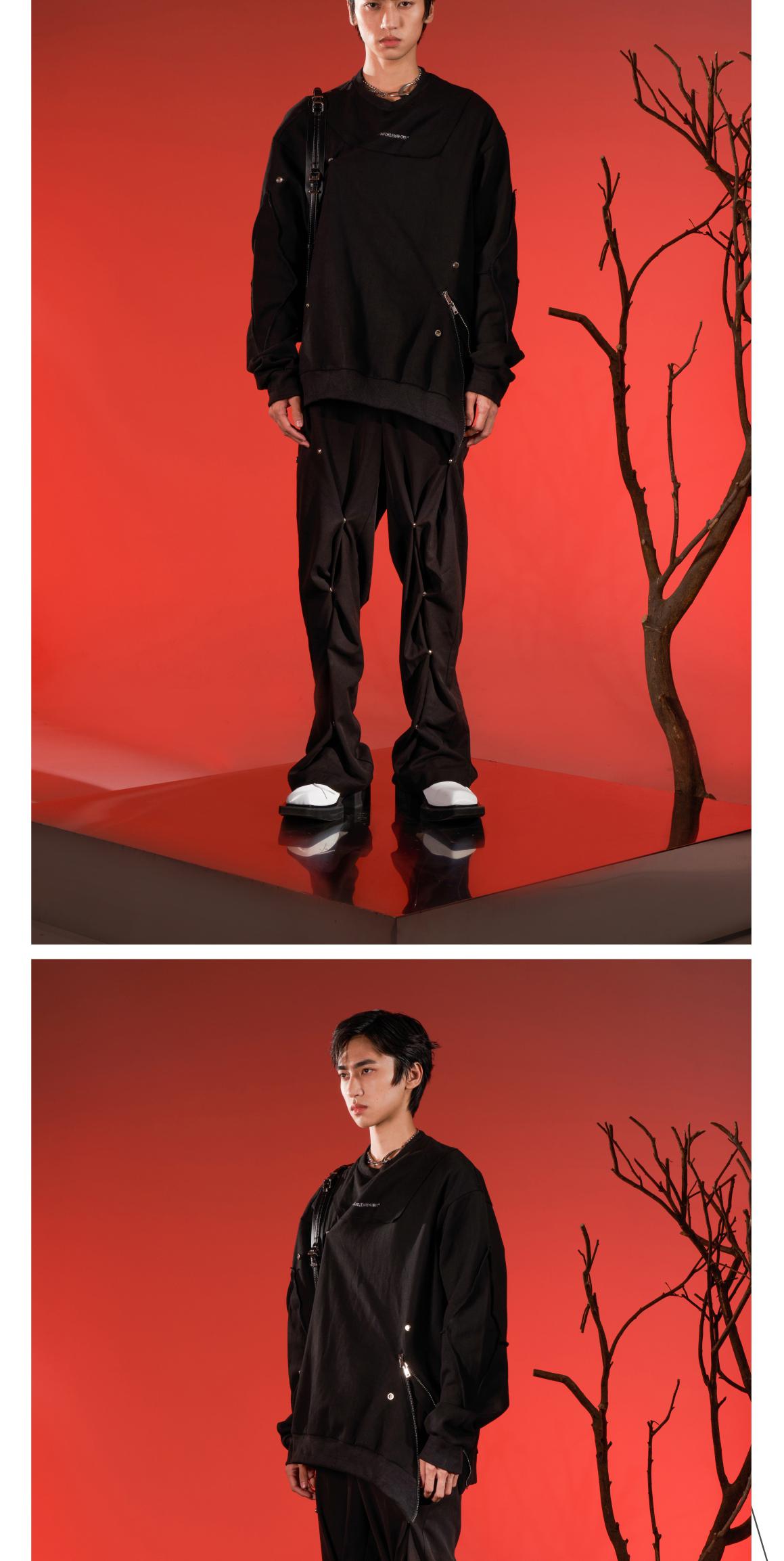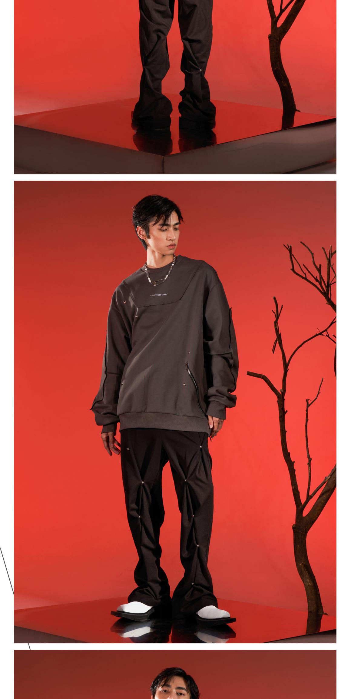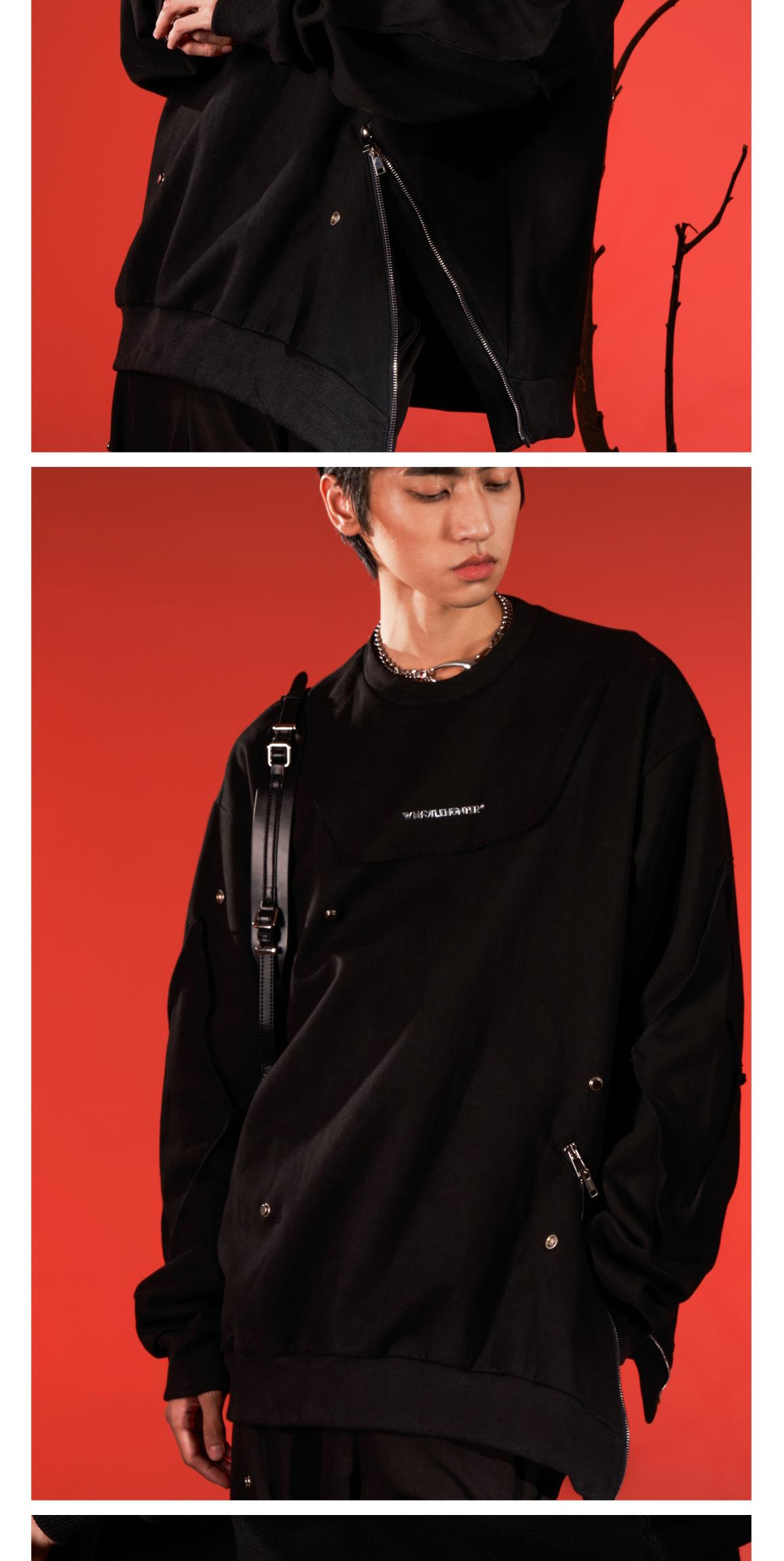 WHISTLEHUNTER(WSTHT)两色情侣压花卫衣 四合扣多玩趣味宽松卫衣