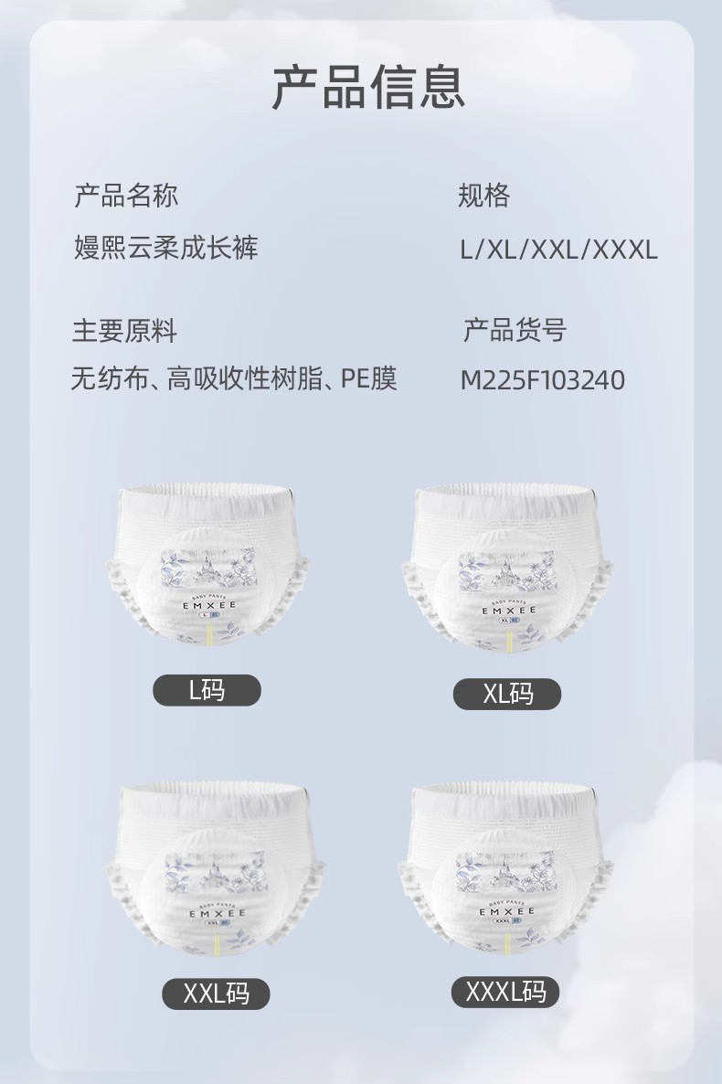 【任选2包/99.9元】EMXEE嫚熙新型云柔成长裤新生儿尿不湿超薄透气宝宝纸尿裤拉拉裤