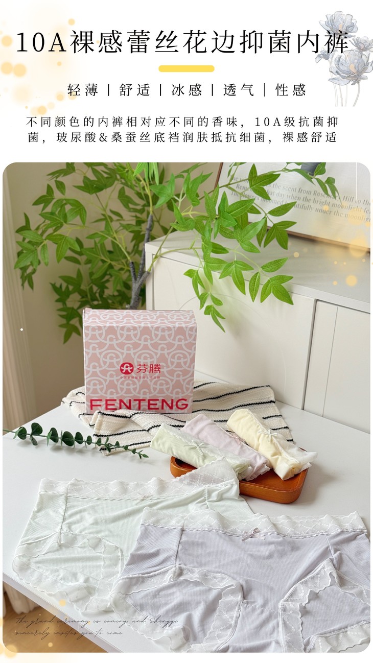【芬腾10A裸感蕾丝花边抑菌内裤】