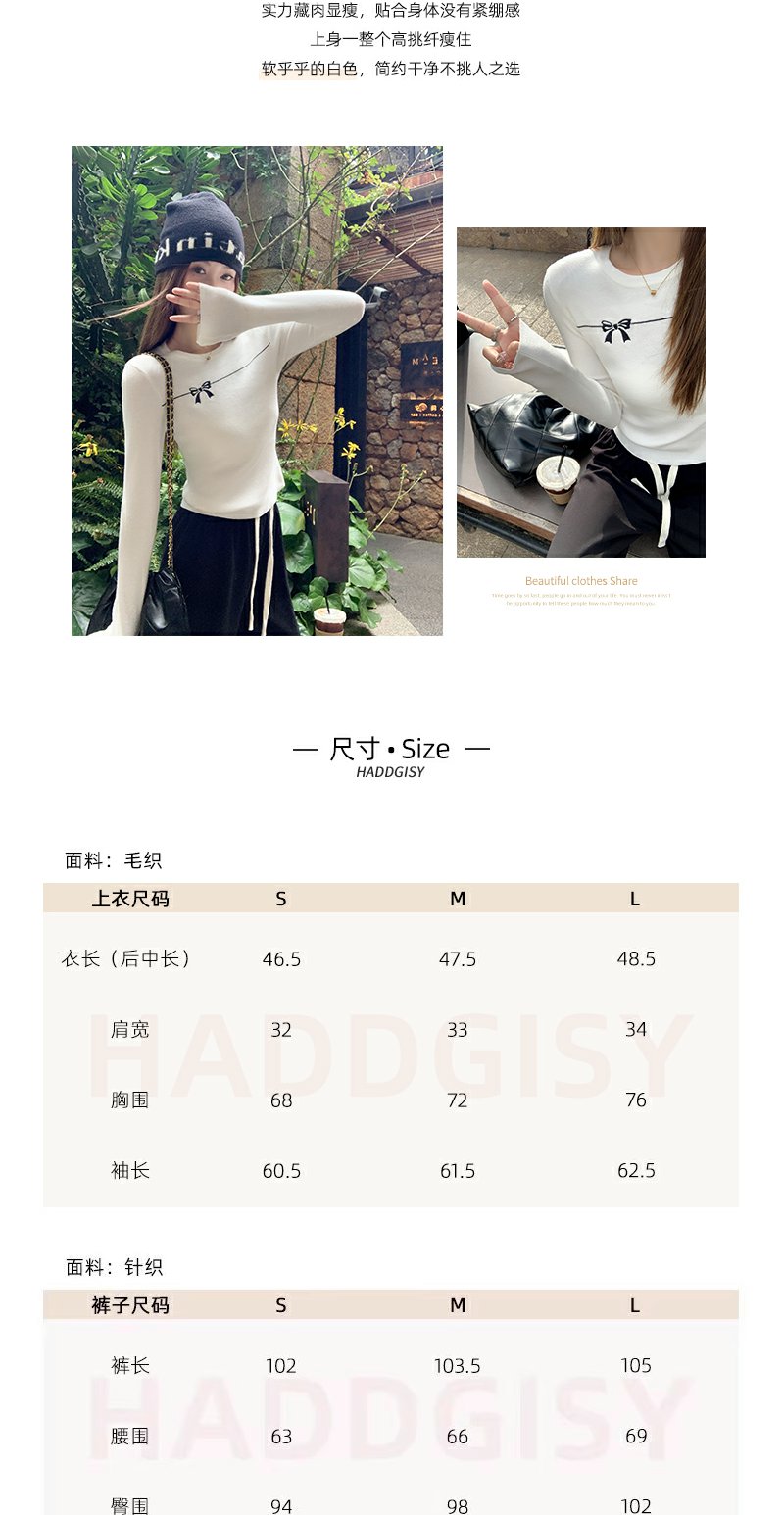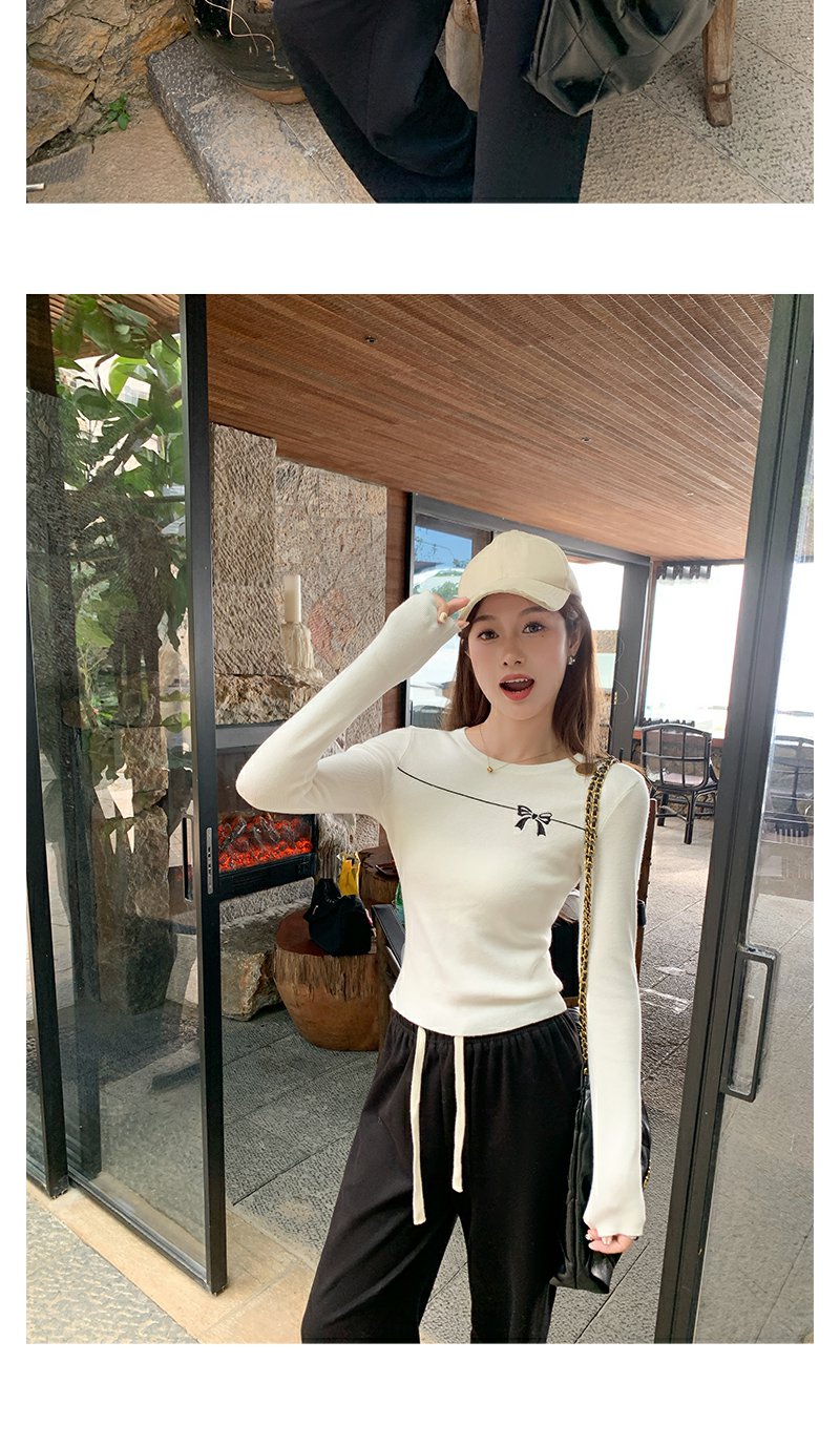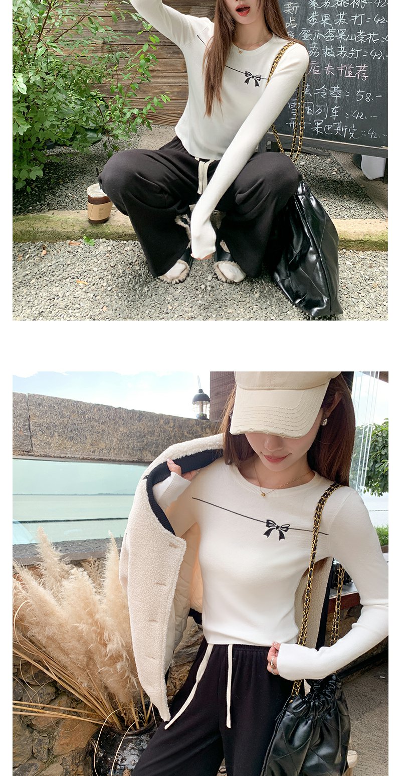<曾小咸推荐>蝴蝶结绣花白色圆领毛织衫