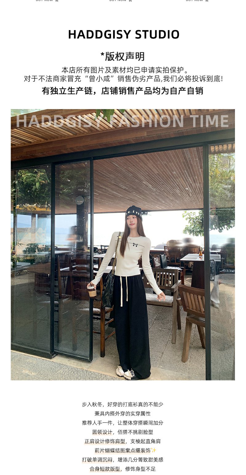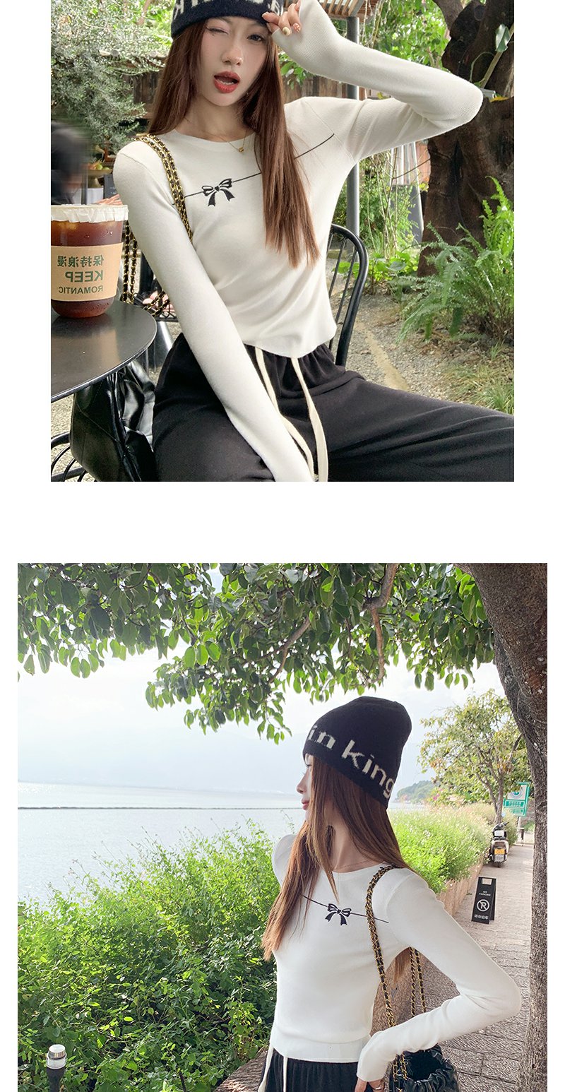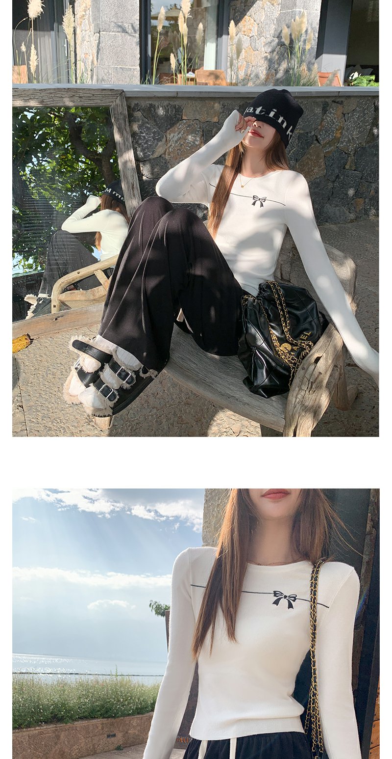 <曾小咸推荐>蝴蝶结绣花白色圆领毛织衫