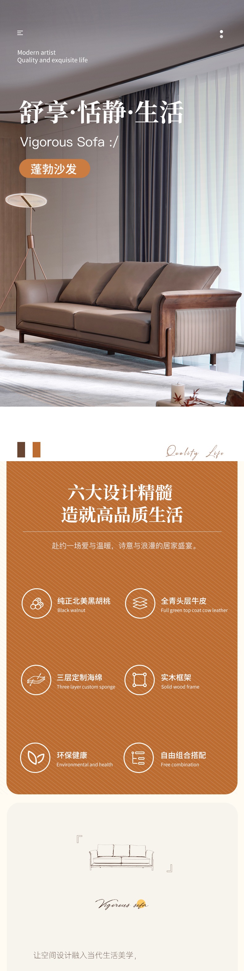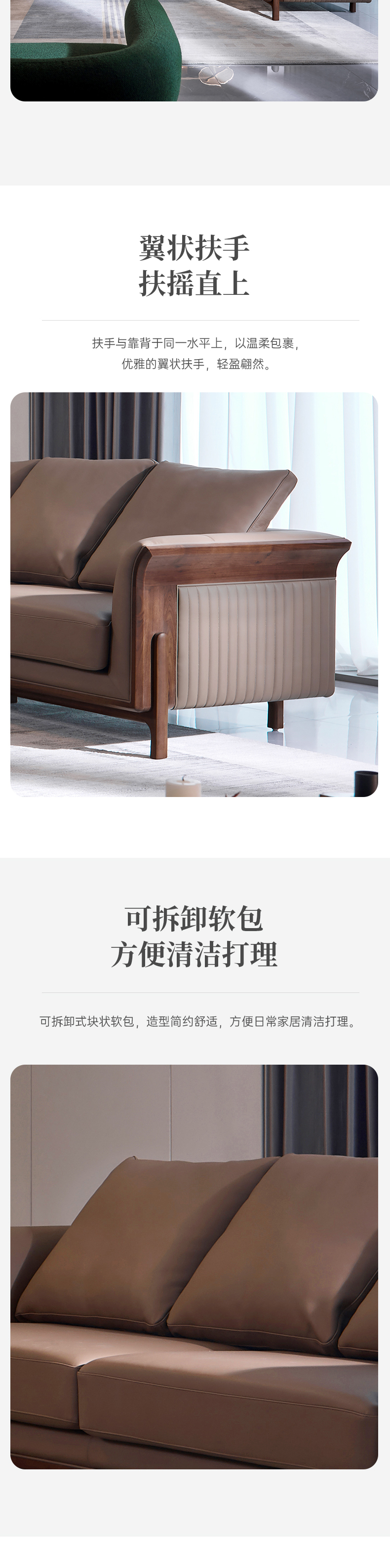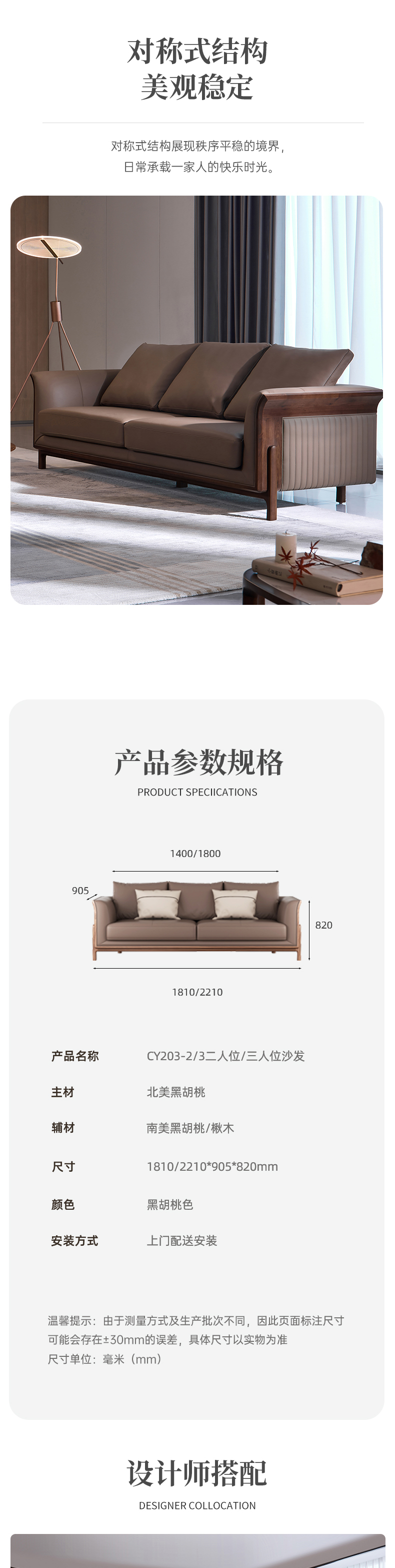 【现代风-CY203沙发】现代风/客厅北美黑胡桃/实木&真皮 2+3沙发