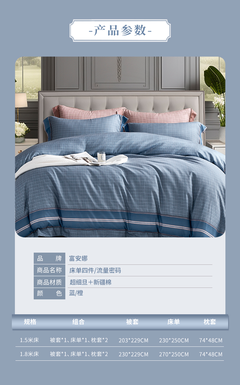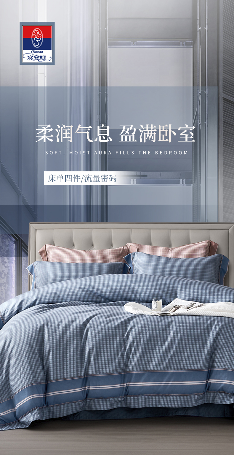 【自提】富安娜床单四件套流量密码蓝【A31】