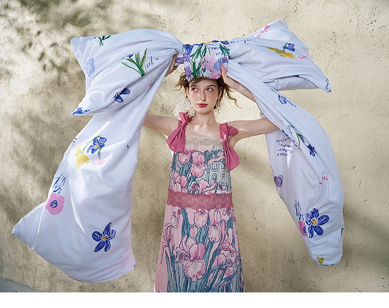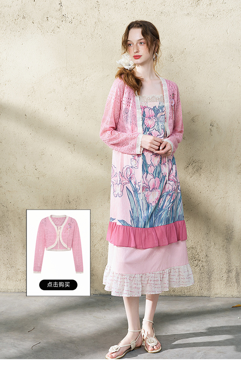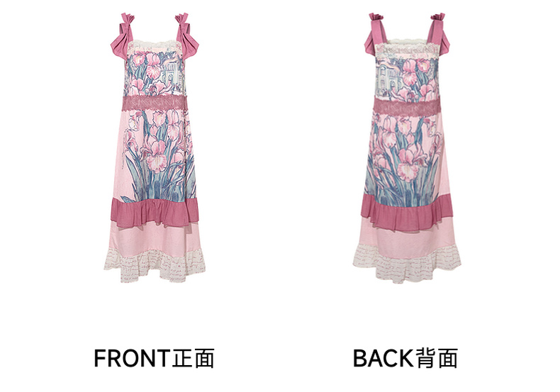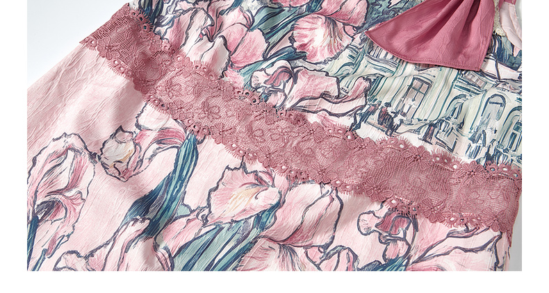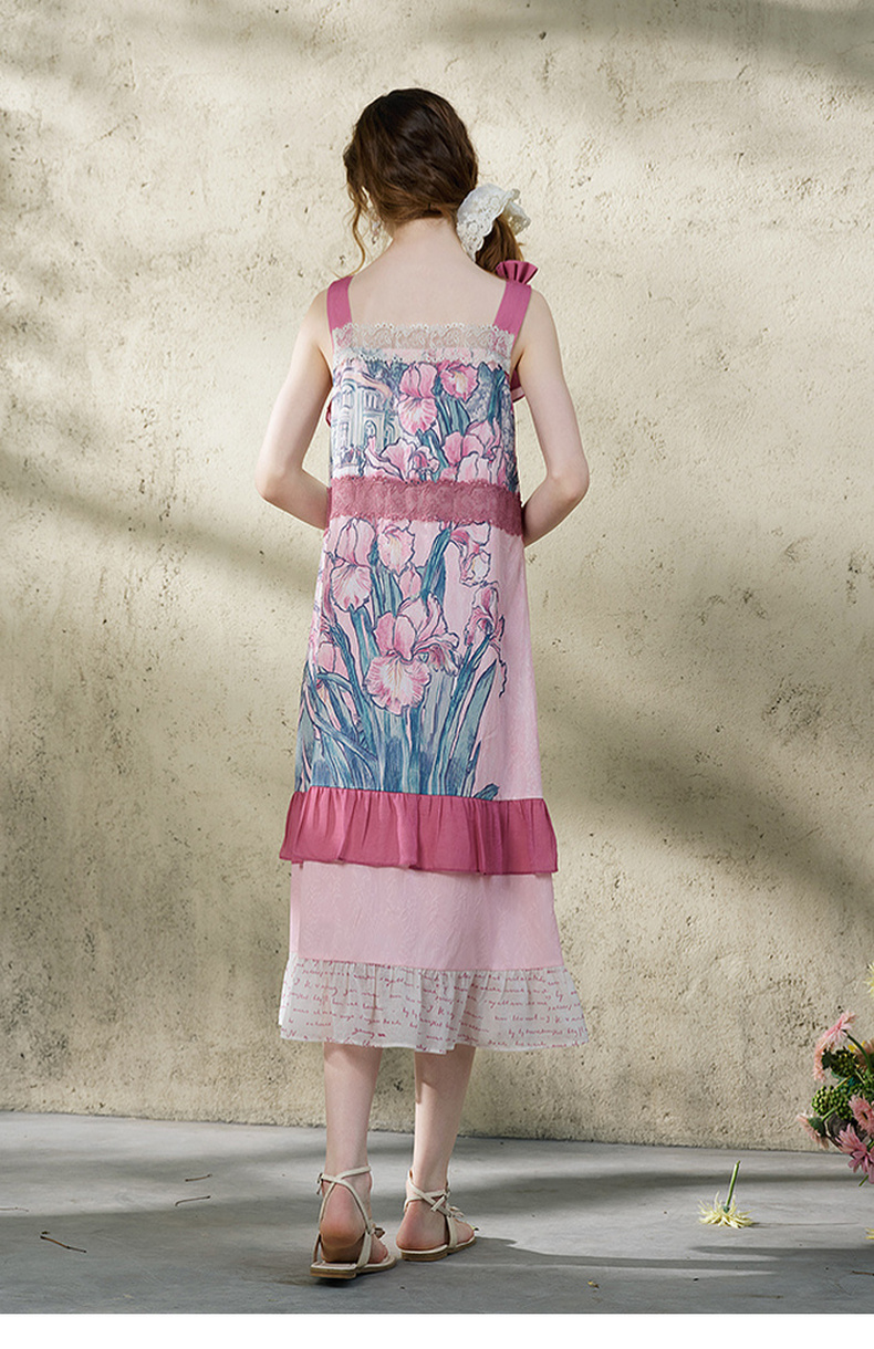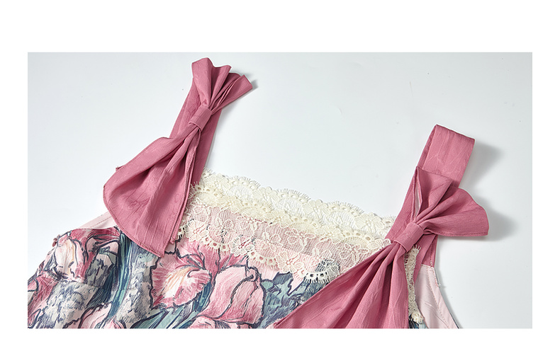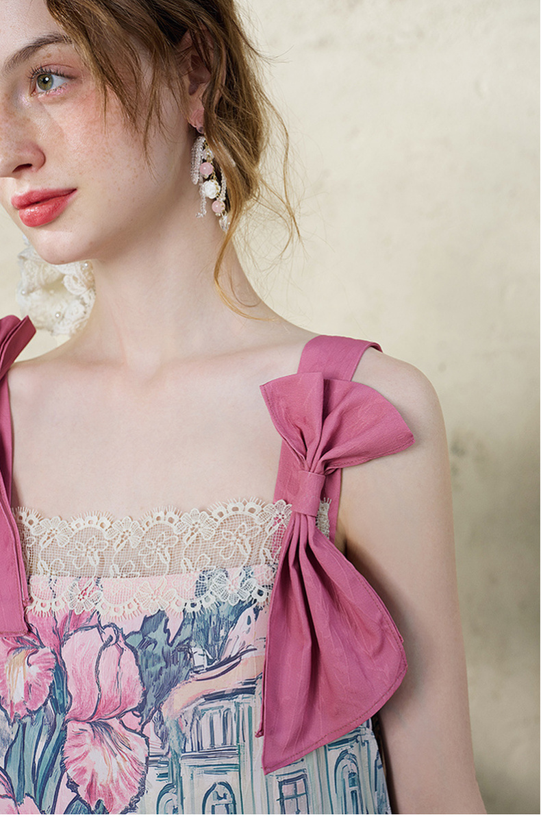 两三事 蝶舞霓裳 2025夏季新款复古蕾丝拼接立体蝴蝶结印花连衣裙