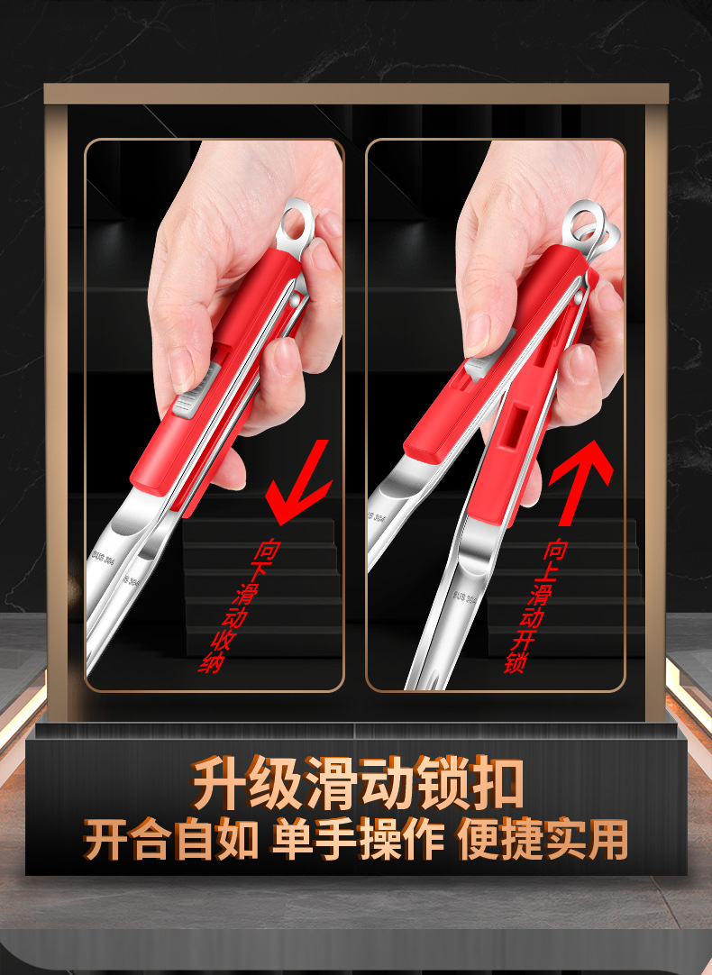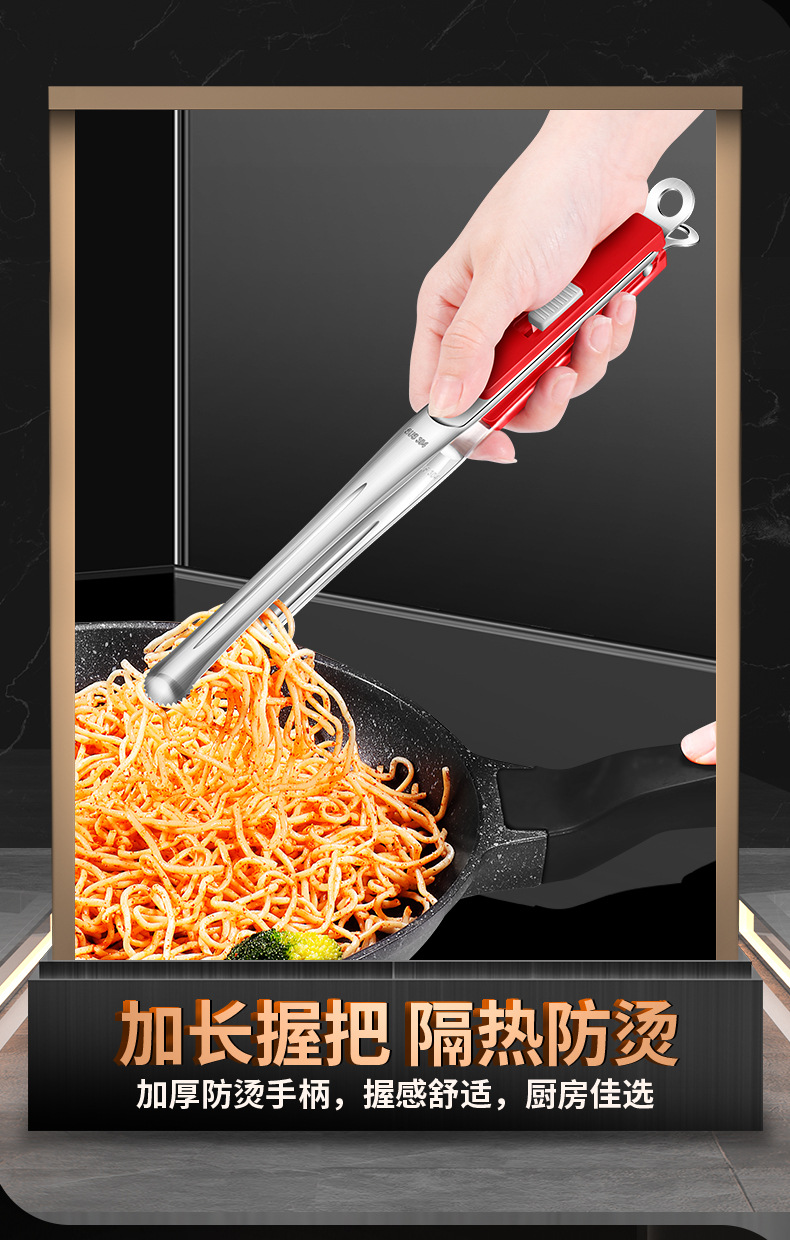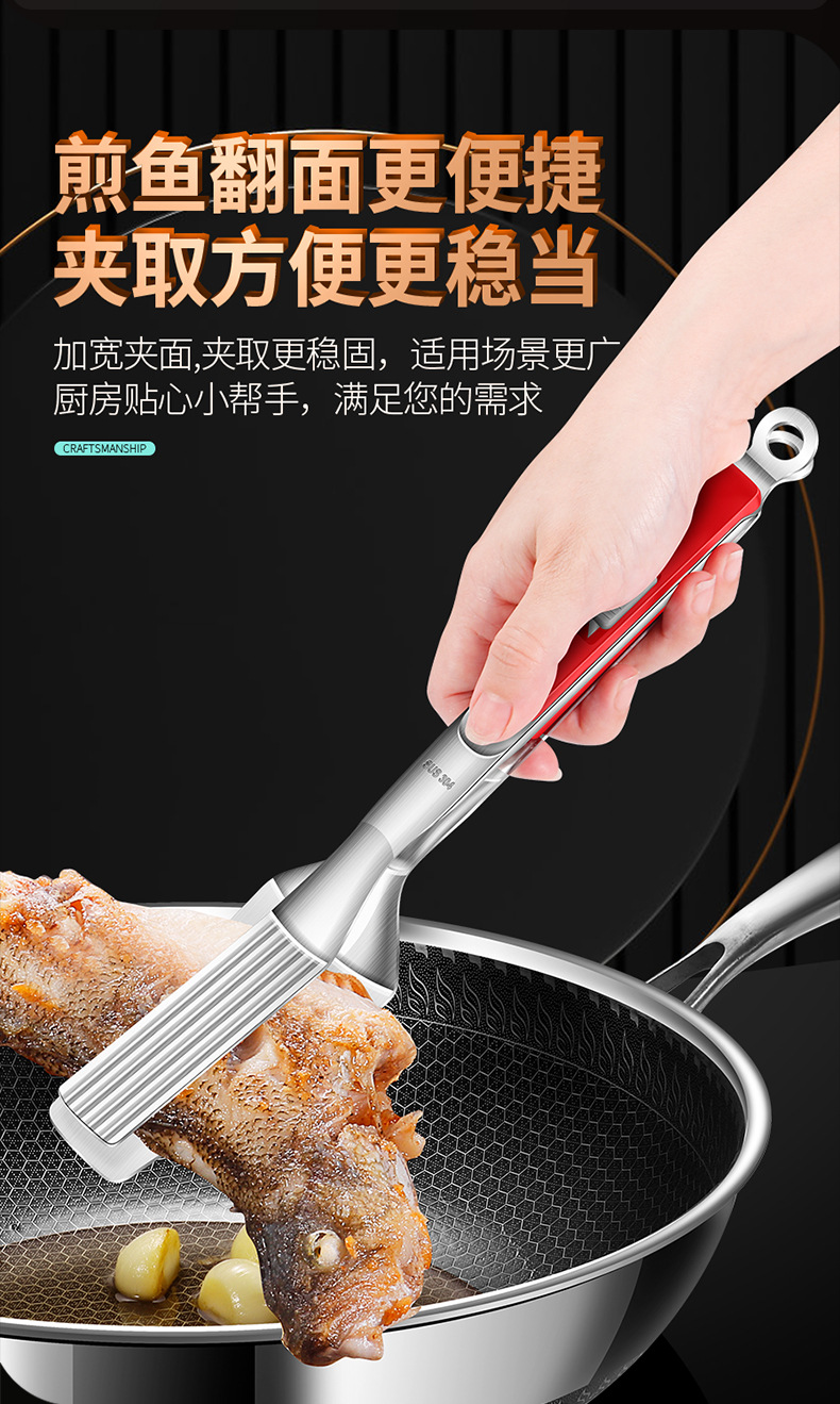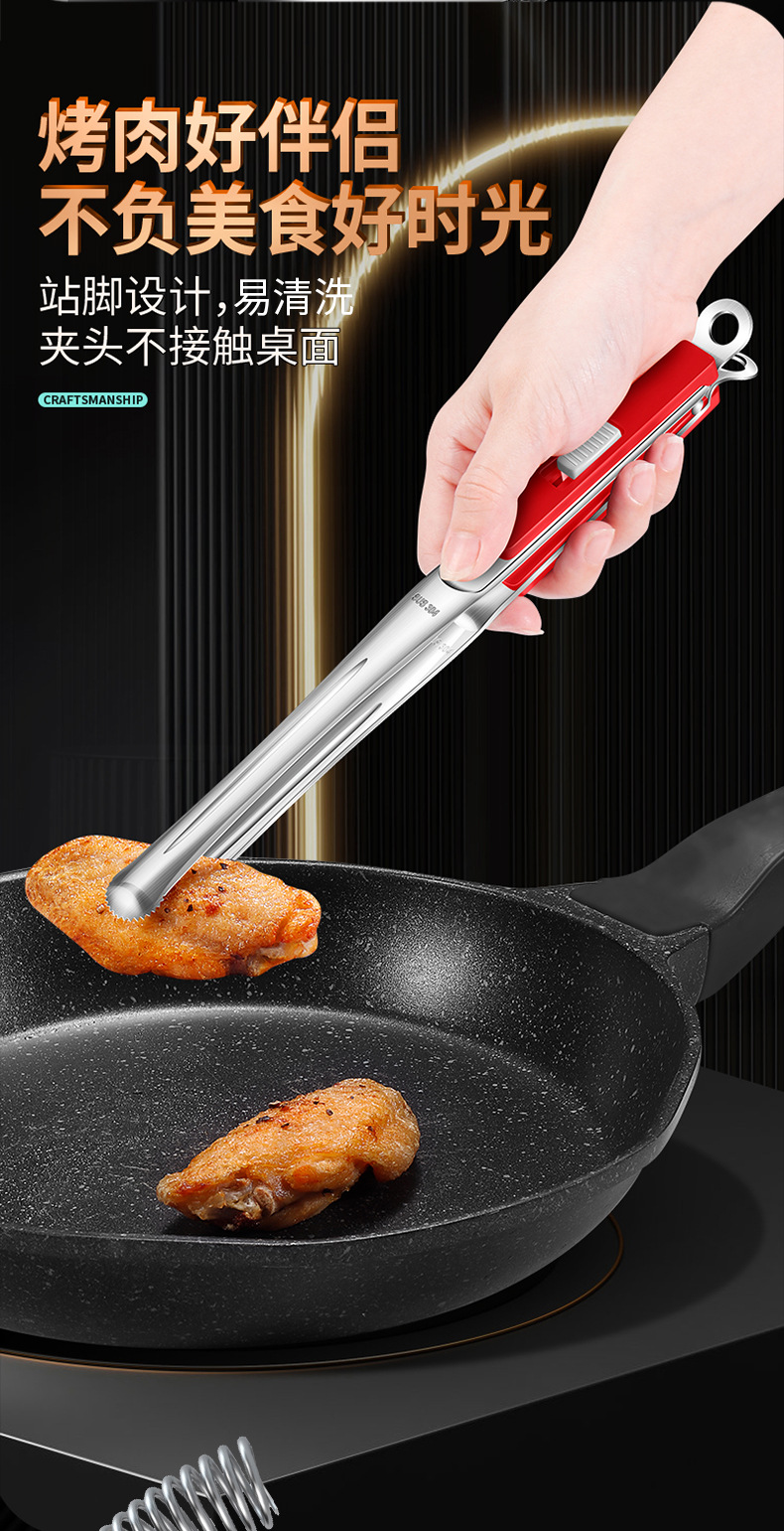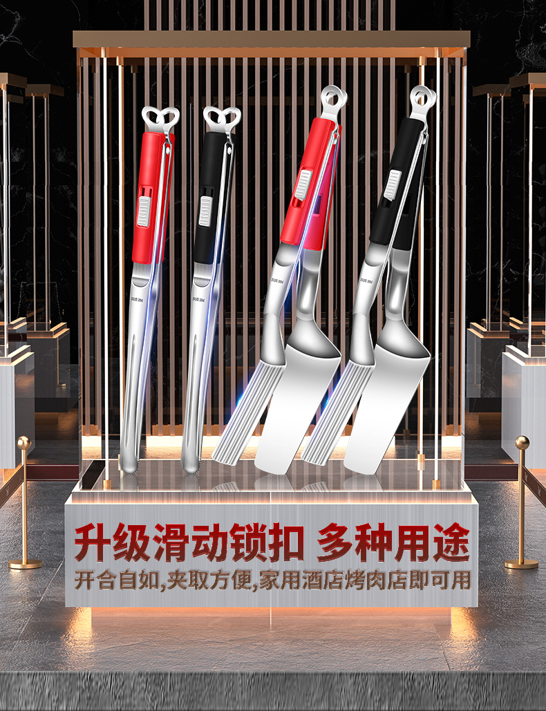 【跨境出口烤肉夹】加厚304不锈钢烤肉夹多用途食品夹加长隔热烧烤夹家用宽头牛排夹