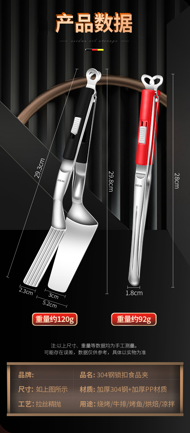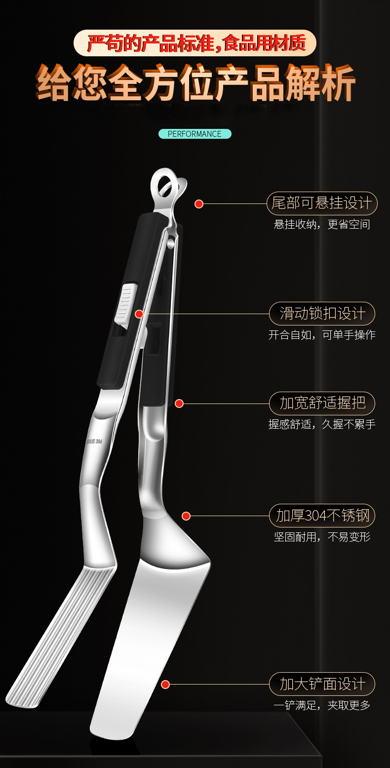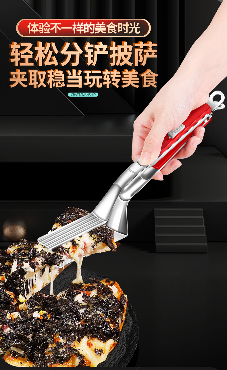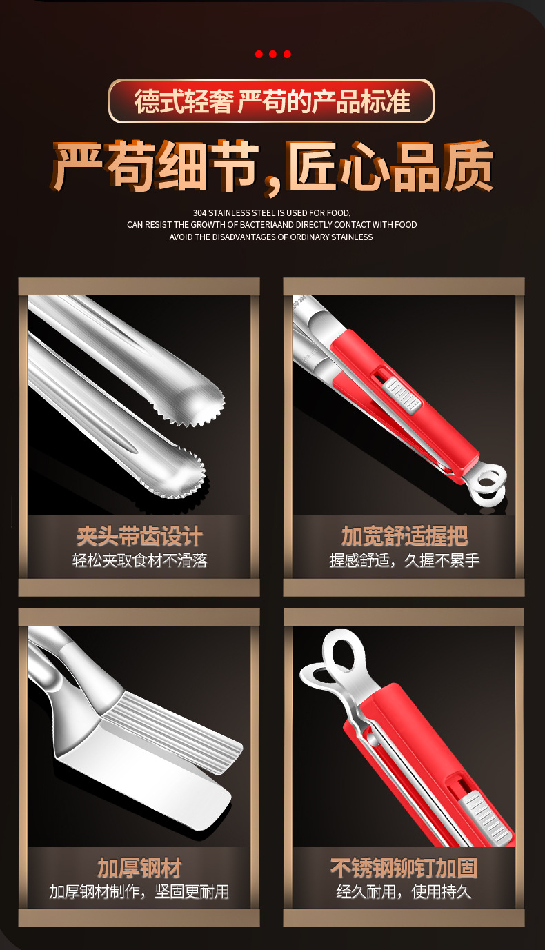 【跨境出口烤肉夹】加厚304不锈钢烤肉夹多用途食品夹加长隔热烧烤夹家用宽头牛排夹