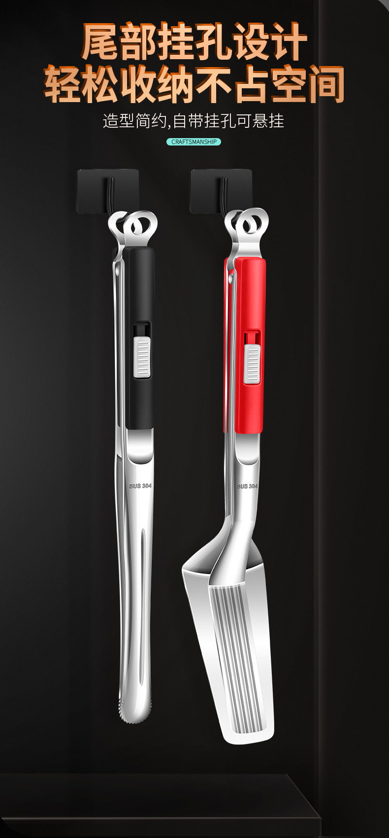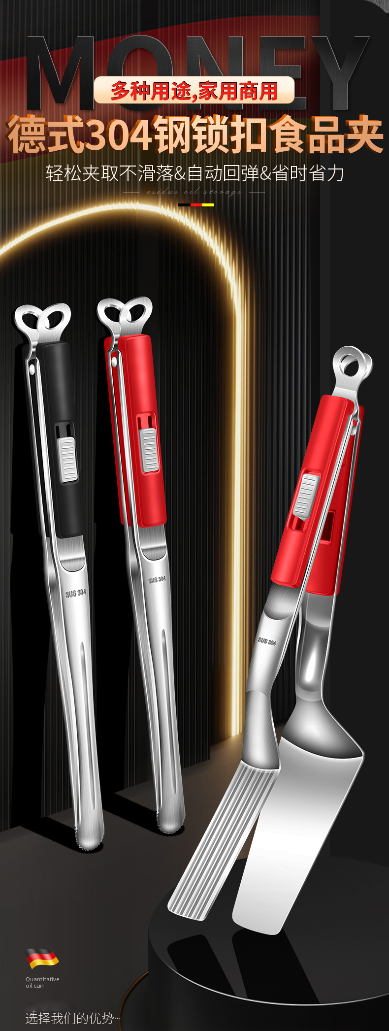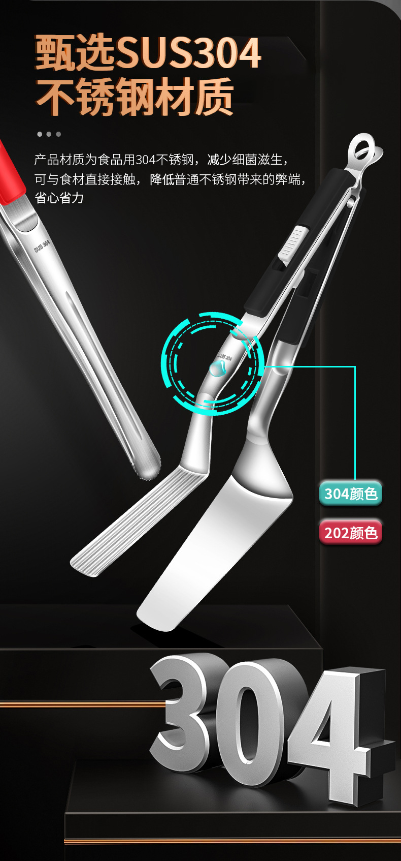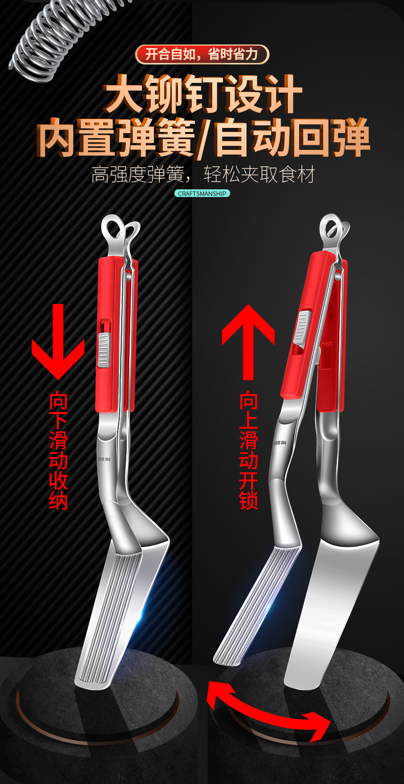 【跨境出口烤肉夹】加厚304不锈钢烤肉夹多用途食品夹加长隔热烧烤夹家用宽头牛排夹